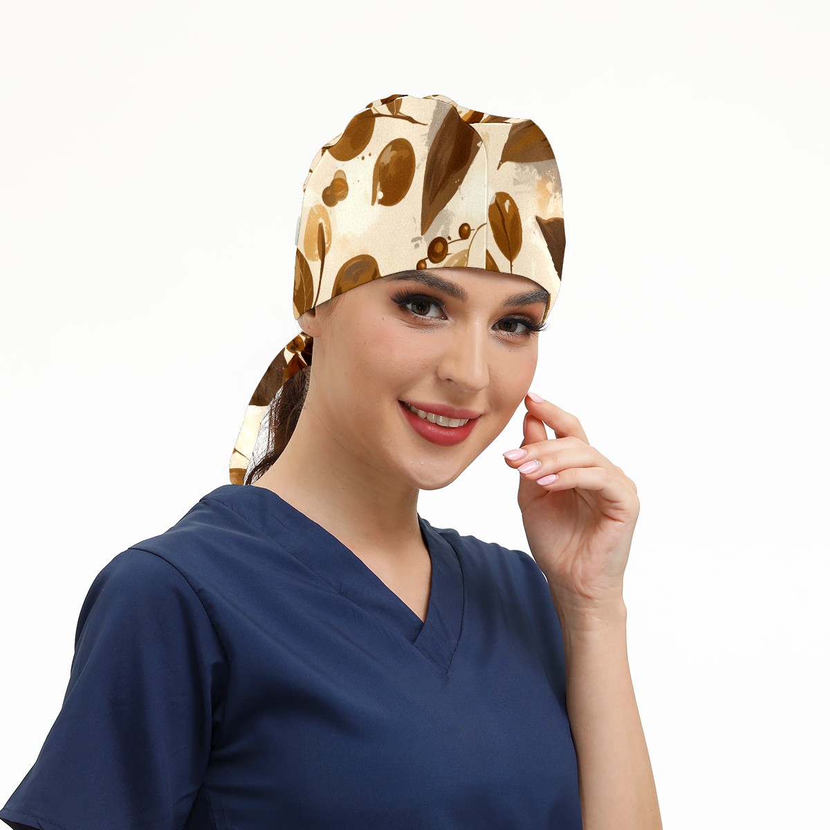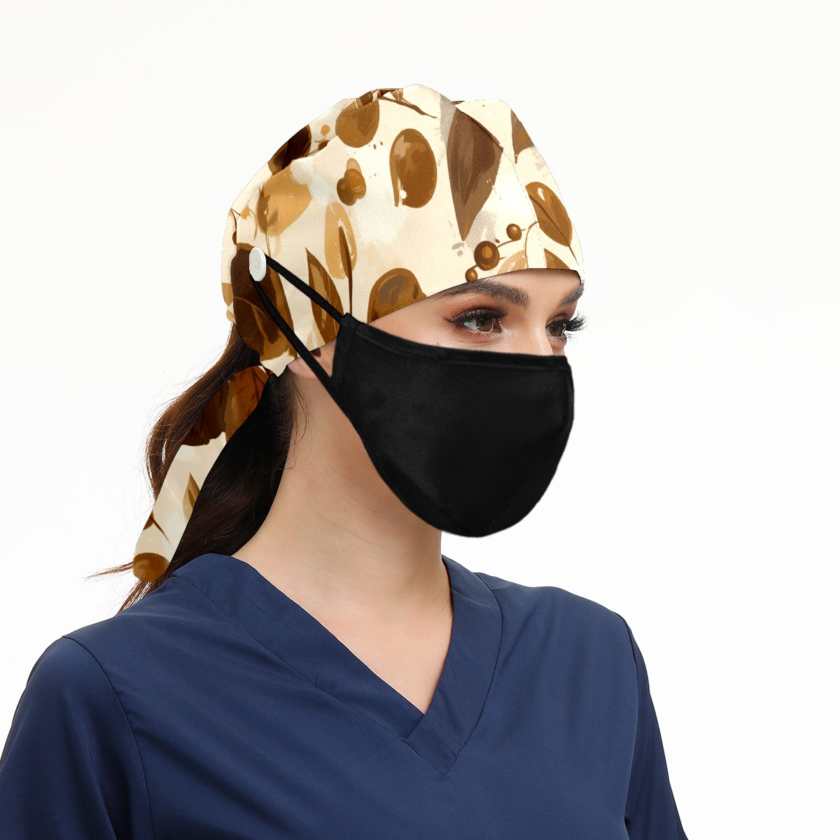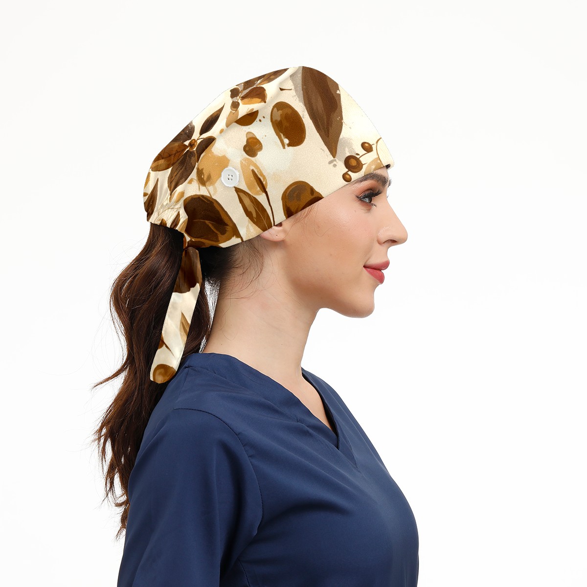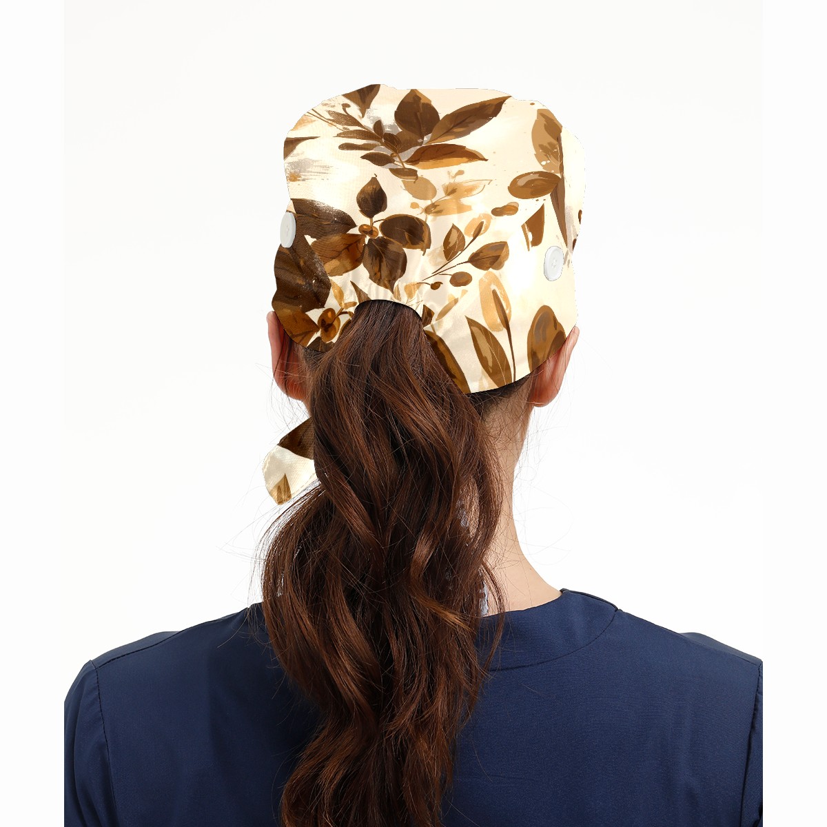 Working Caps with Button & Sweatband Satin Lined Cotton Adjustable Nurse Hats Elastic Band Scrub Cap Surgeon Hat Leave