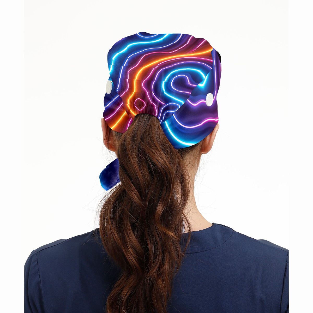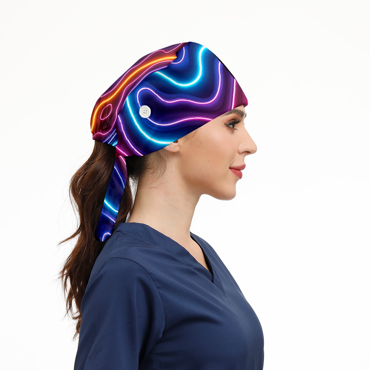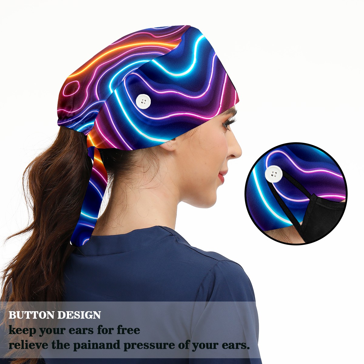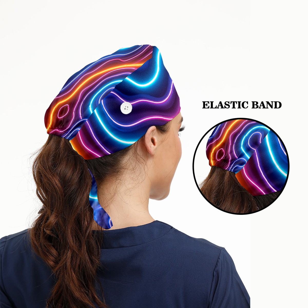 Working Caps with Button & Sweatband Satin Lined Cotton Adjustable Nurse Hats Elastic Band Scrub Cap Surgeon Hat Colourful Neon Linear