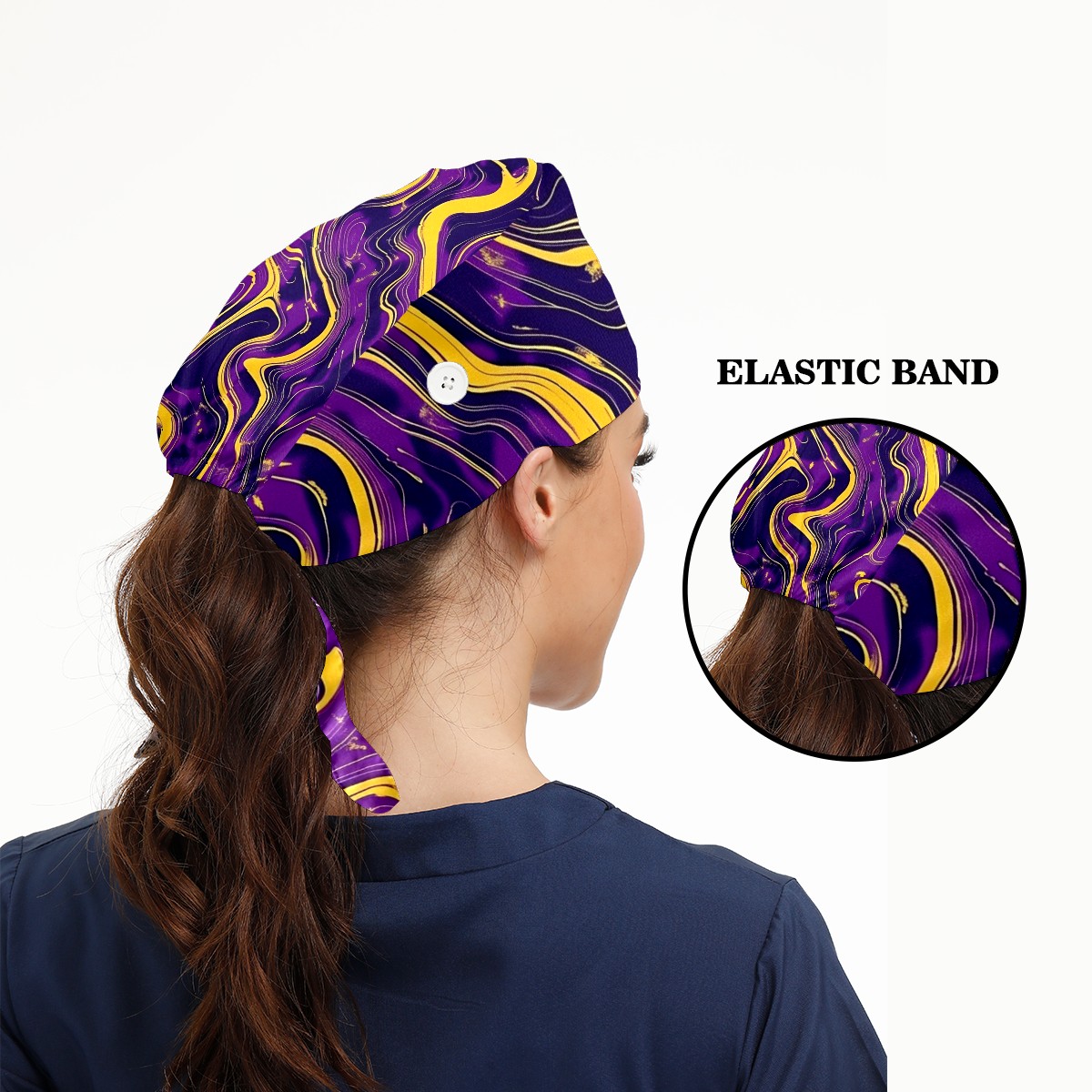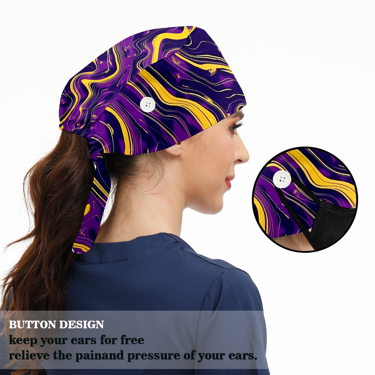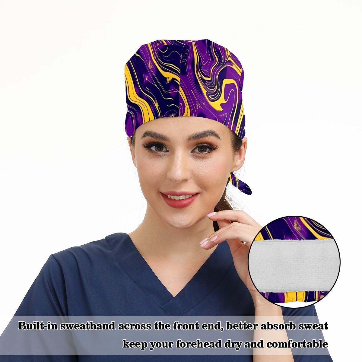 Working Caps with Button & Sweatband Satin Lined Cotton Adjustable Nurse Hats Elastic Band Scrub Cap Surgeon Hat Abstract