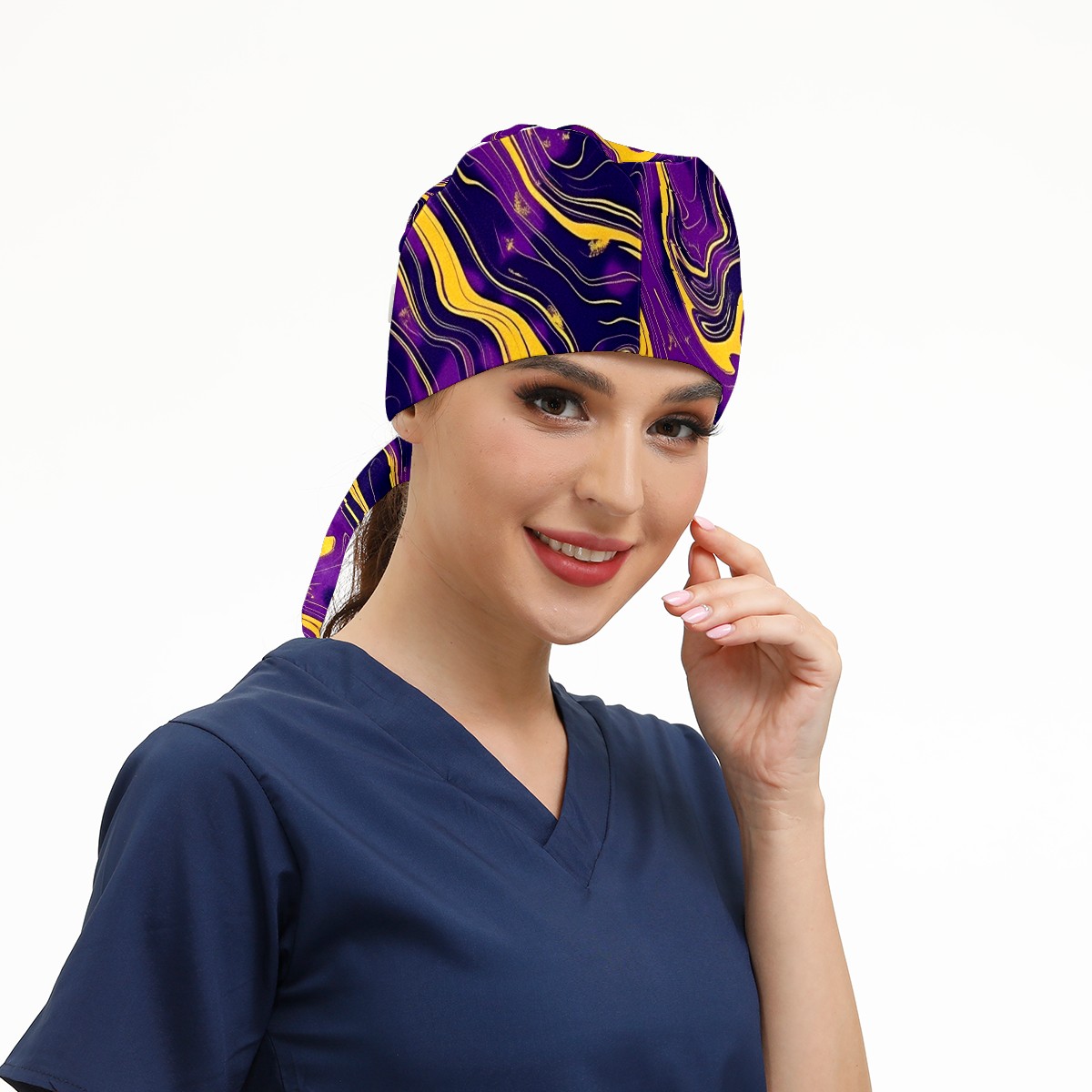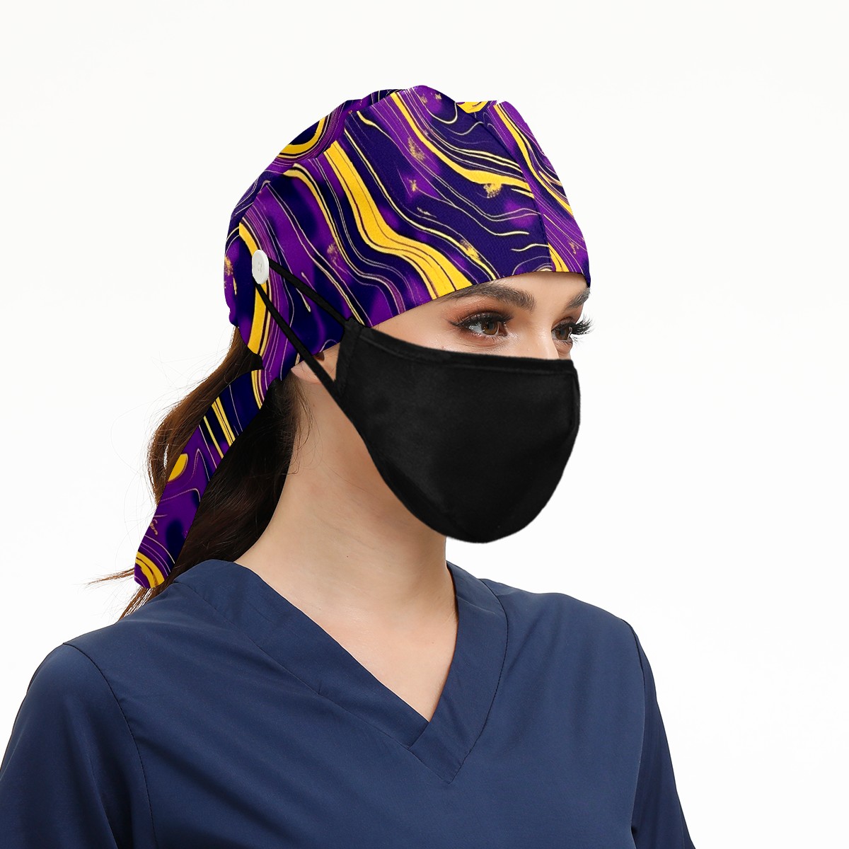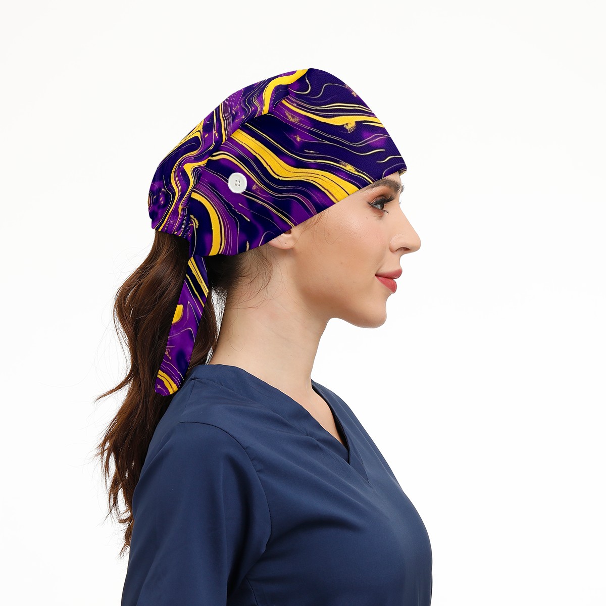 Working Caps with Button & Sweatband Satin Lined Cotton Adjustable Nurse Hats Elastic Band Scrub Cap Surgeon Hat Abstract