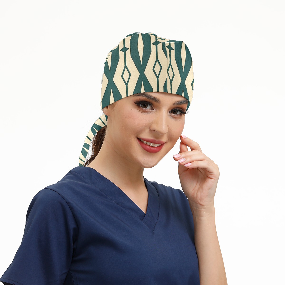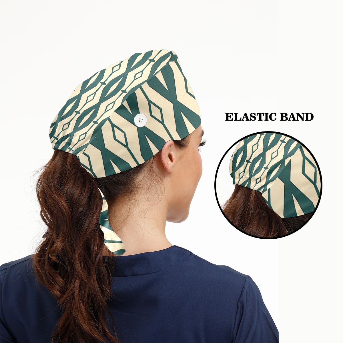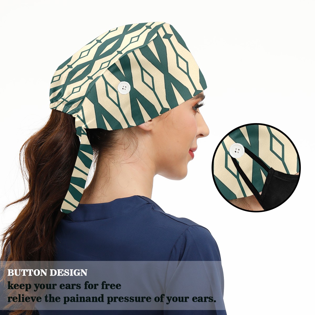 Working Caps with Button & Sweatband Satin Lined Cotton Adjustable Nurse Hats Elastic Band Scrub Cap Surgeon Hat Abstract