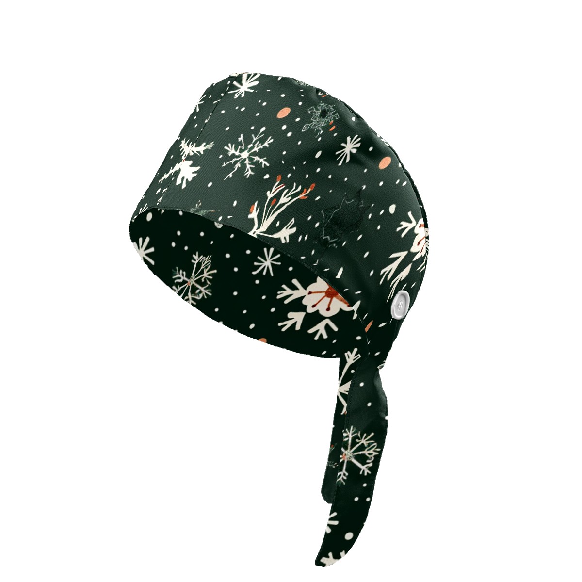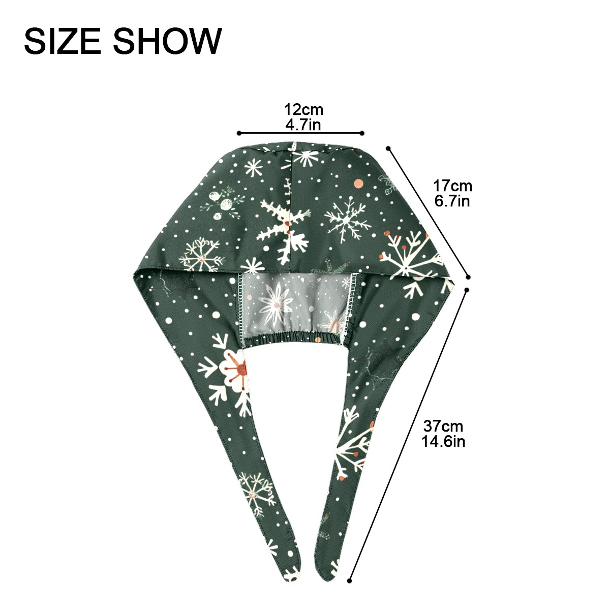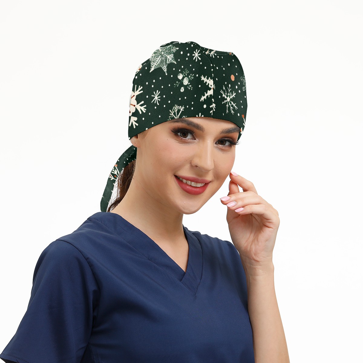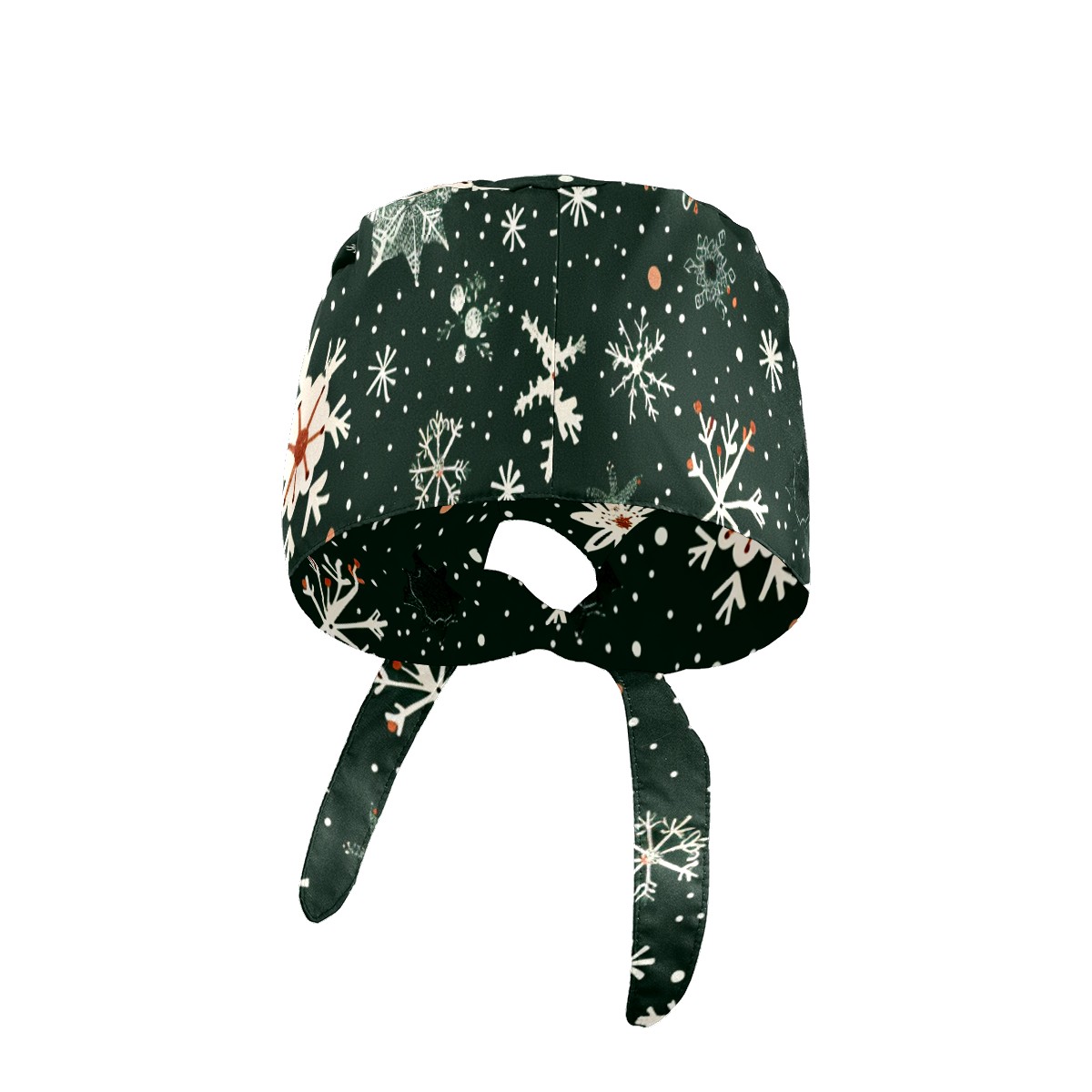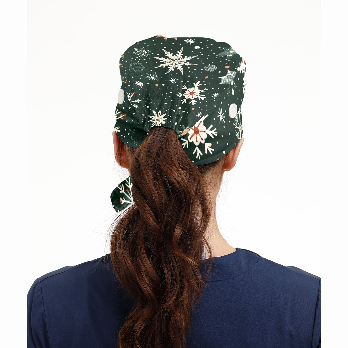 Working Caps with Button & Sweatband Satin Lined Cotton Adjustable Nurse Hats Elastic Band Scrub Cap Surgeon Hat Snowflake