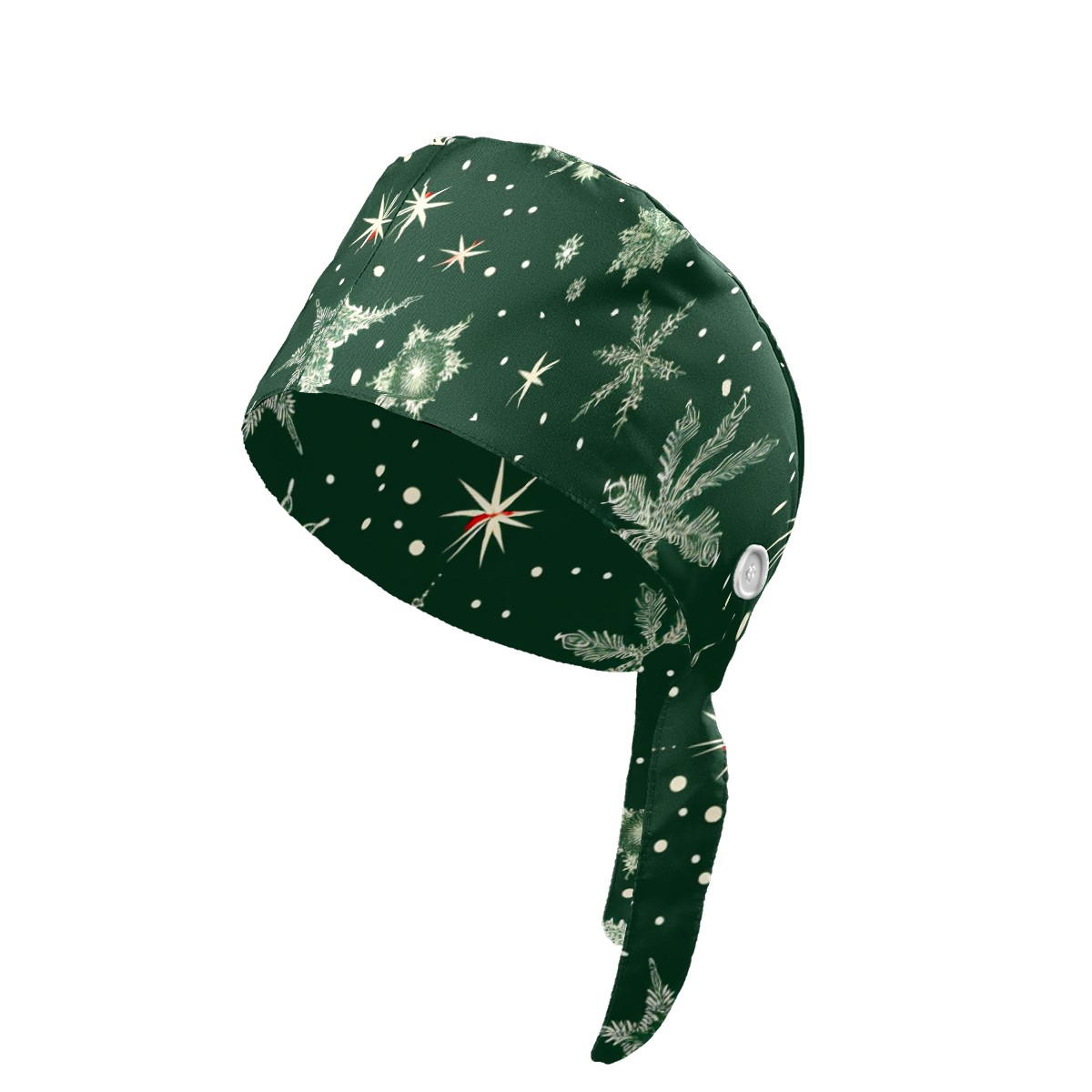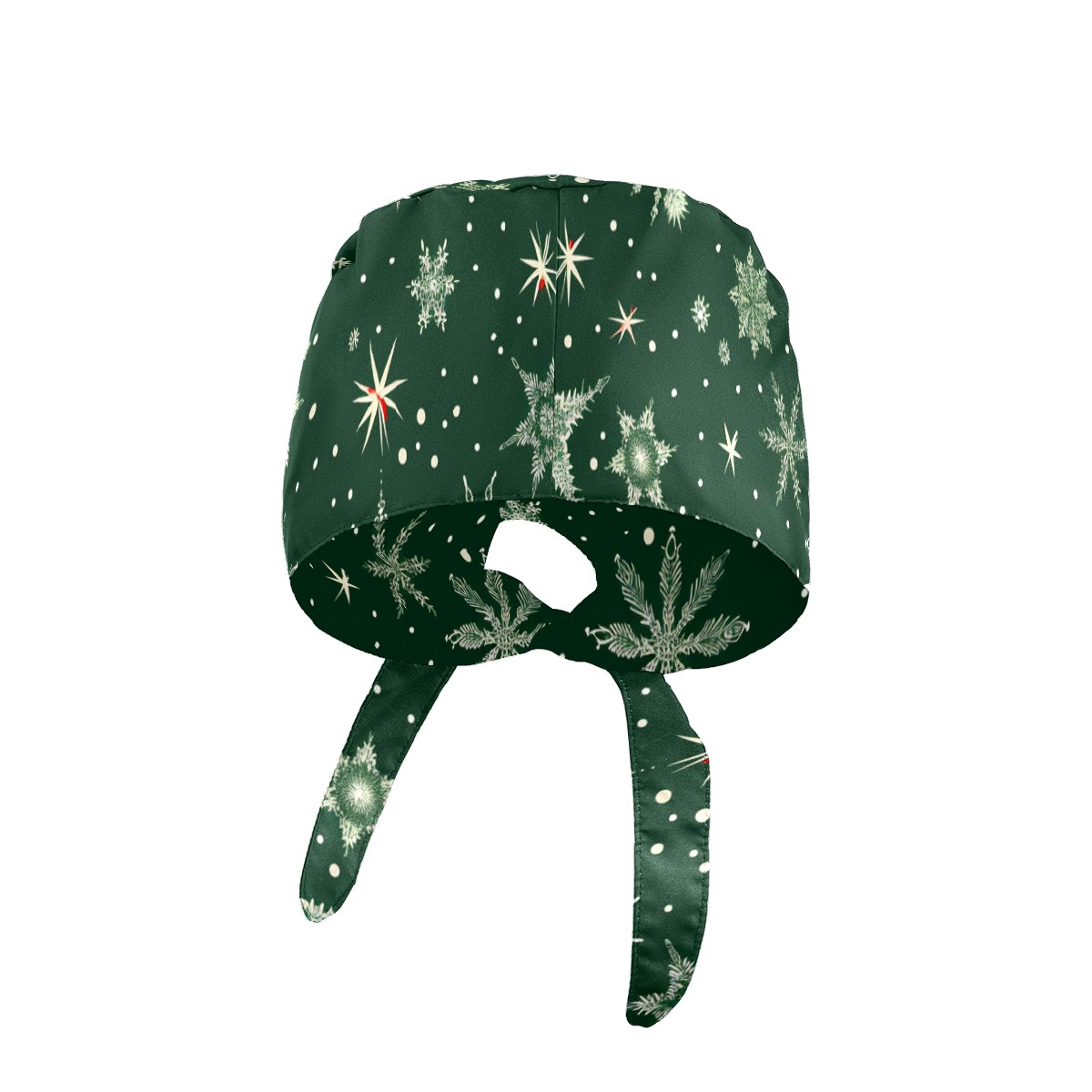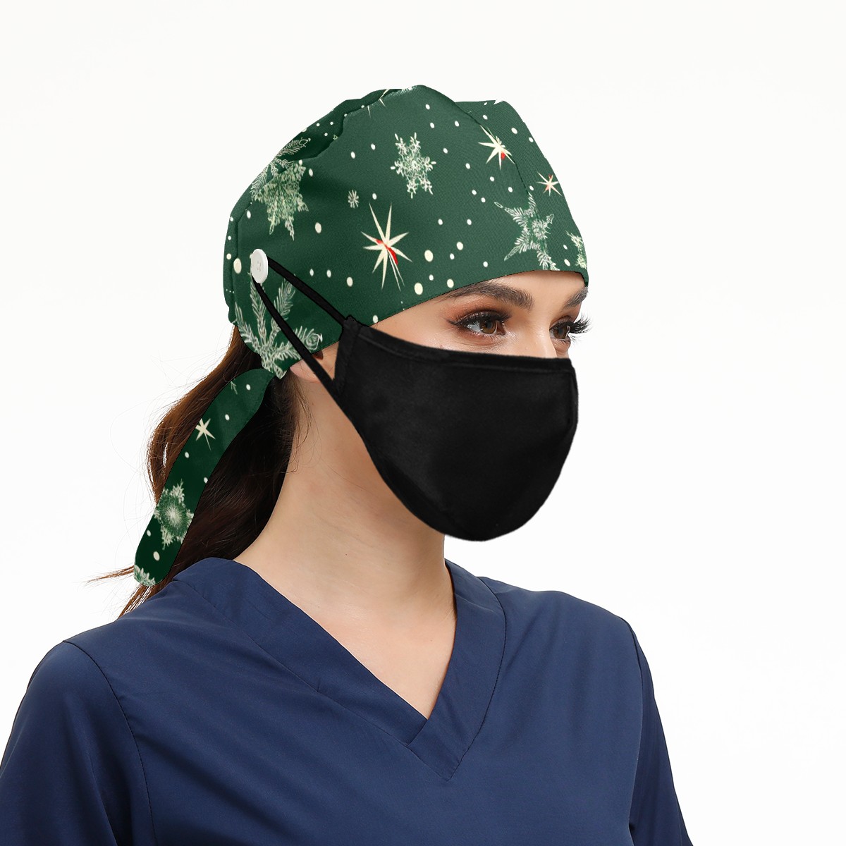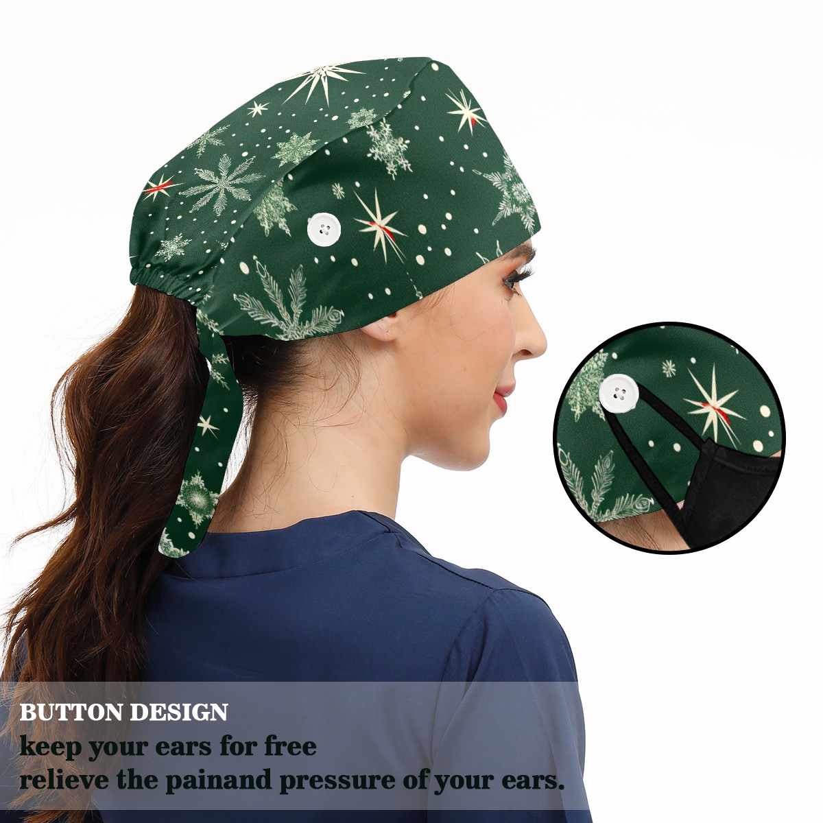 Working Caps with Button & Sweatband Satin Lined Cotton Adjustable Nurse Hats Elastic Band Scrub Cap Surgeon Hat Snowflake
