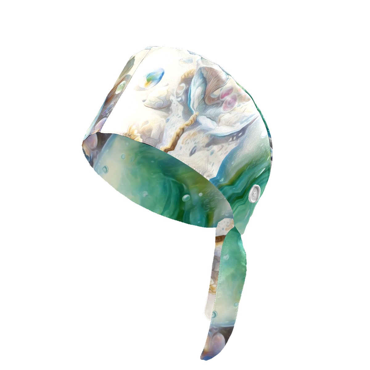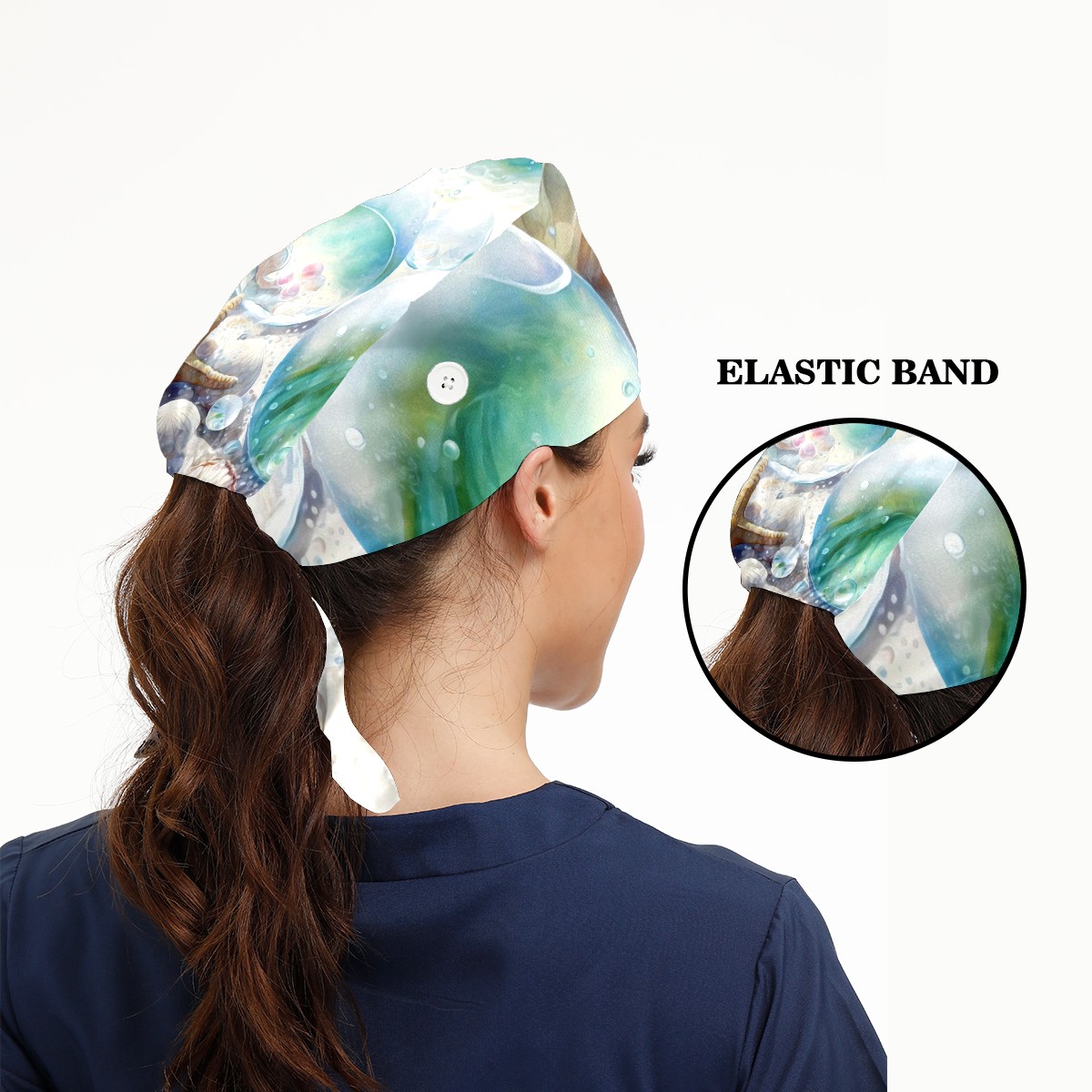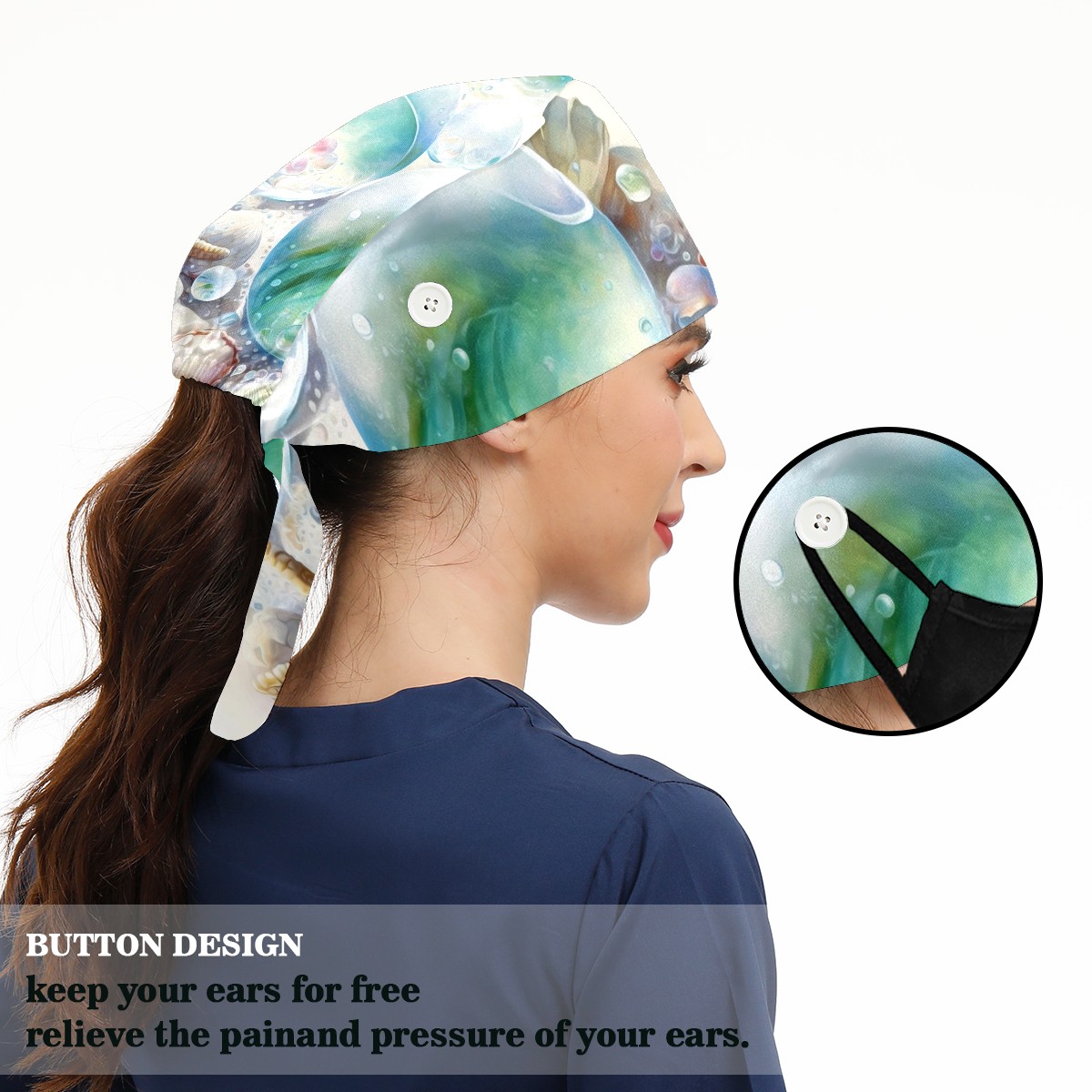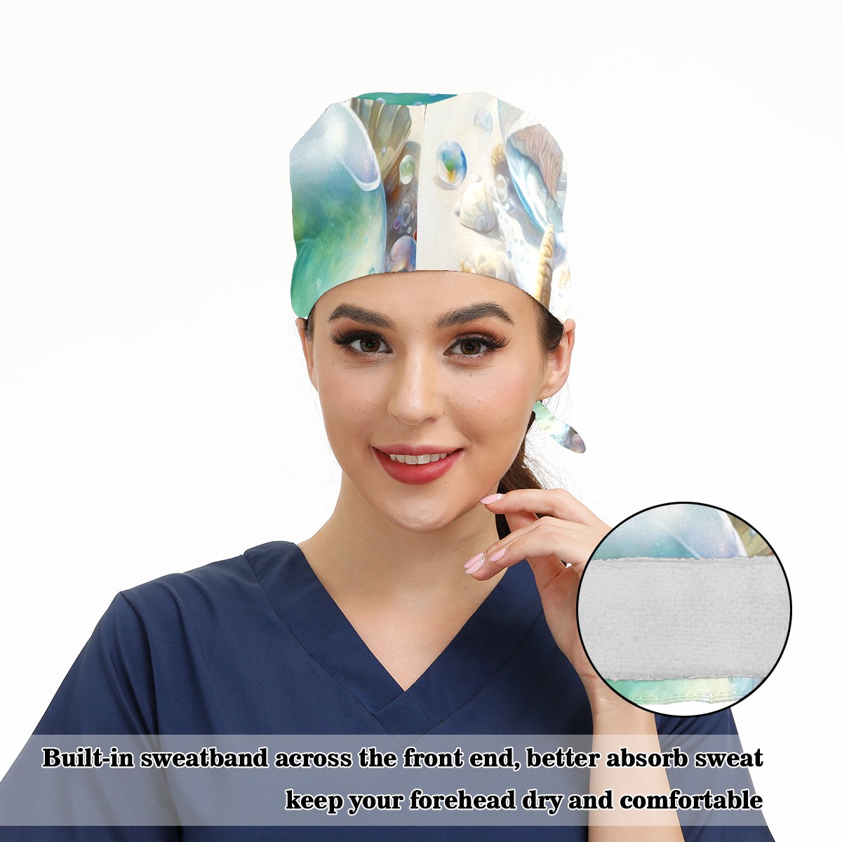 Working Caps with Button & Sweatband Satin Lined Cotton Adjustable Nurse Hats Elastic Band Scrub Cap Surgeon Hat Painting Seashells Beach