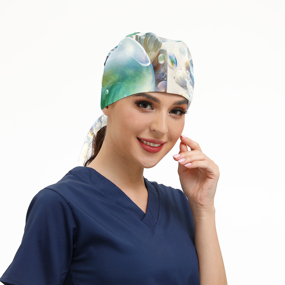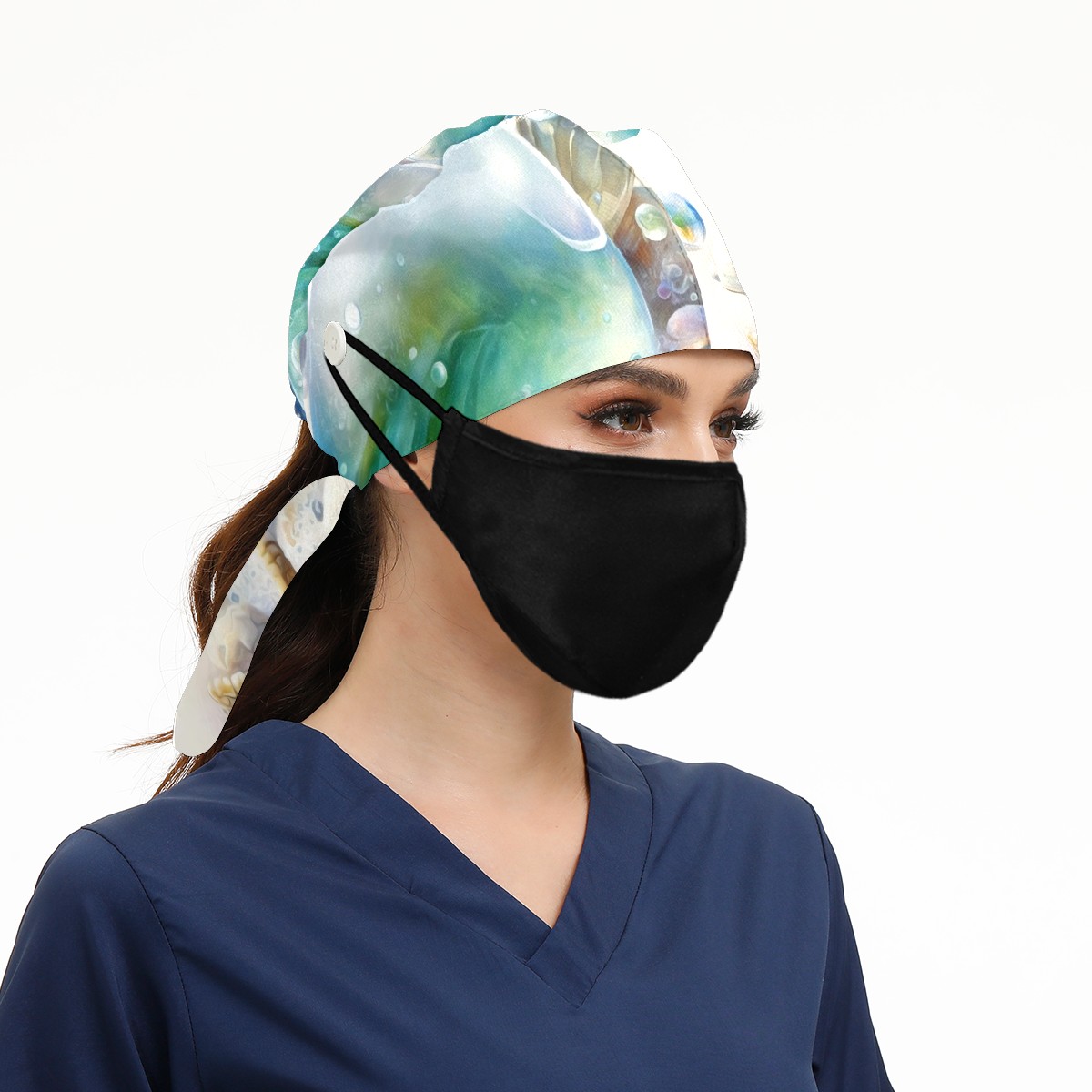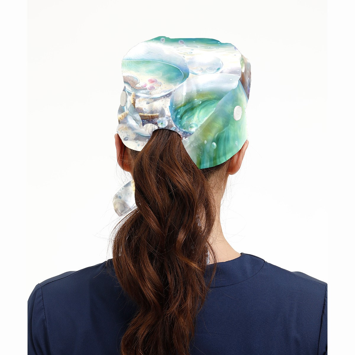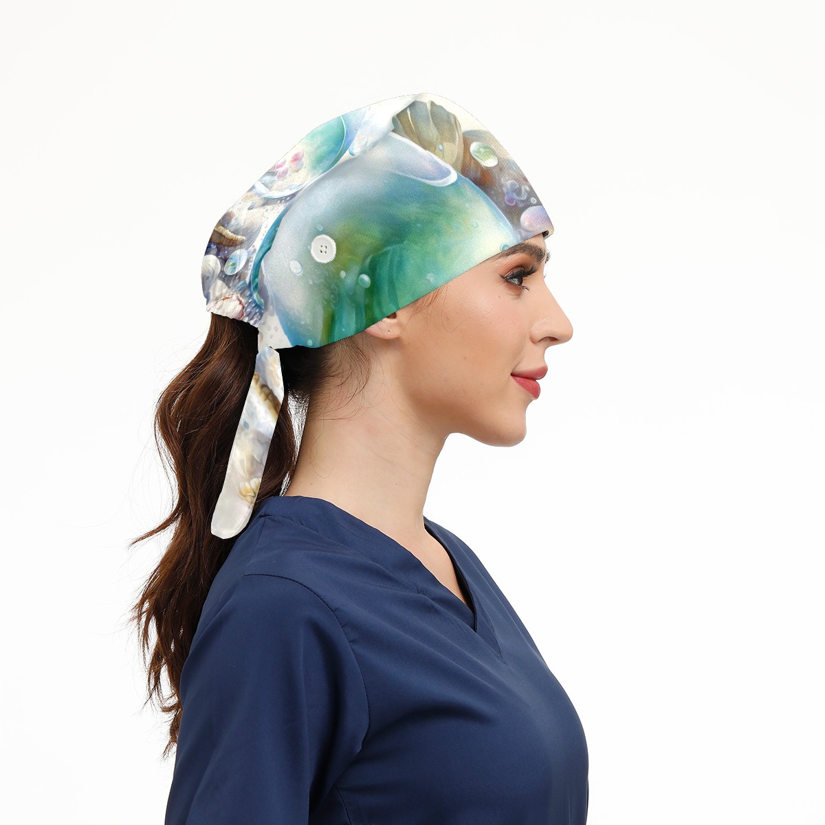 Working Caps with Button & Sweatband Satin Lined Cotton Adjustable Nurse Hats Elastic Band Scrub Cap Surgeon Hat Painting Seashells Beach