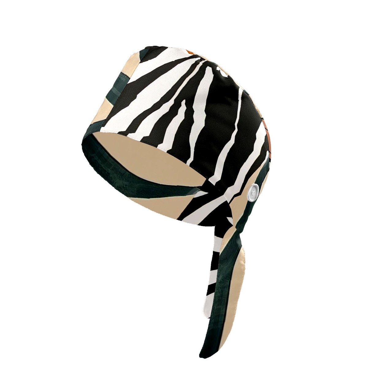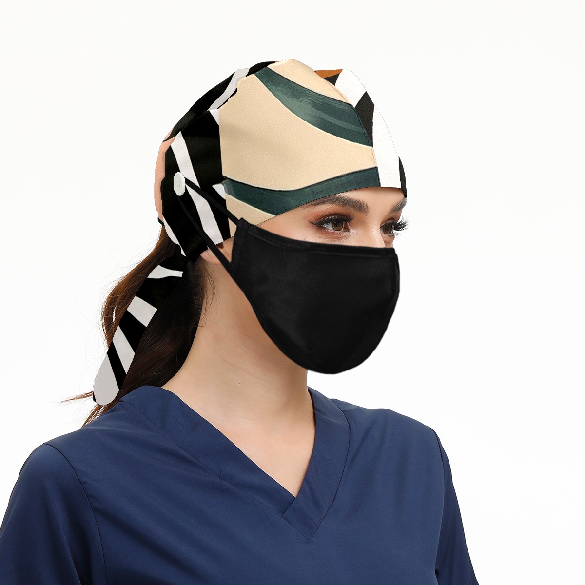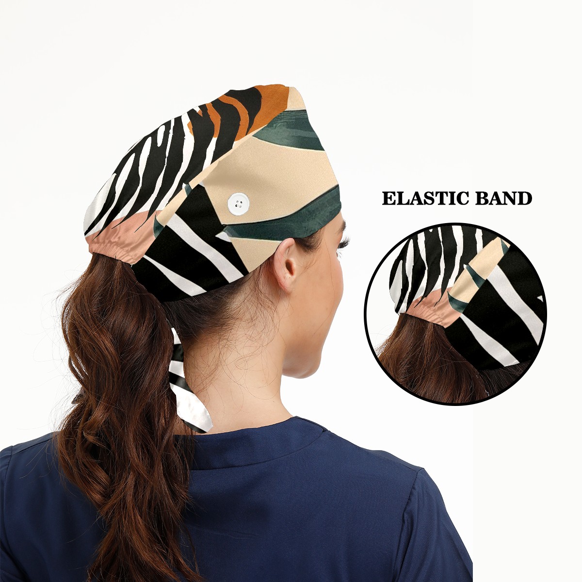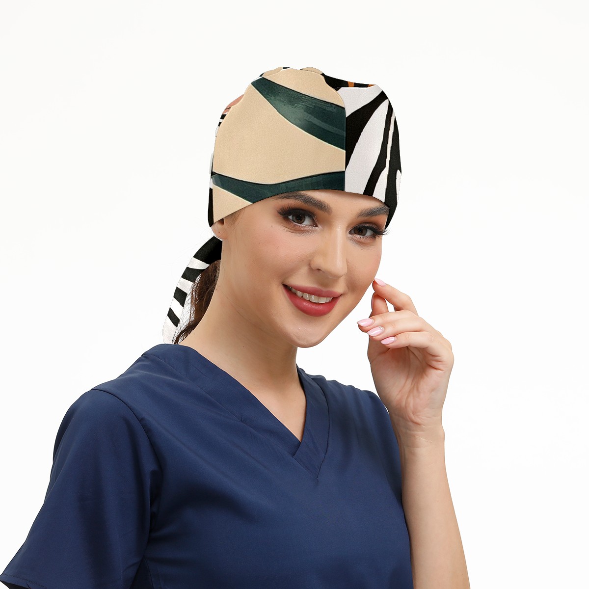 Working Caps with Button & Sweatband Satin Lined Cotton Adjustable Nurse Hats Elastic Band Scrub Cap Surgeon Hat Gold Painting Boho Leaves