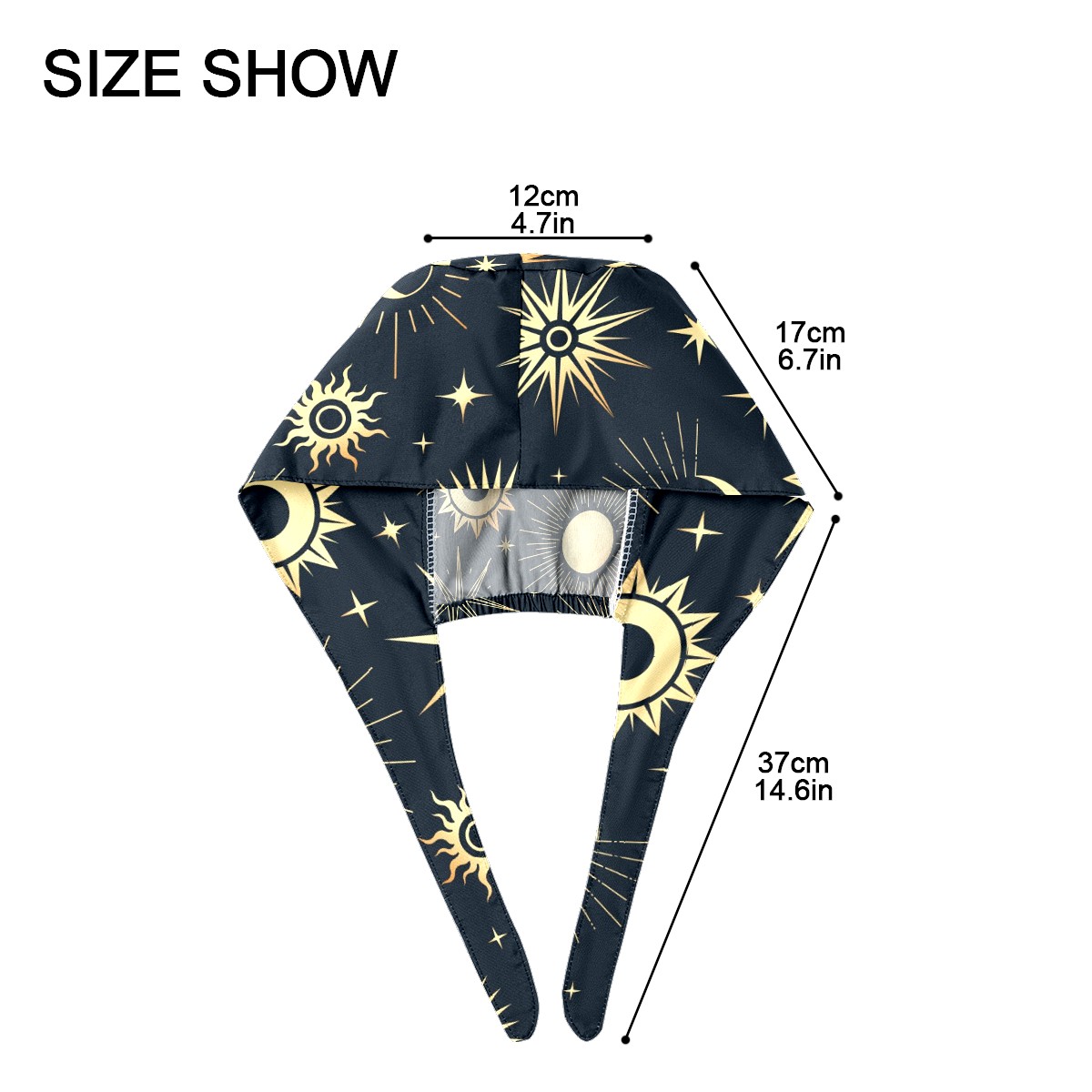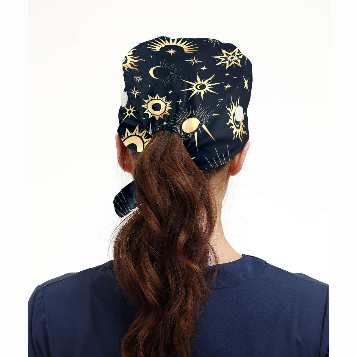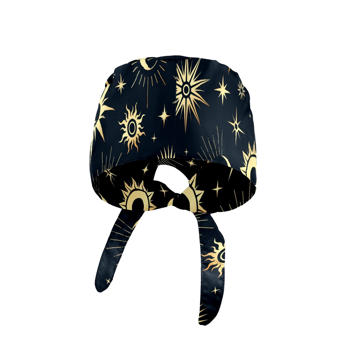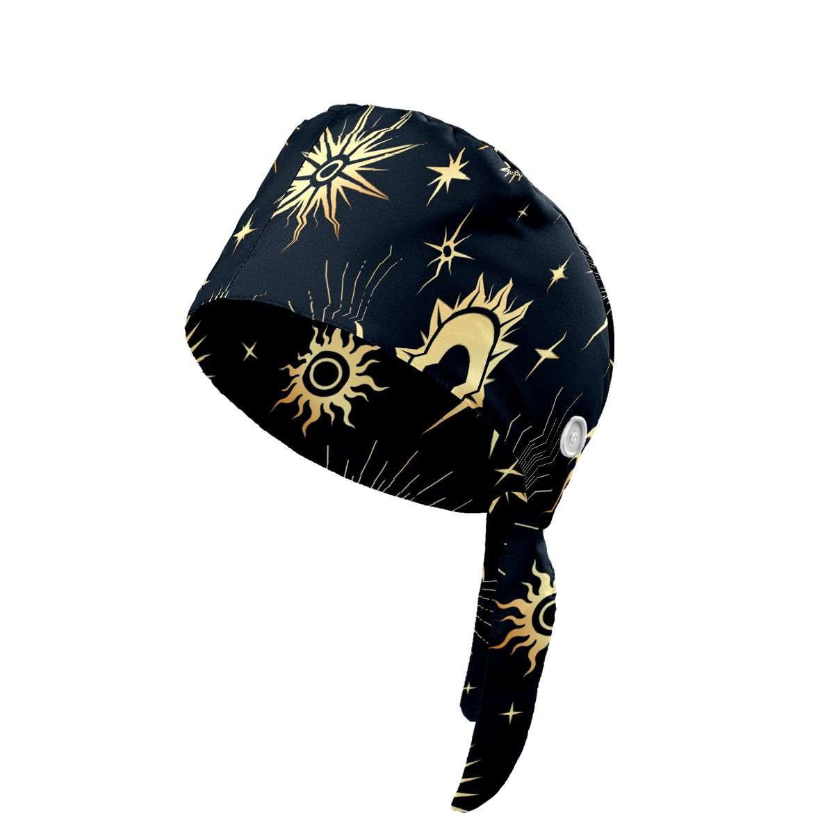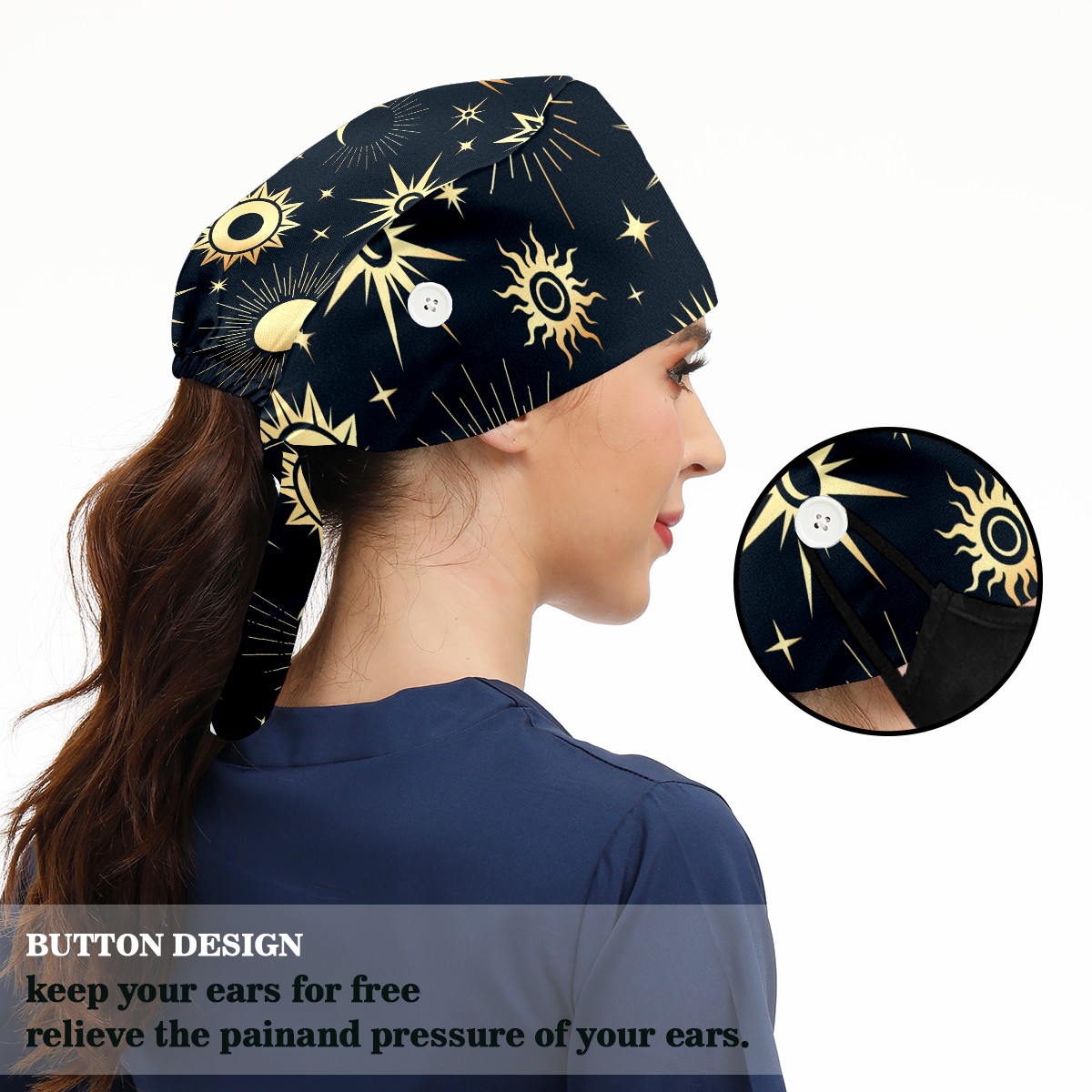 Working Caps with Button & Sweatband Satin Lined Cotton Adjustable Nurse Hats Elastic Band Scrub Cap Surgeon Hat Gold Soleil Cosmos Astrology