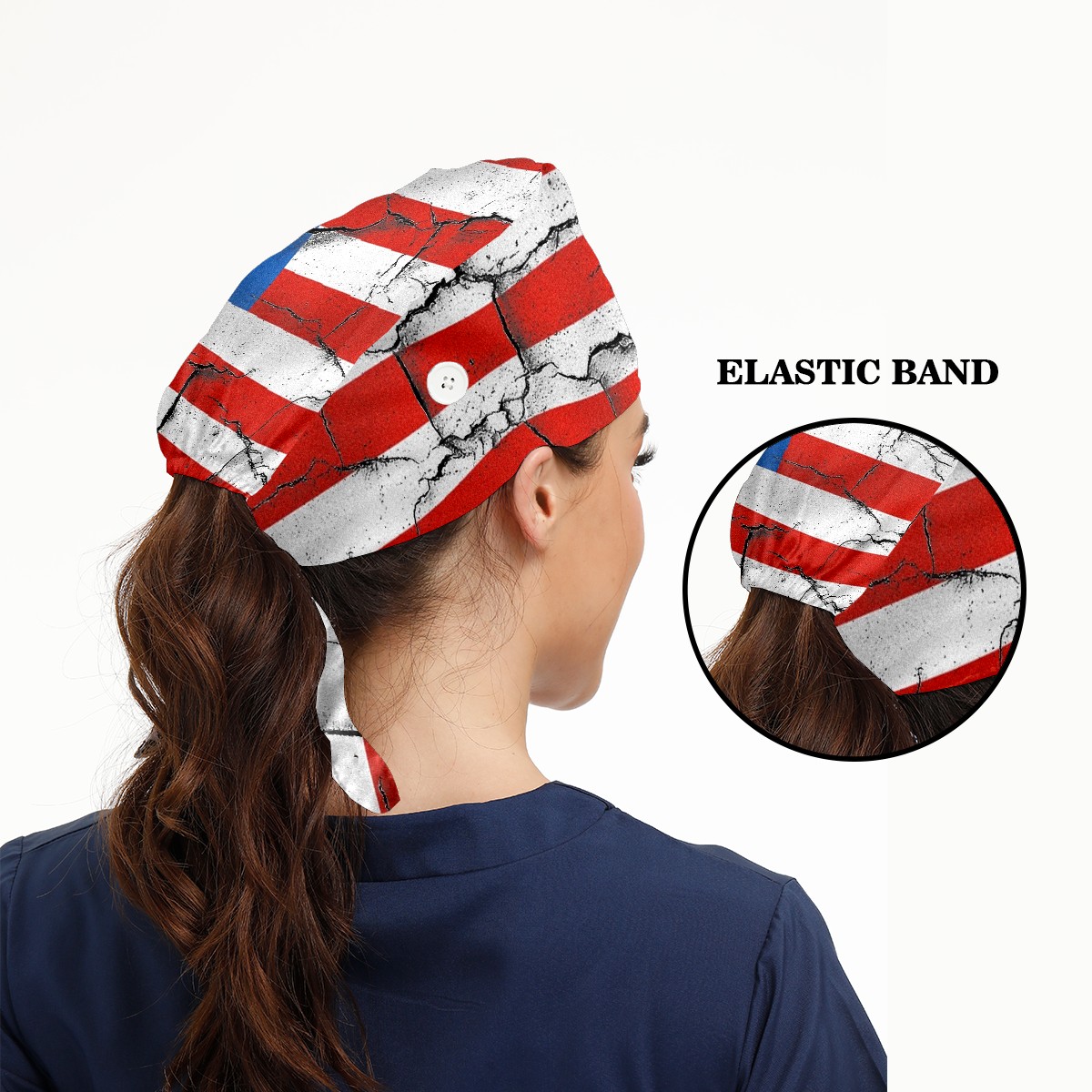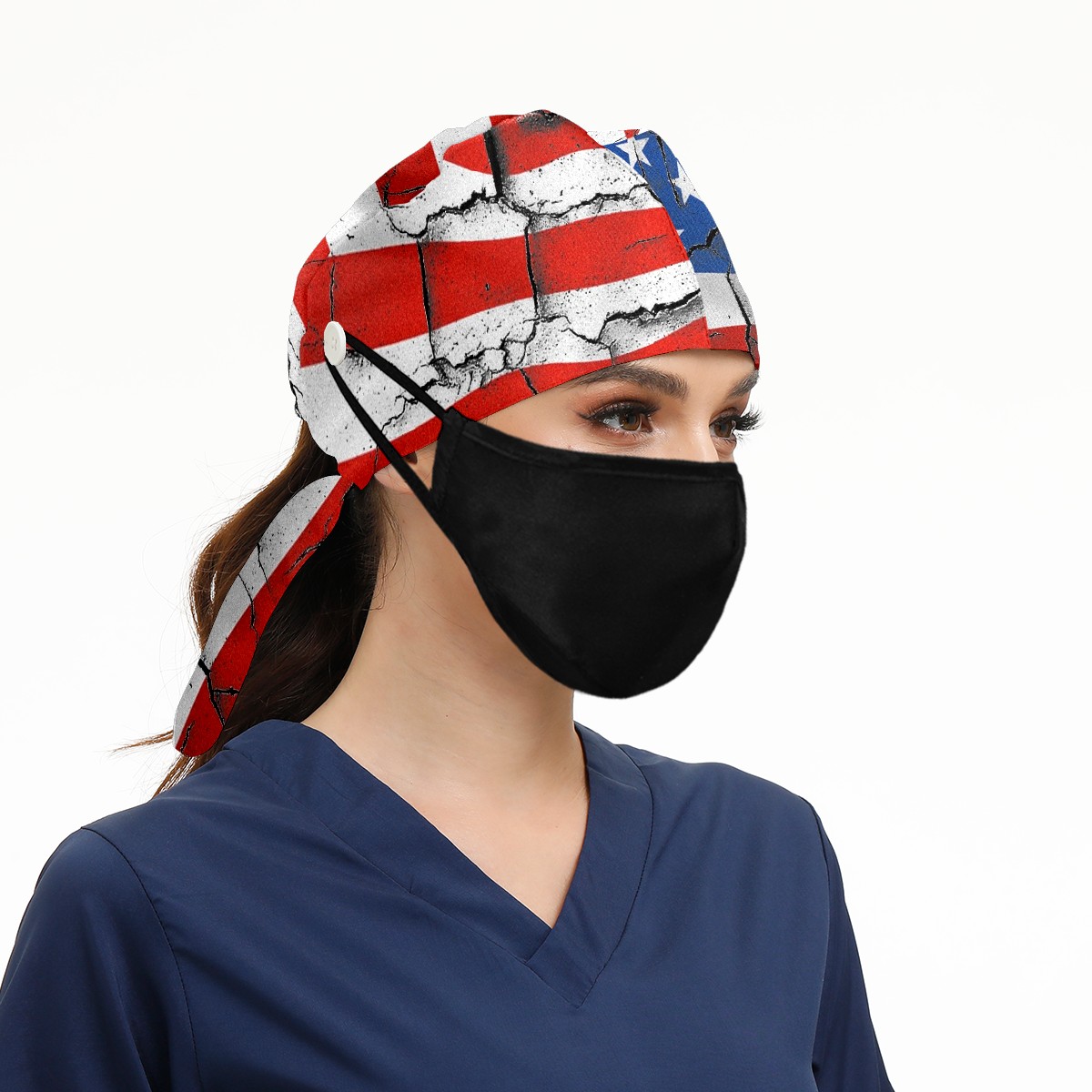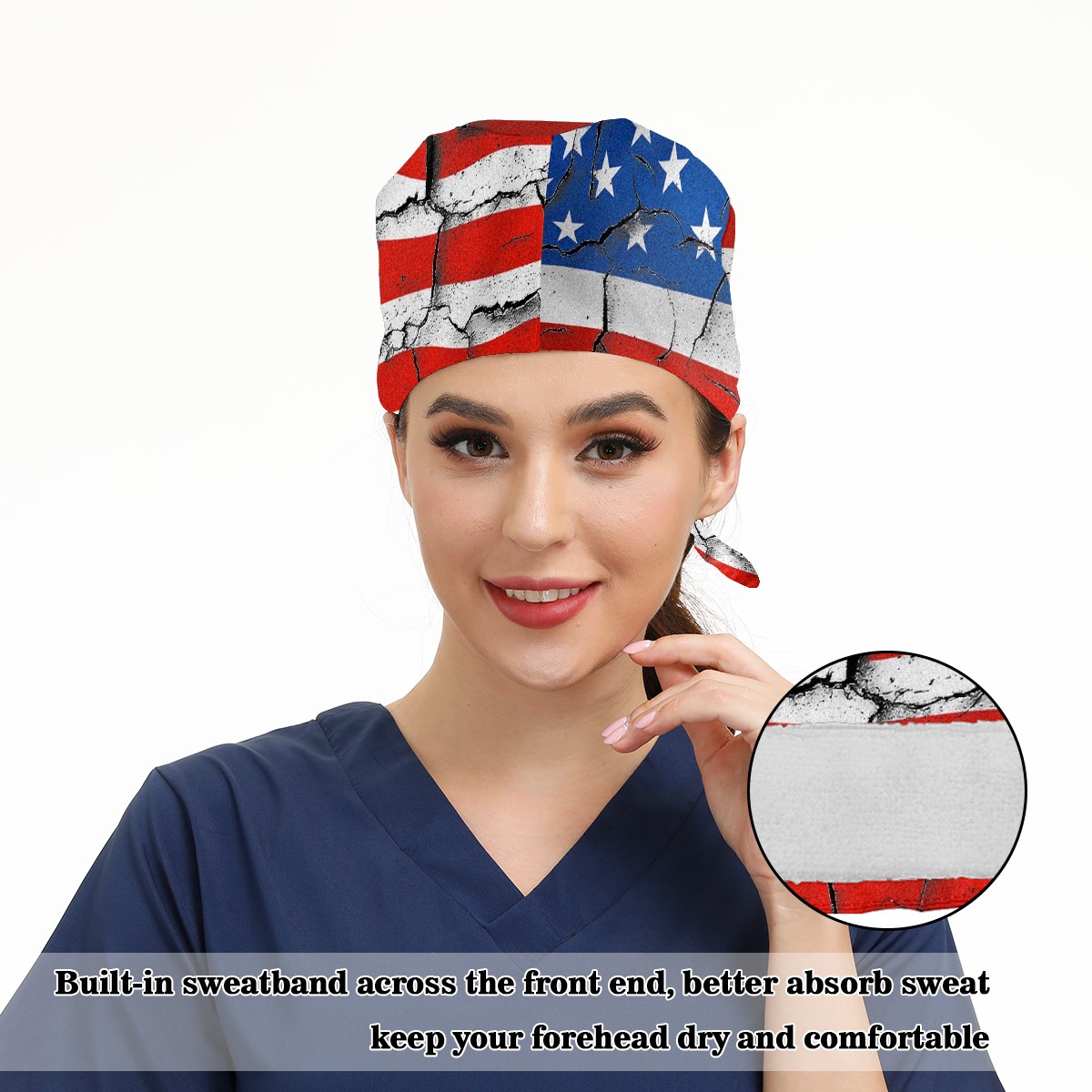 Working Caps with Button & Sweatband Satin Lined Cotton Adjustable Nurse Hats Elastic Band Scrub Cap Surgeon Hat 美国国旗2