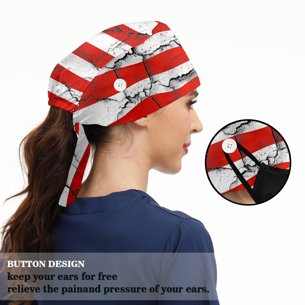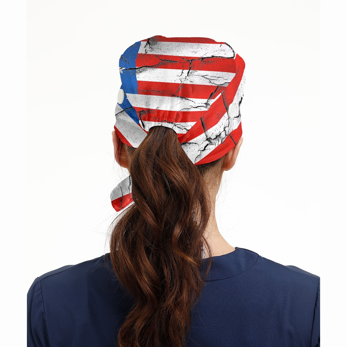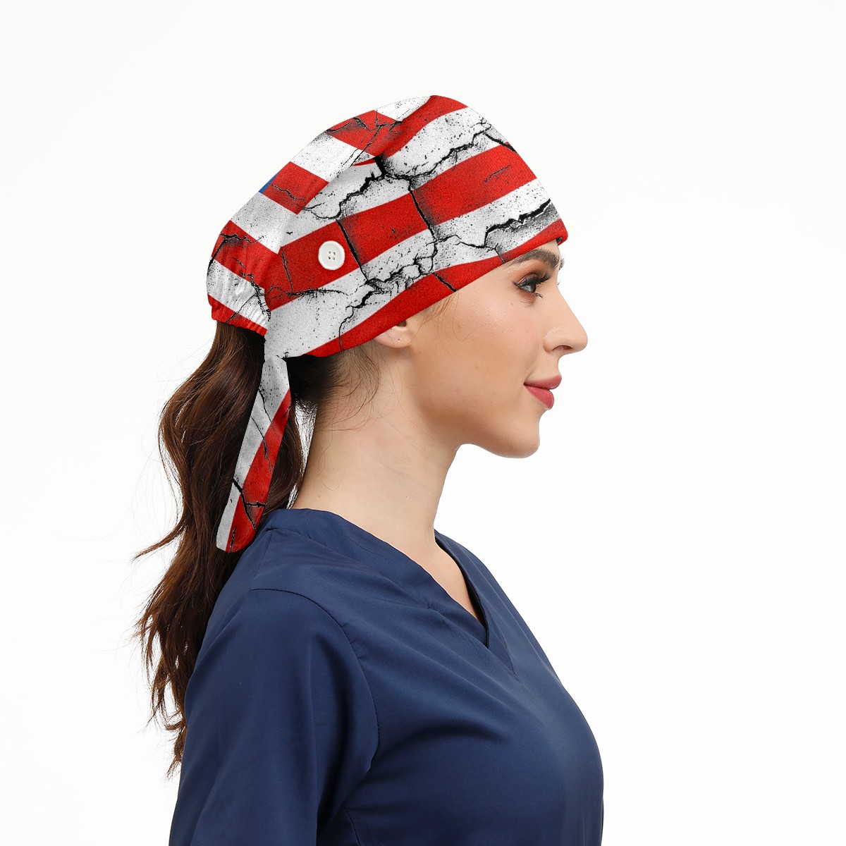 Working Caps with Button & Sweatband Satin Lined Cotton Adjustable Nurse Hats Elastic Band Scrub Cap Surgeon Hat 美国国旗2