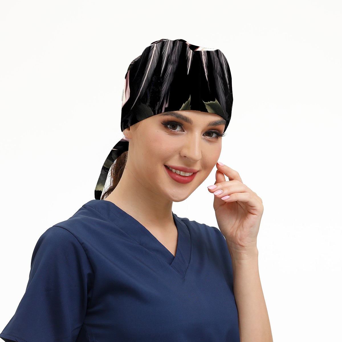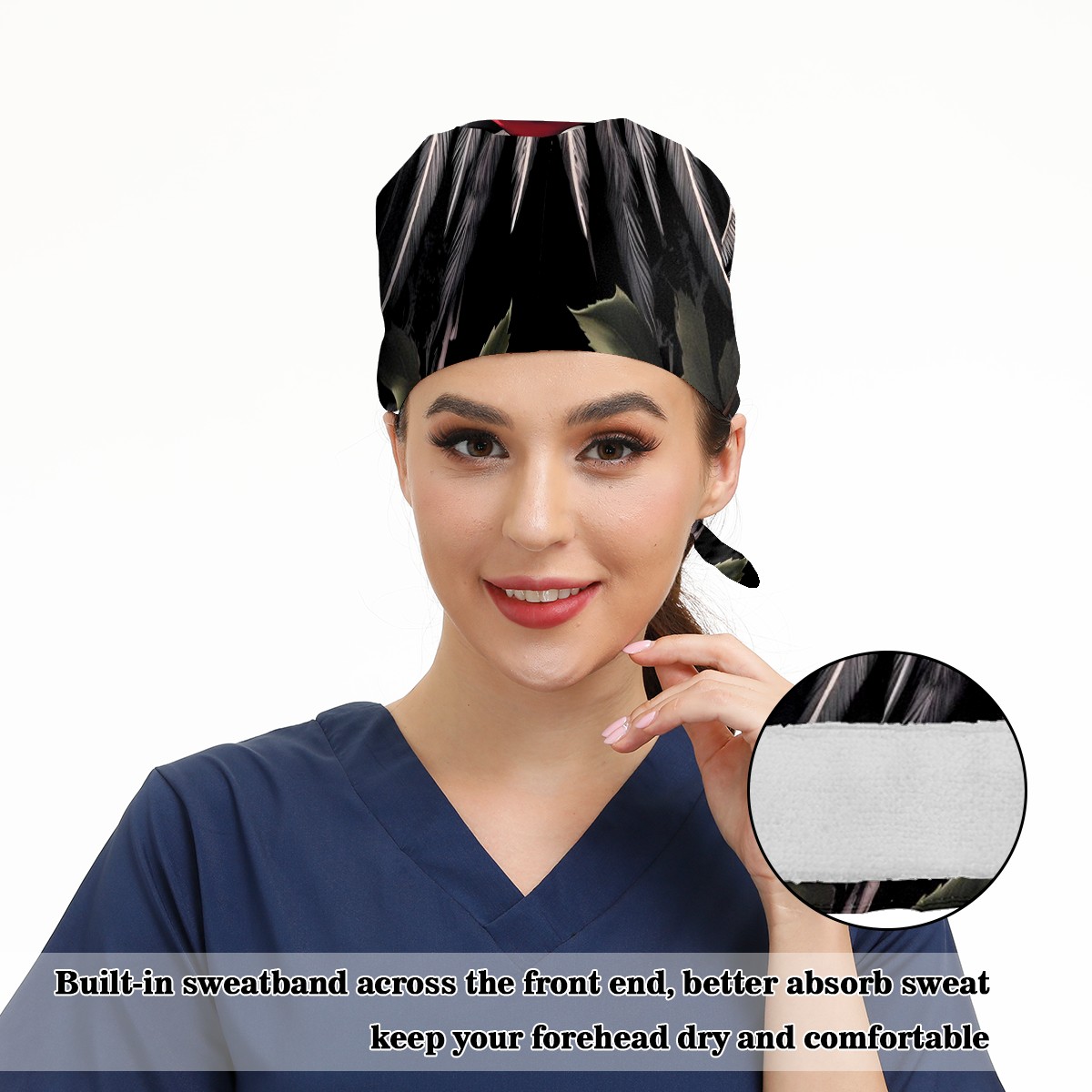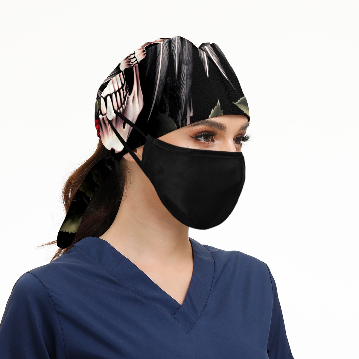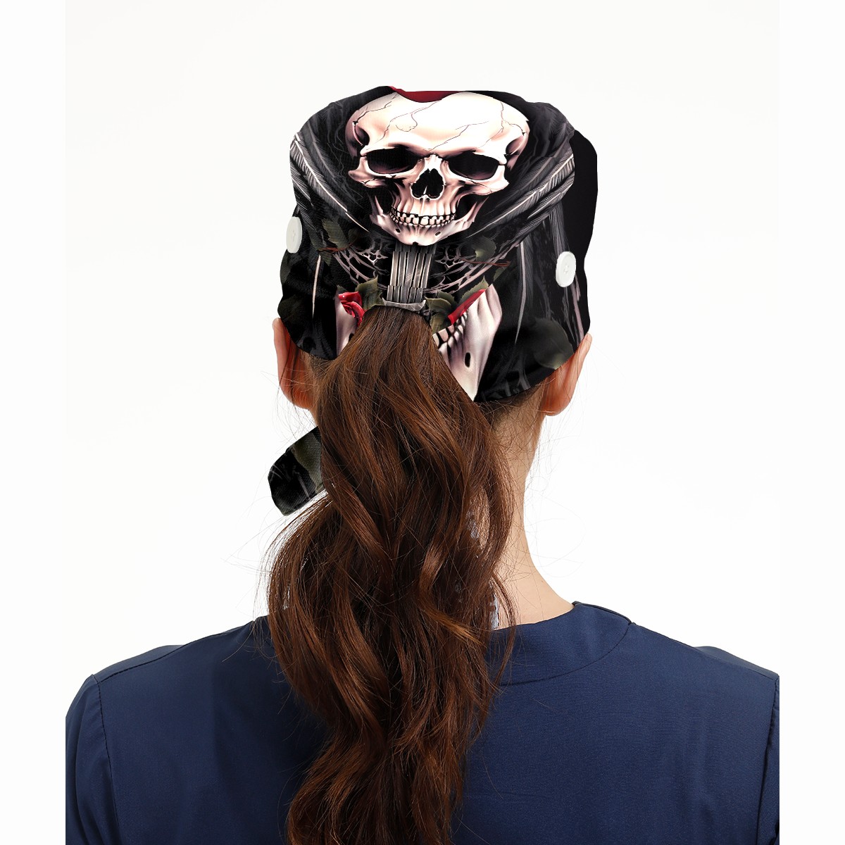 Working Caps with Button & Sweatband Satin Lined Cotton Adjustable Nurse Hats Elastic Band Scrub Cap Surgeon Hat Skull Head