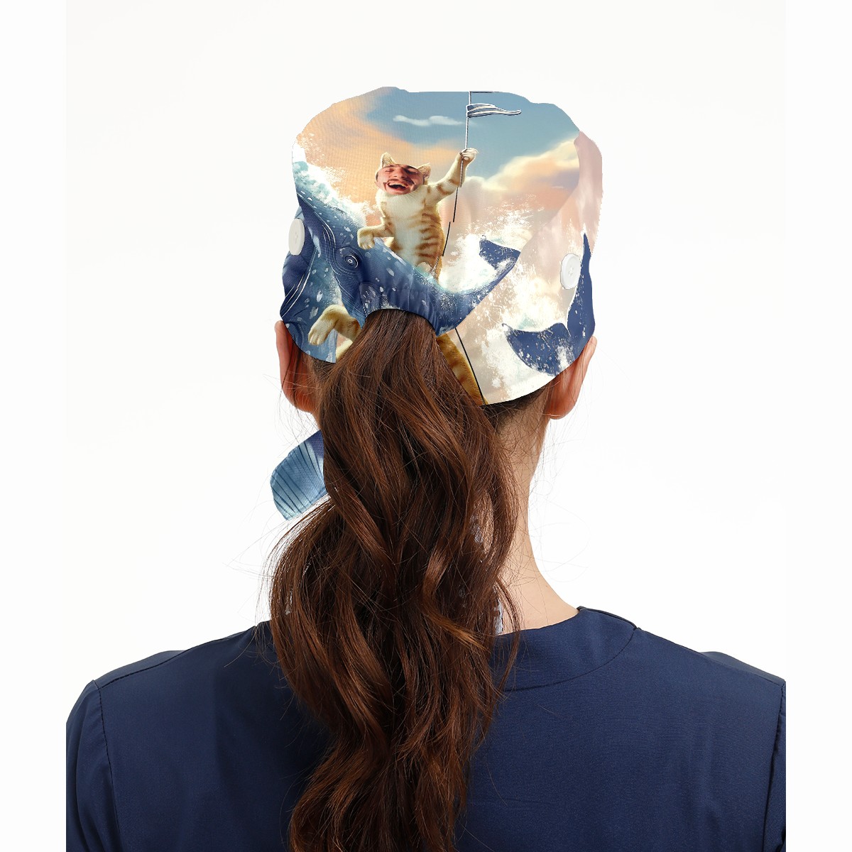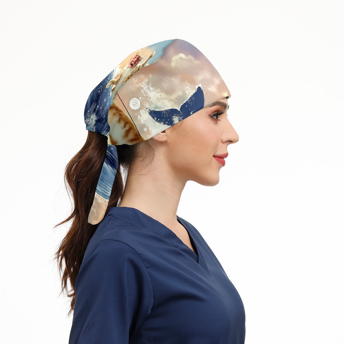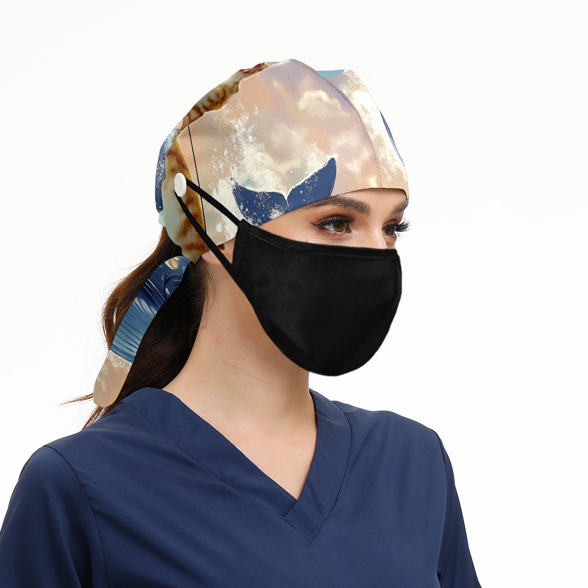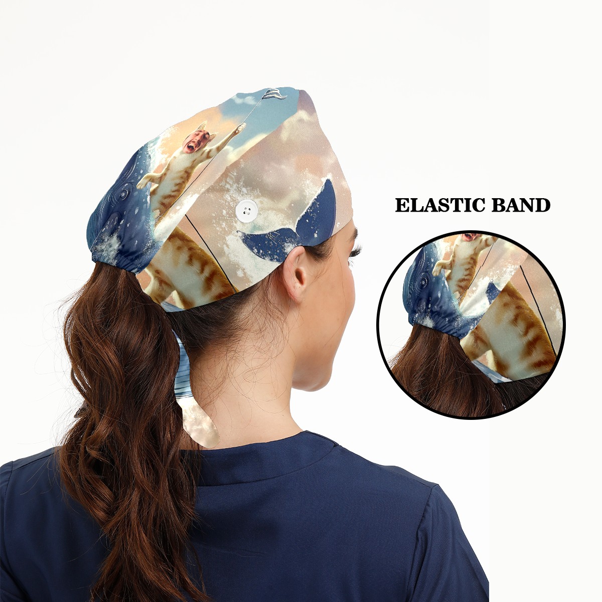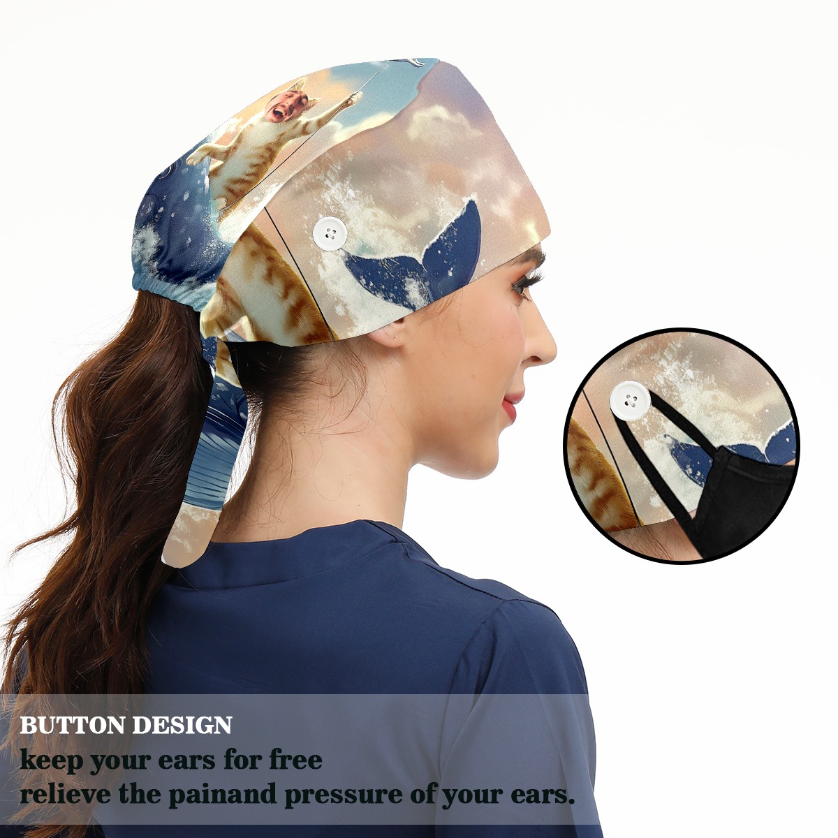 Working Caps with Button & Sweatband Satin Lined Cotton Adjustable Nurse Hats Elastic Band Scrub Cap Surgeon Hat 有趣头像浴帘