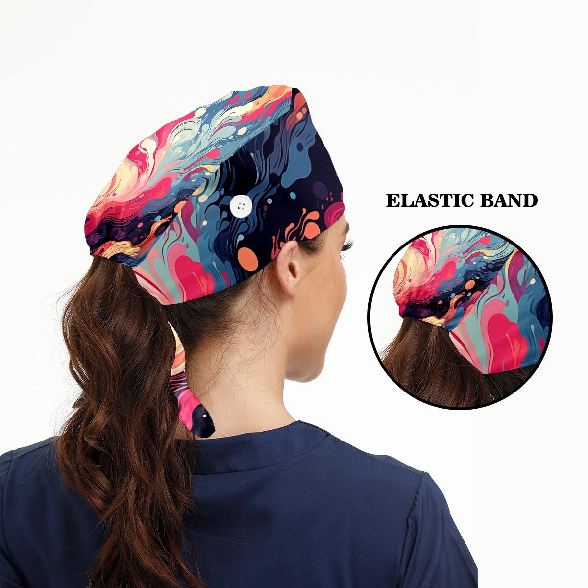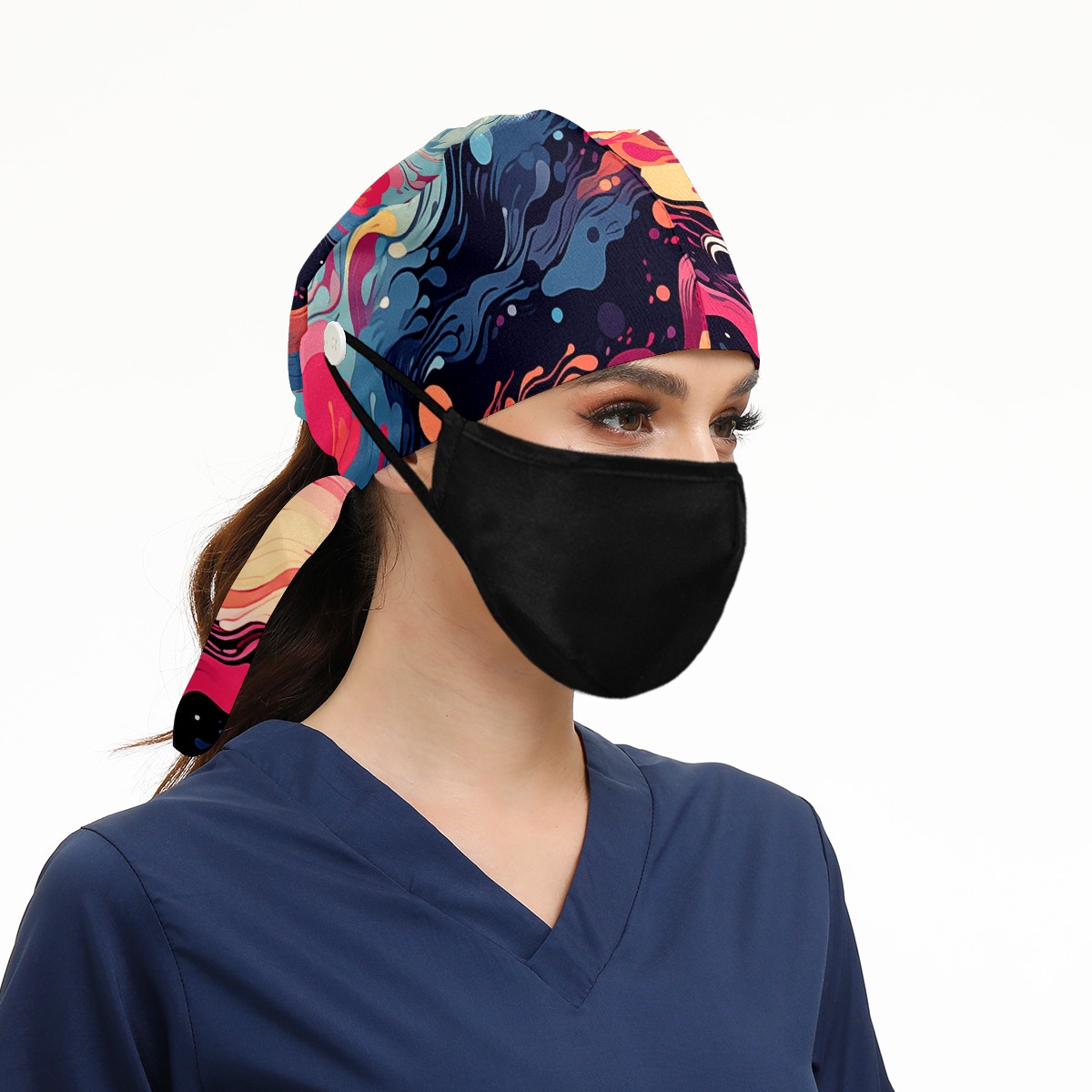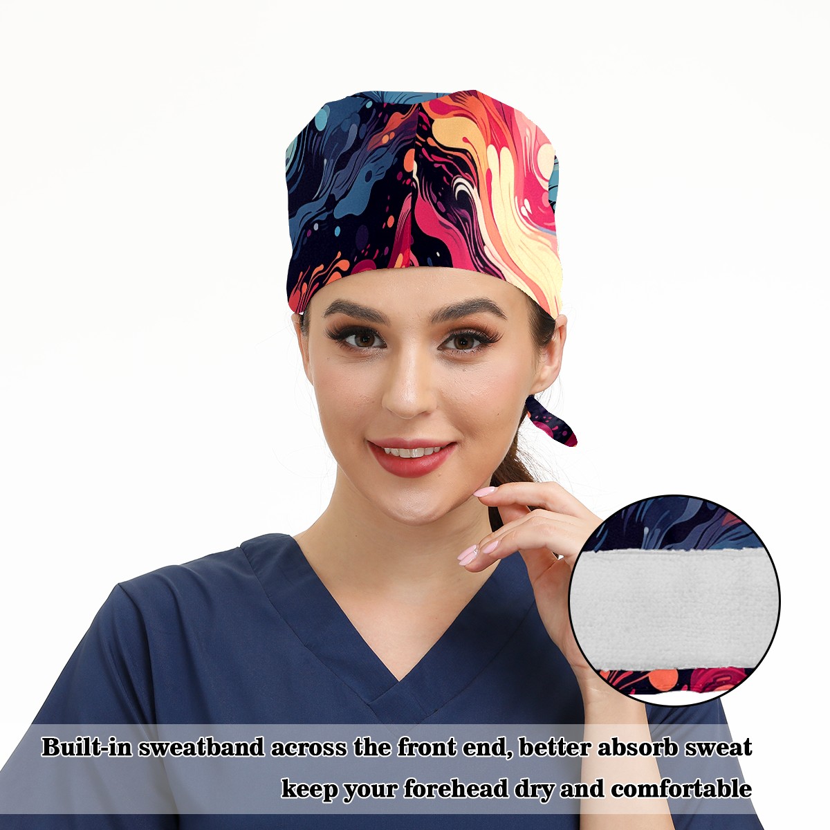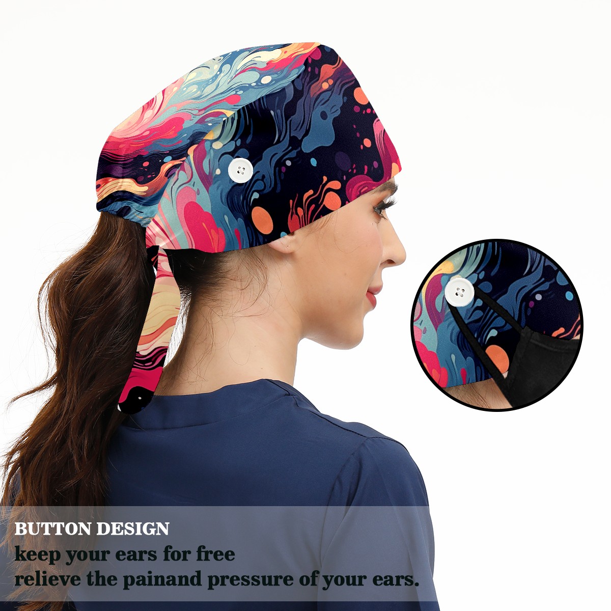 Working Caps with Button & Sweatband Satin Lined Cotton Adjustable Nurse Hats Elastic Band Scrub Cap Surgeon Hat Abstraction