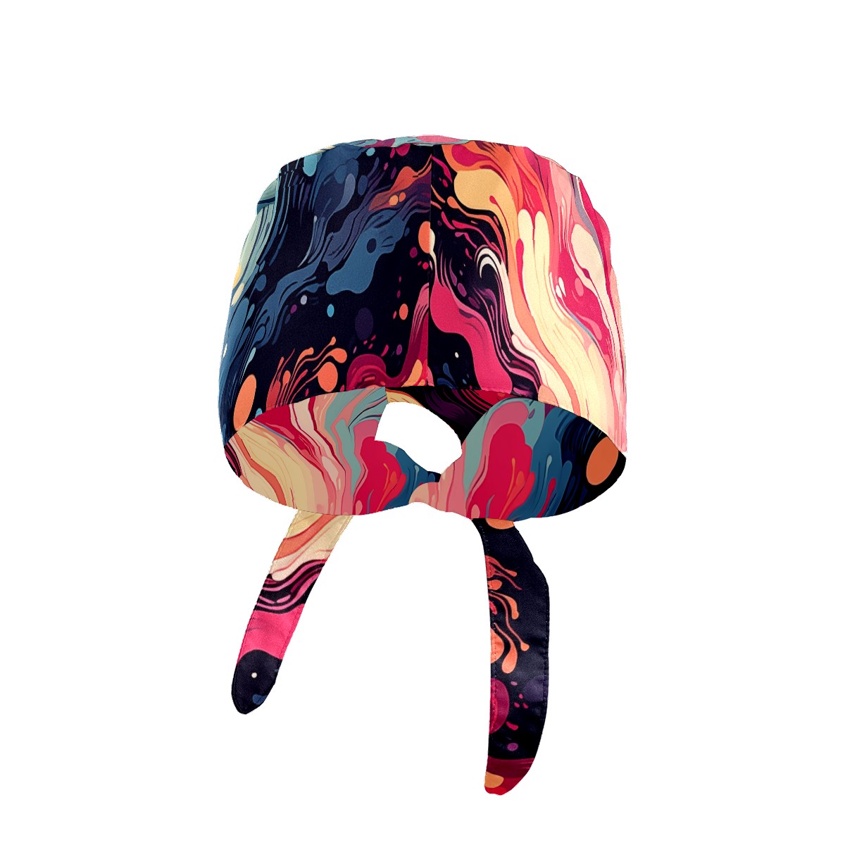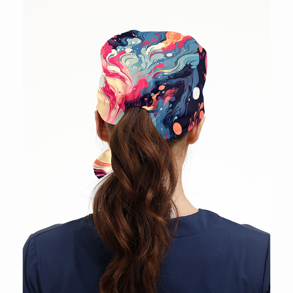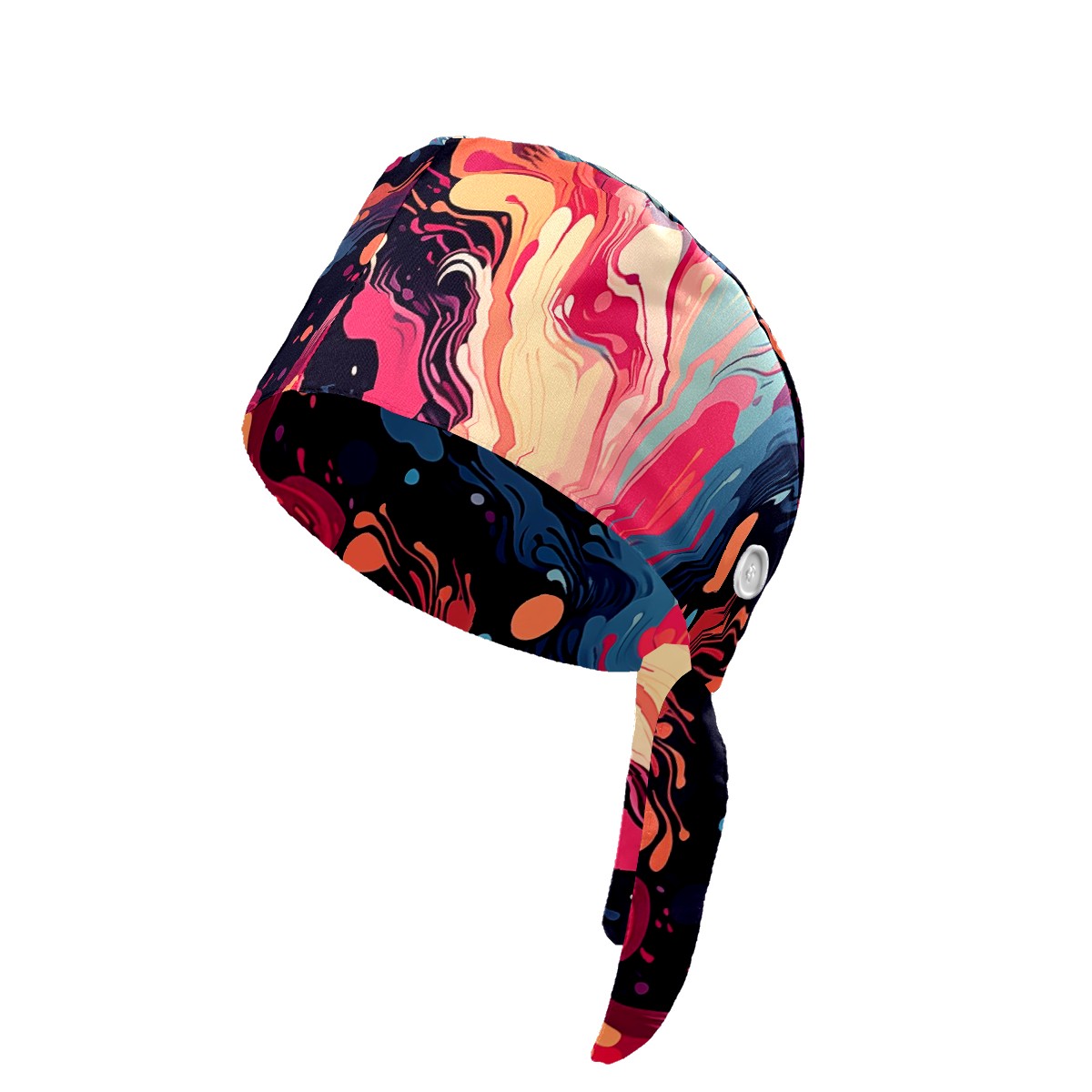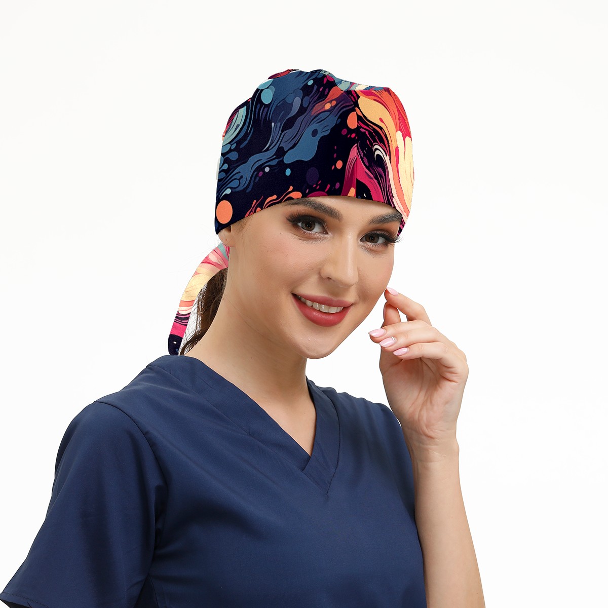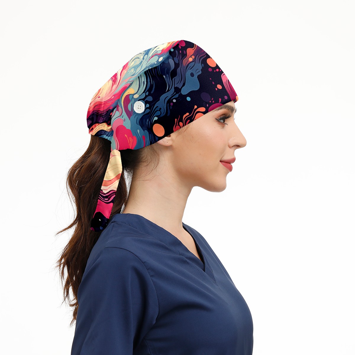 Working Caps with Button & Sweatband Satin Lined Cotton Adjustable Nurse Hats Elastic Band Scrub Cap Surgeon Hat Abstraction