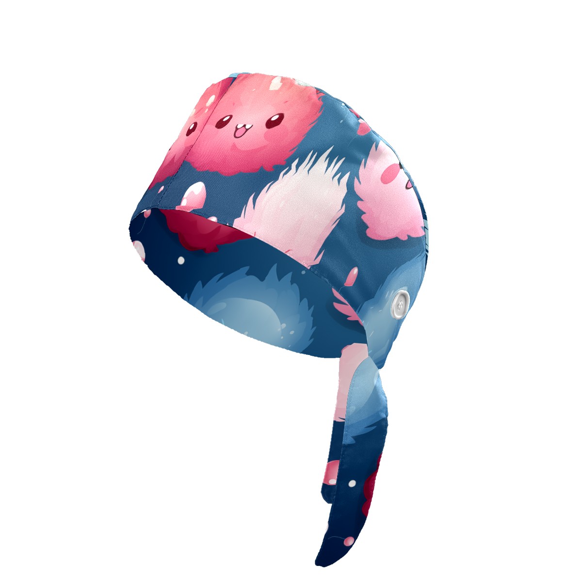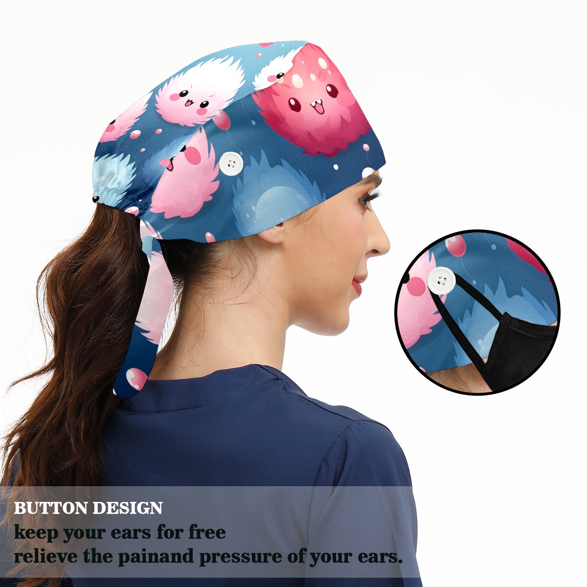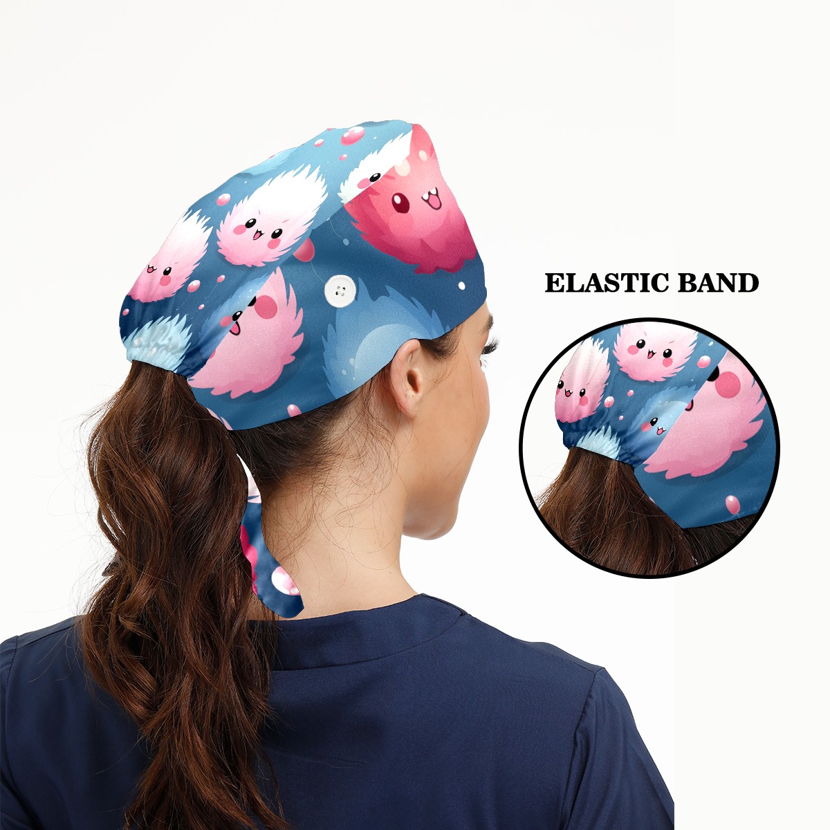 Working Caps with Button & Sweatband Satin Lined Cotton Adjustable Nurse Hats Elastic Band Scrub Cap Surgeon Hat Cute Furballs