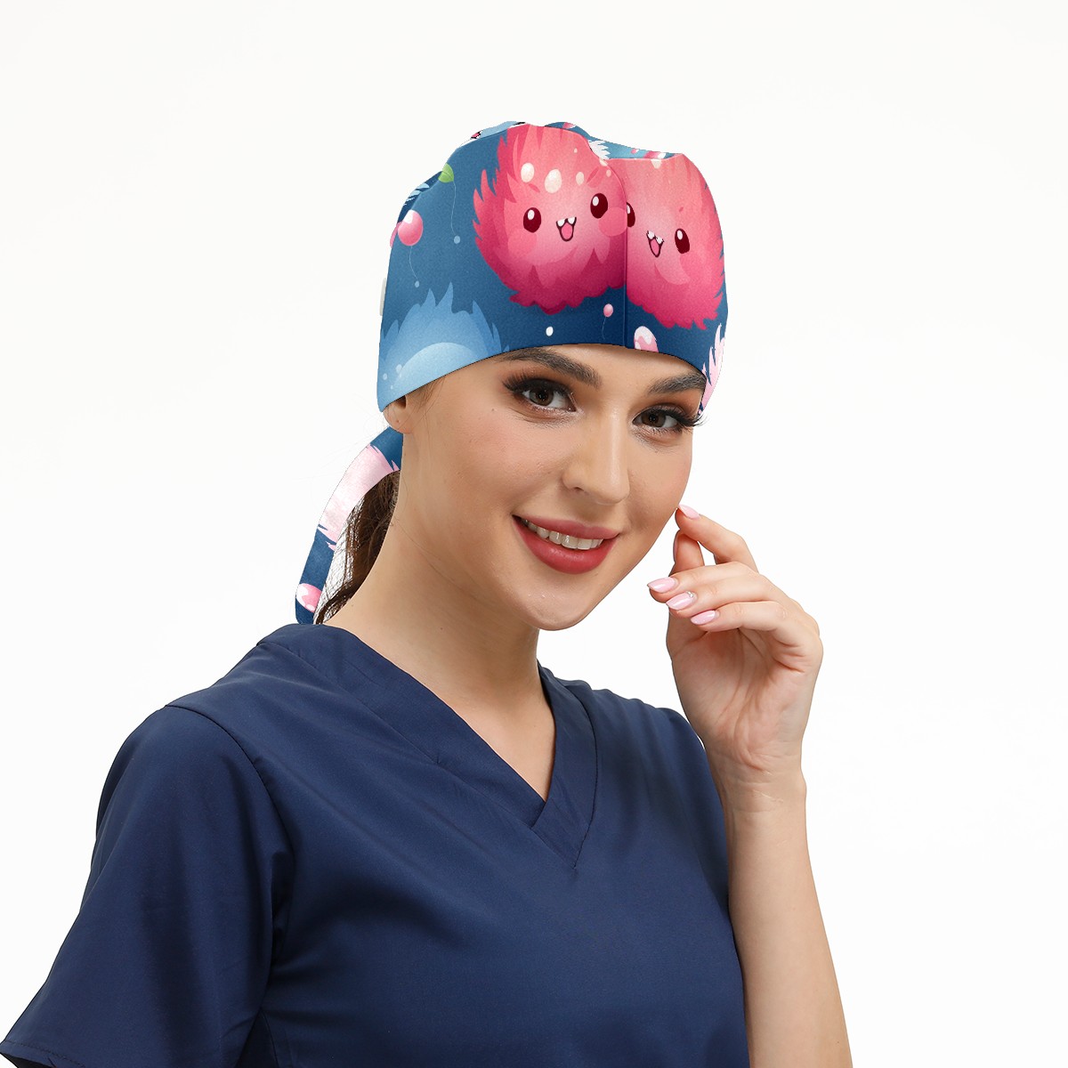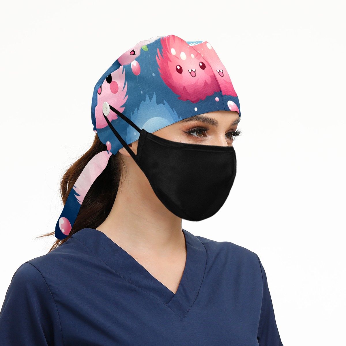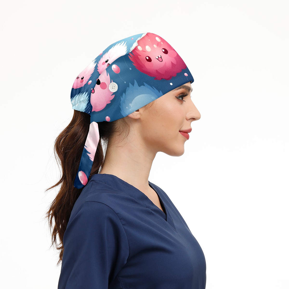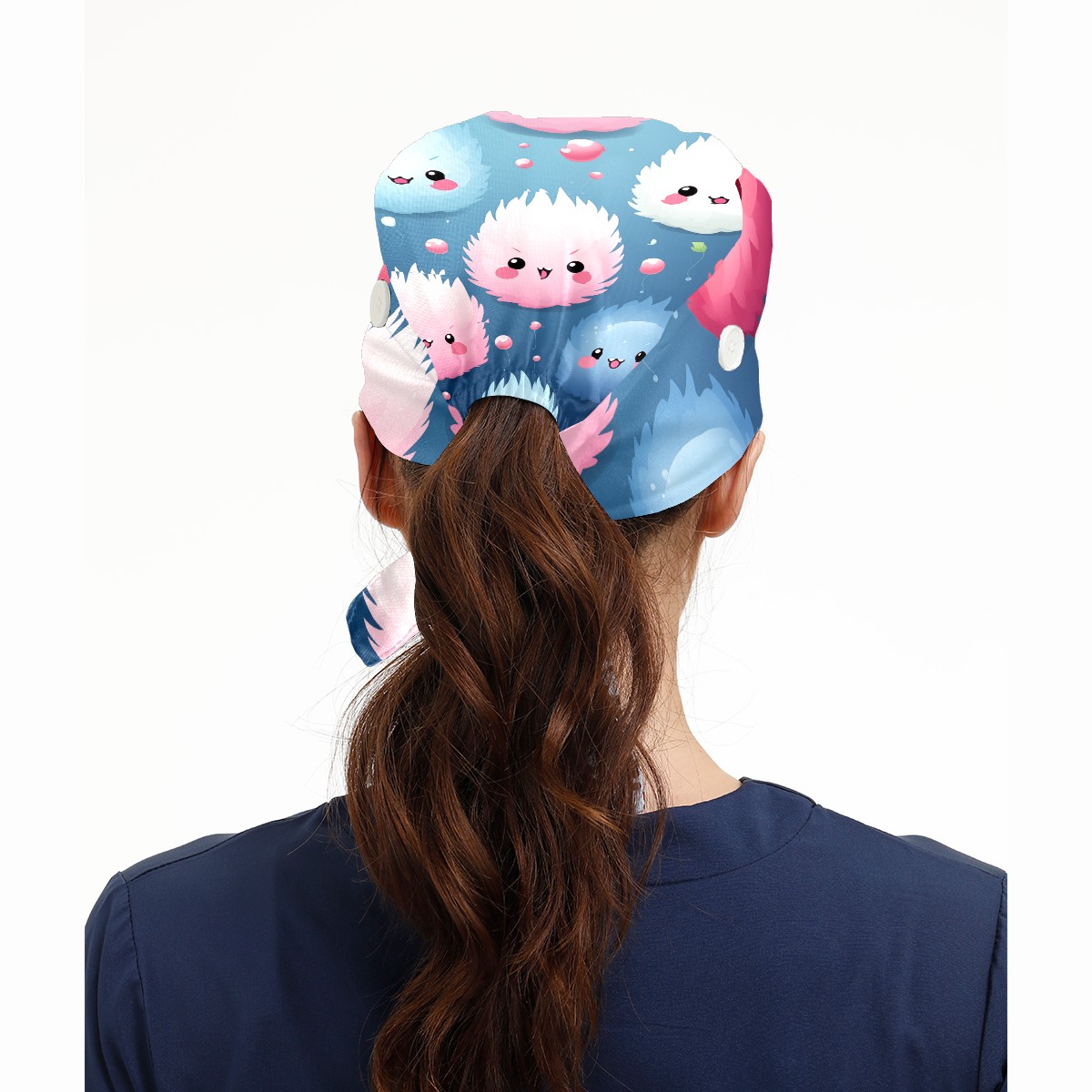 Working Caps with Button & Sweatband Satin Lined Cotton Adjustable Nurse Hats Elastic Band Scrub Cap Surgeon Hat Cute Furballs