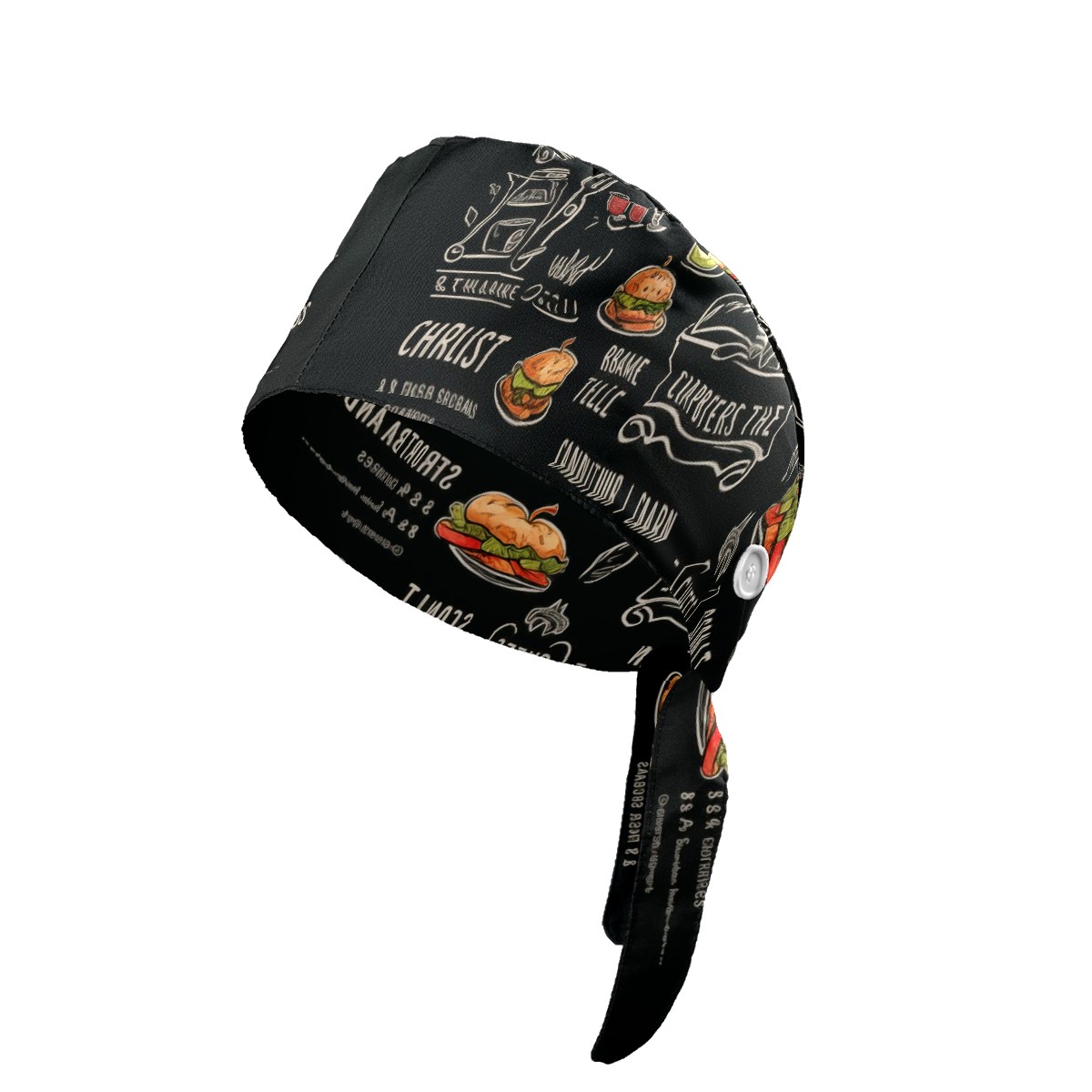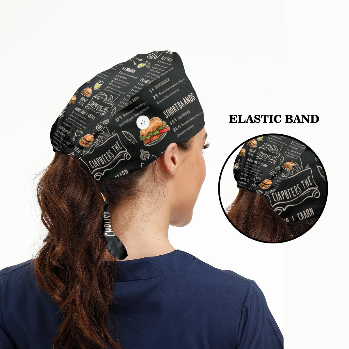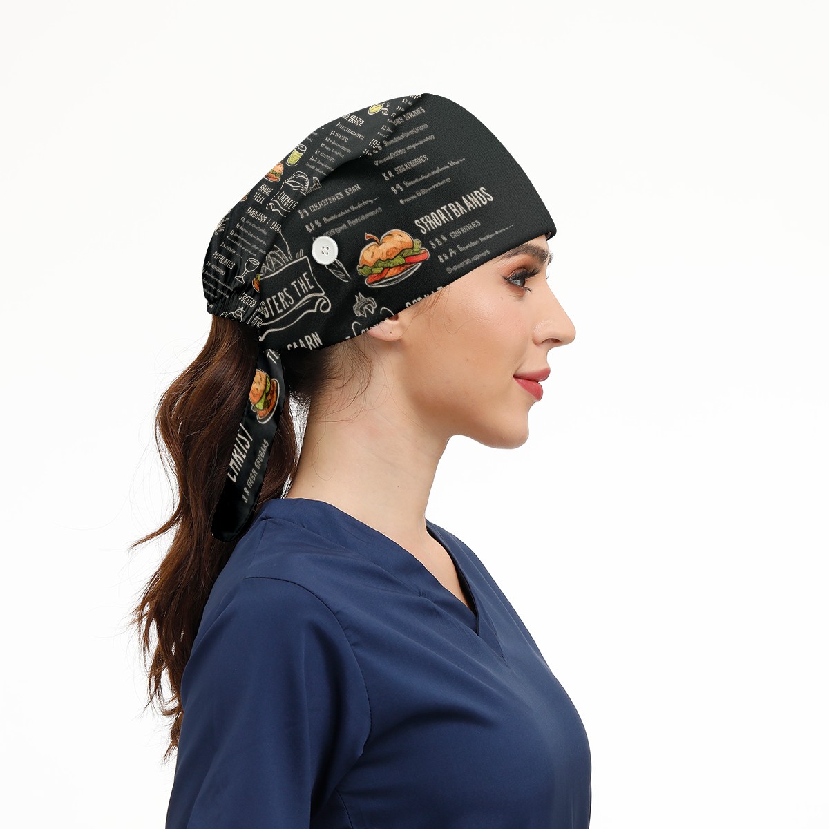 Working Caps with Button & Sweatband Satin Lined Cotton Adjustable Nurse Hats Elastic Band Scrub Cap Surgeon Hat Food Menu