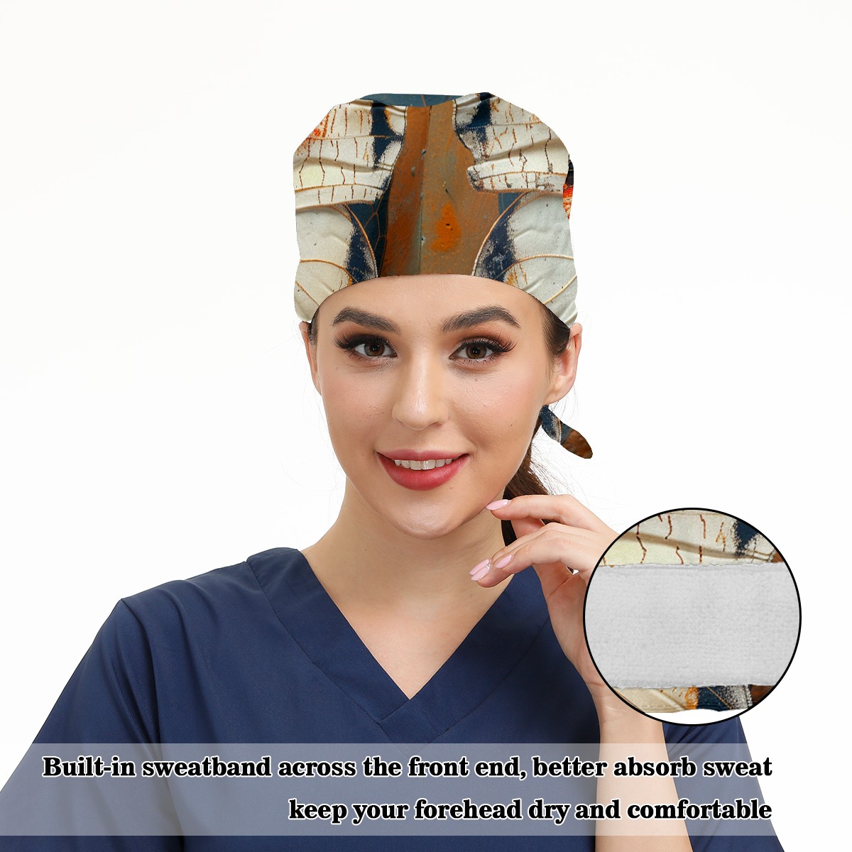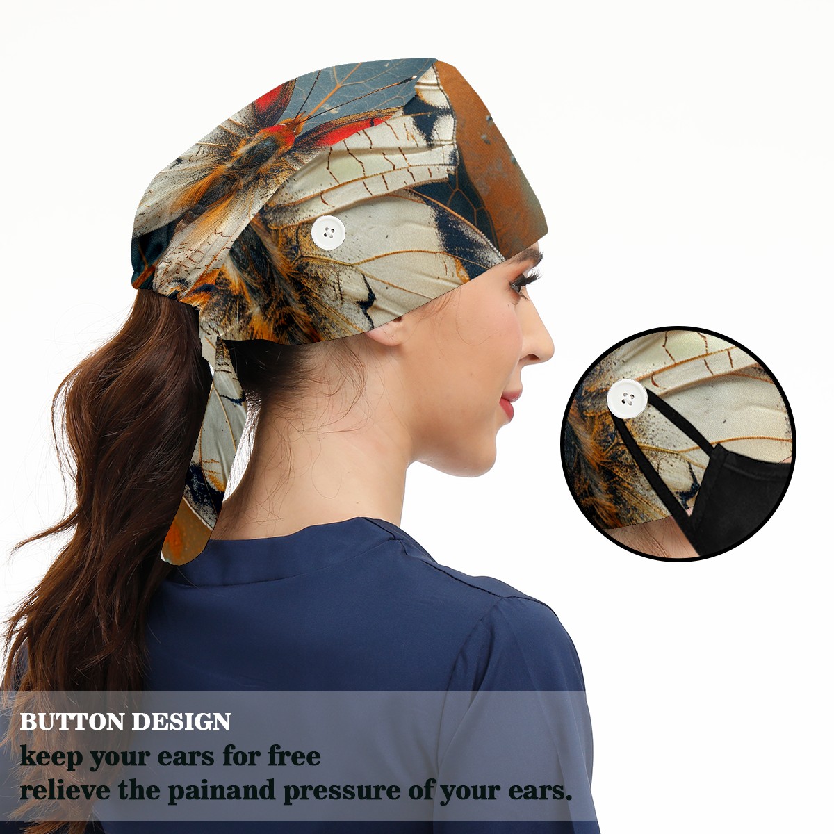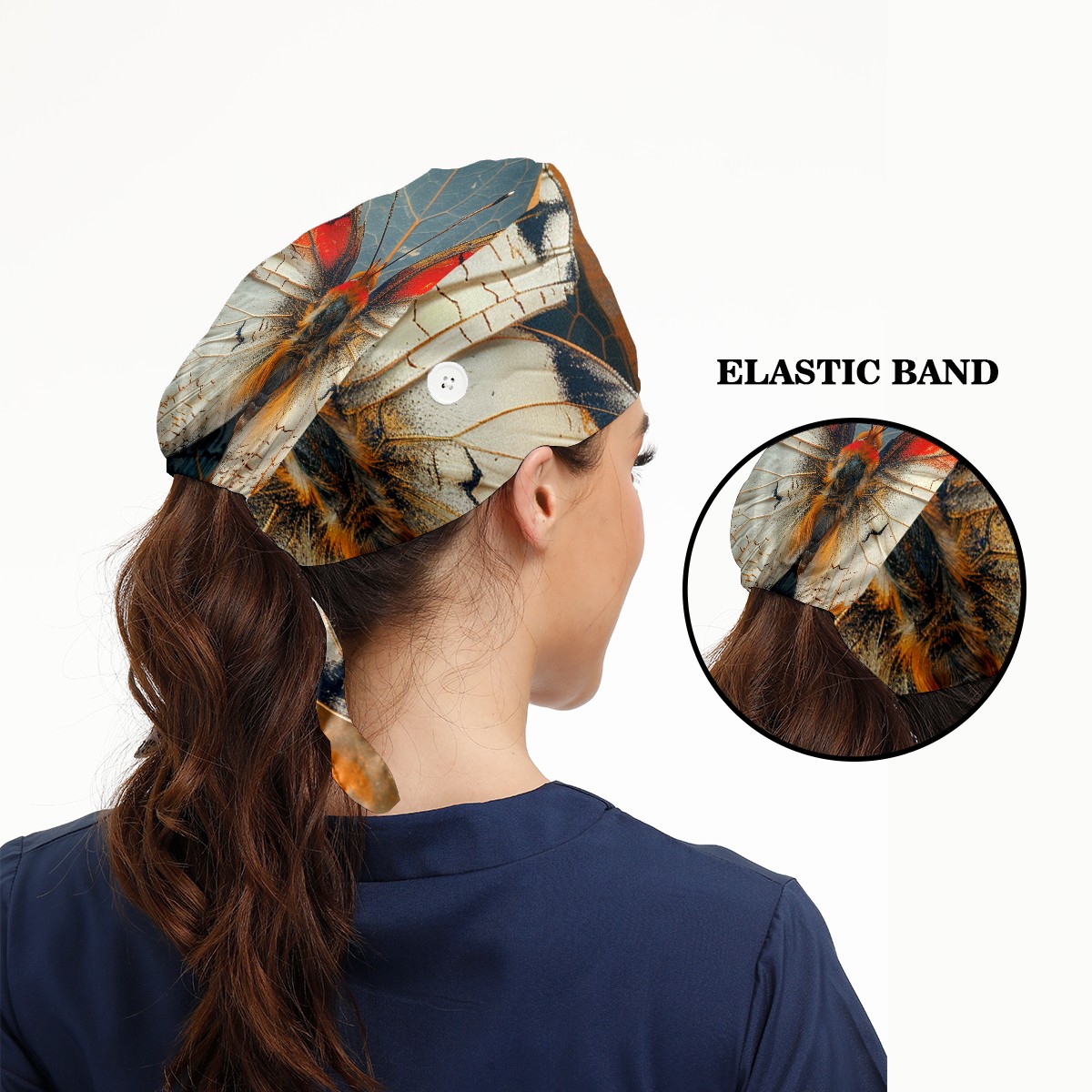 Working Caps with Button & Sweatband Satin Lined Cotton Adjustable Nurse Hats Elastic Band Scrub Cap Surgeon Hat Butterfly