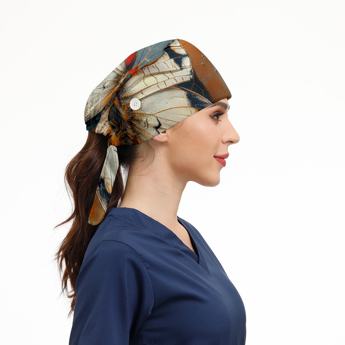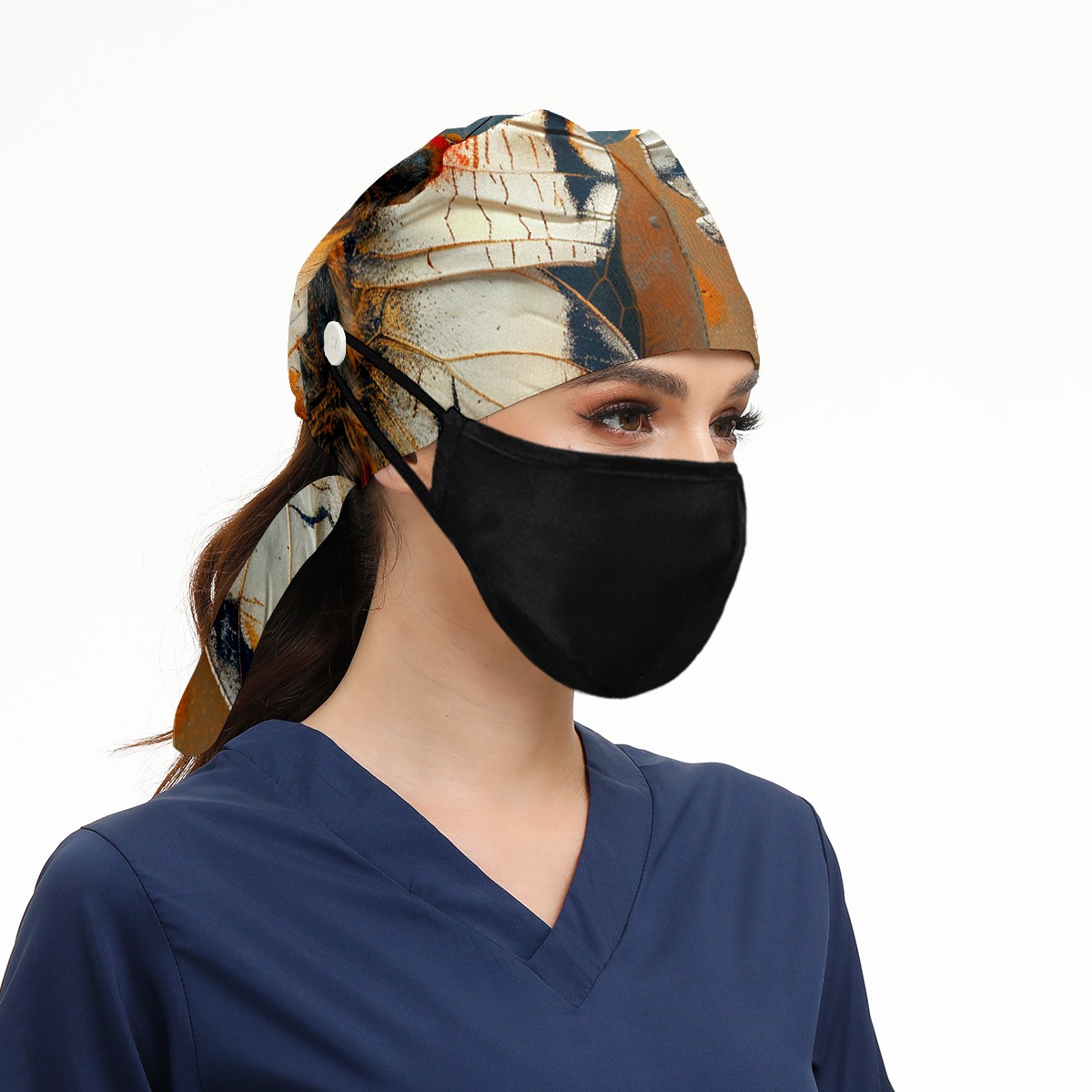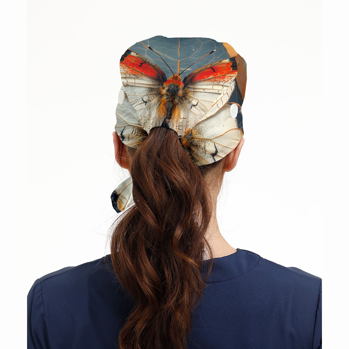Working Caps with Button & Sweatband Satin Lined Cotton Adjustable Nurse Hats Elastic Band Scrub Cap Surgeon Hat Butterfly