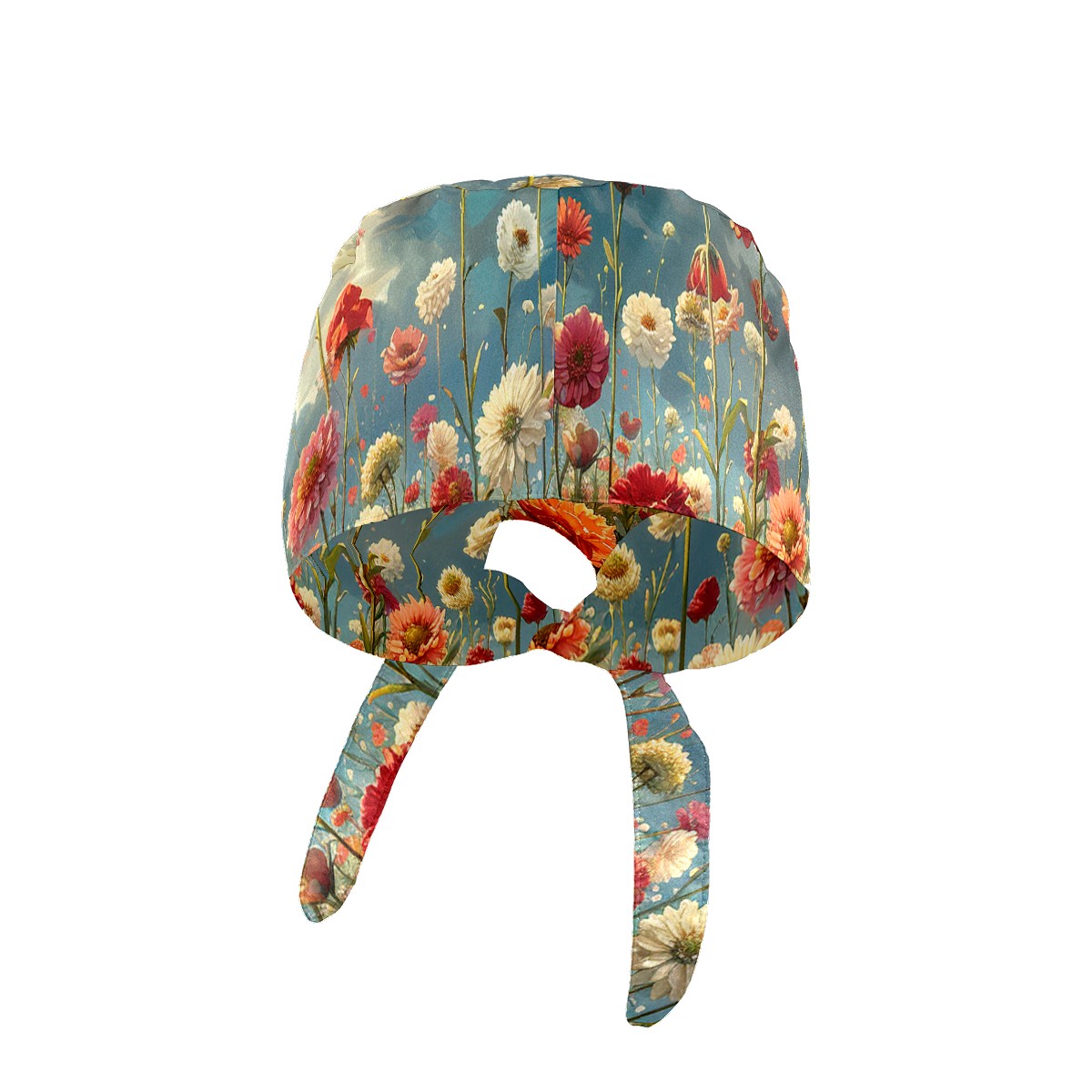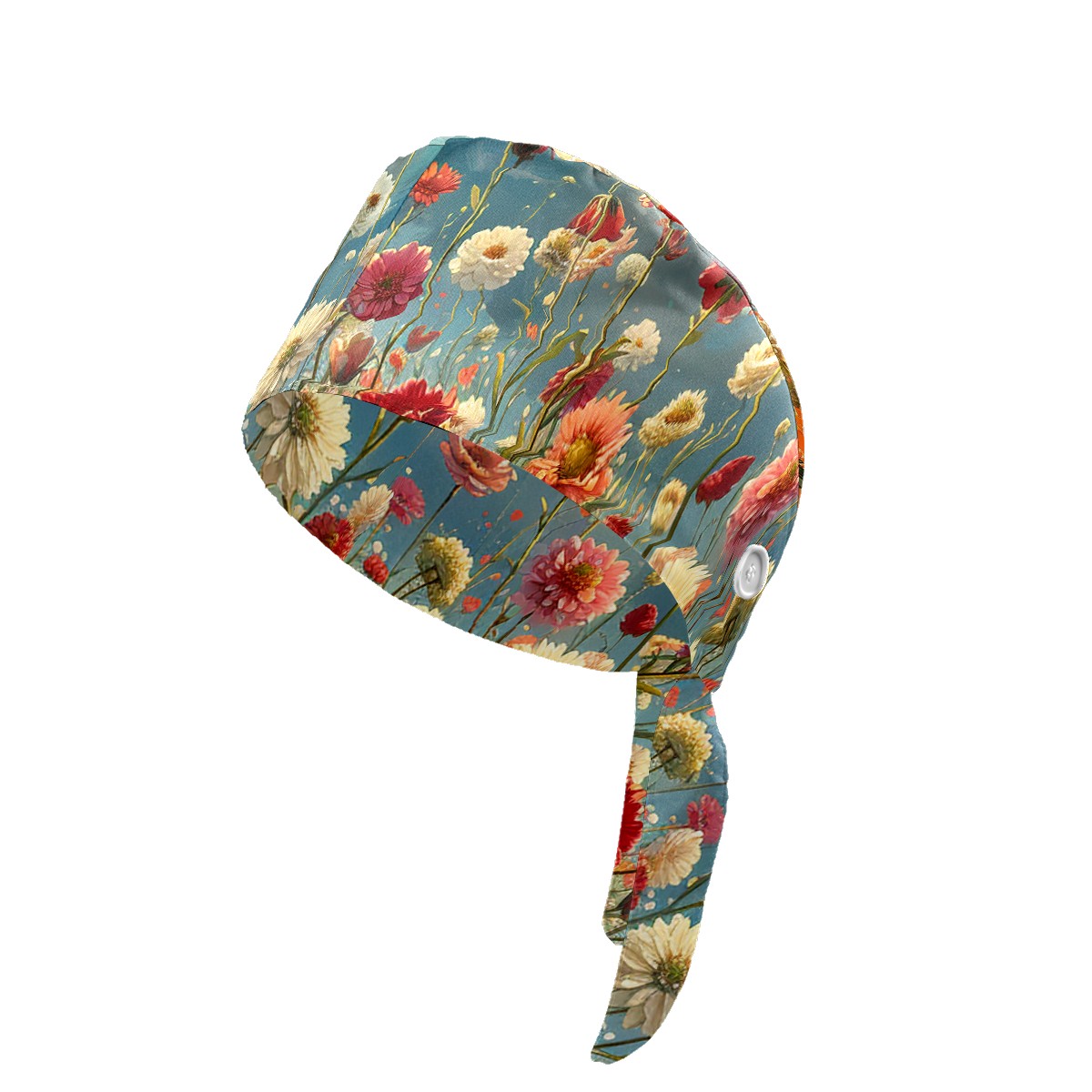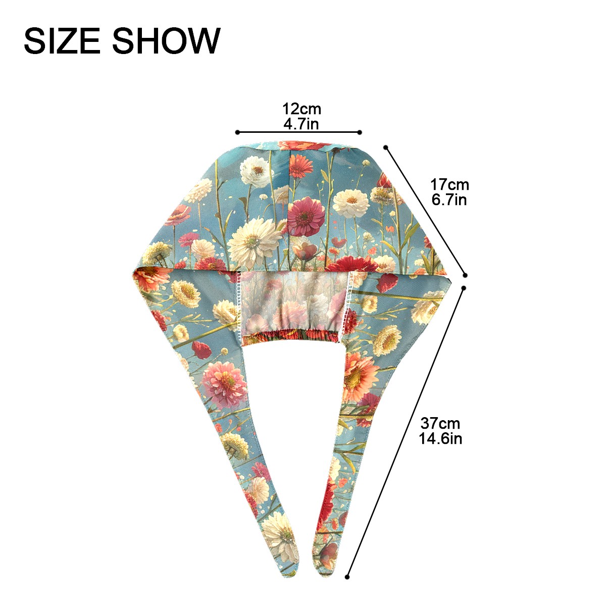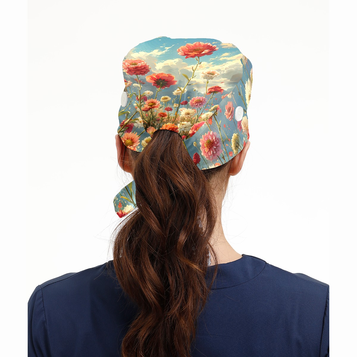 Working Caps with Button & Sweatband Satin Lined Cotton Adjustable Nurse Hats Elastic Band Scrub Cap Surgeon Hat Flower
