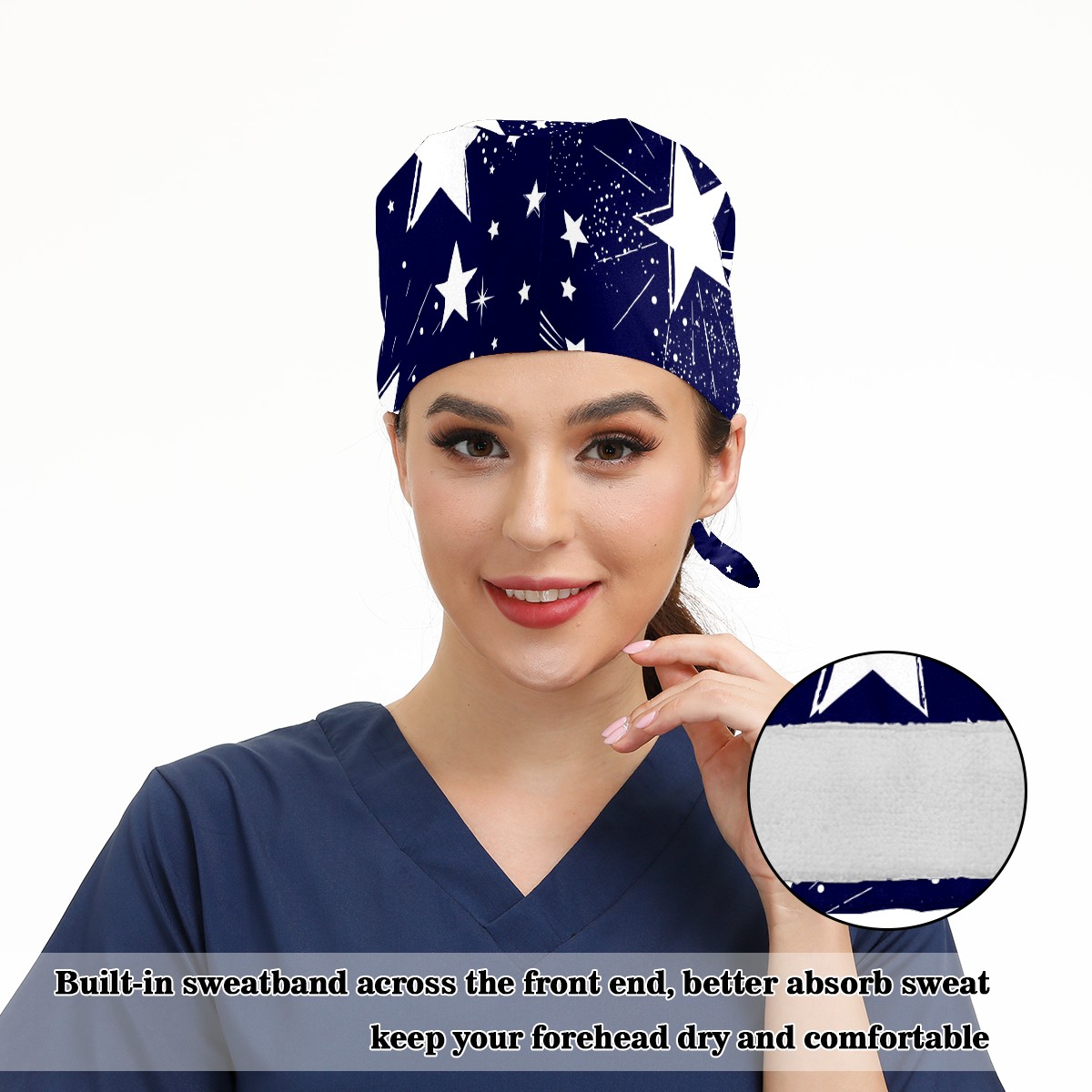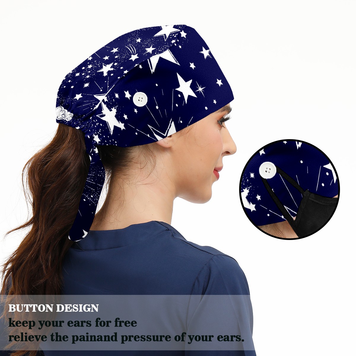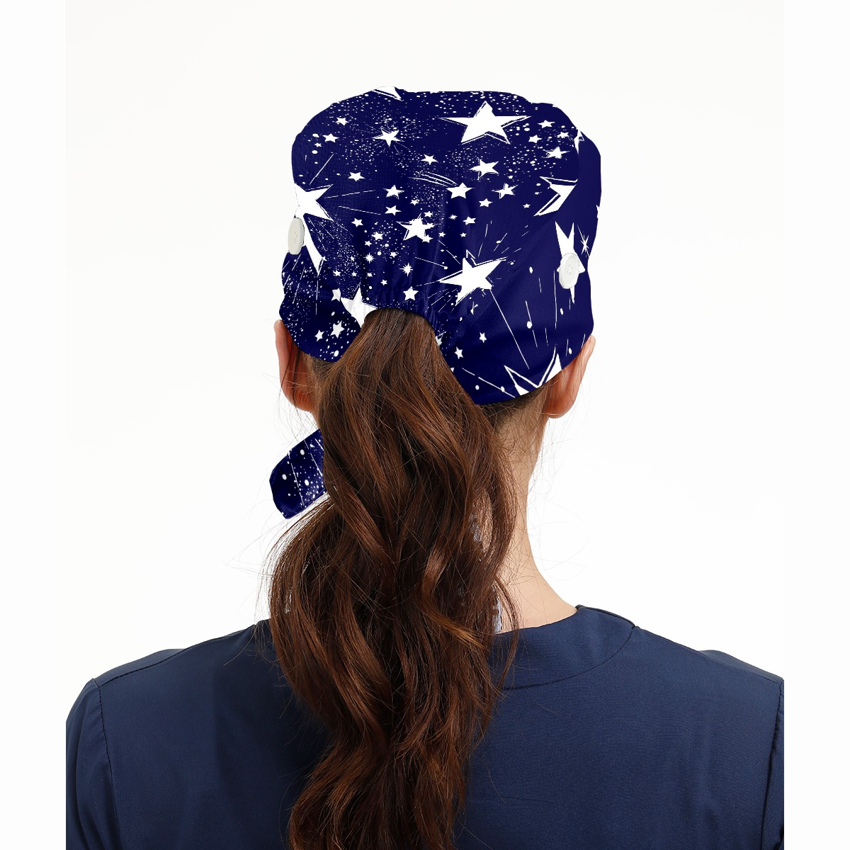 Working Caps with Button & Sweatband Satin Lined Cotton Adjustable Nurse Hats Elastic Band Scrub Cap Surgeon Hat Space Galaxy Constellation