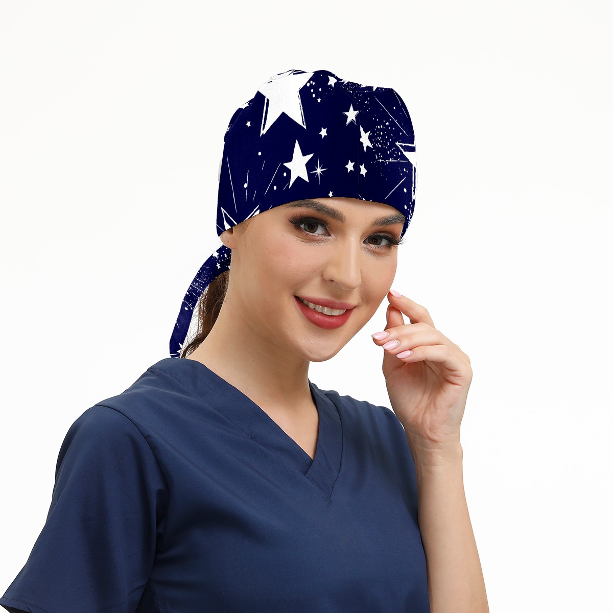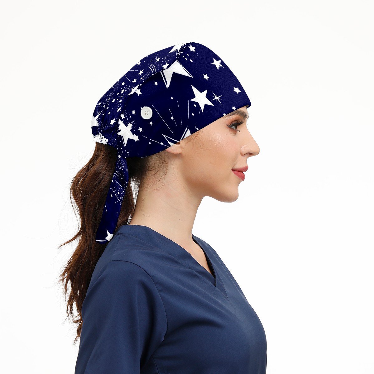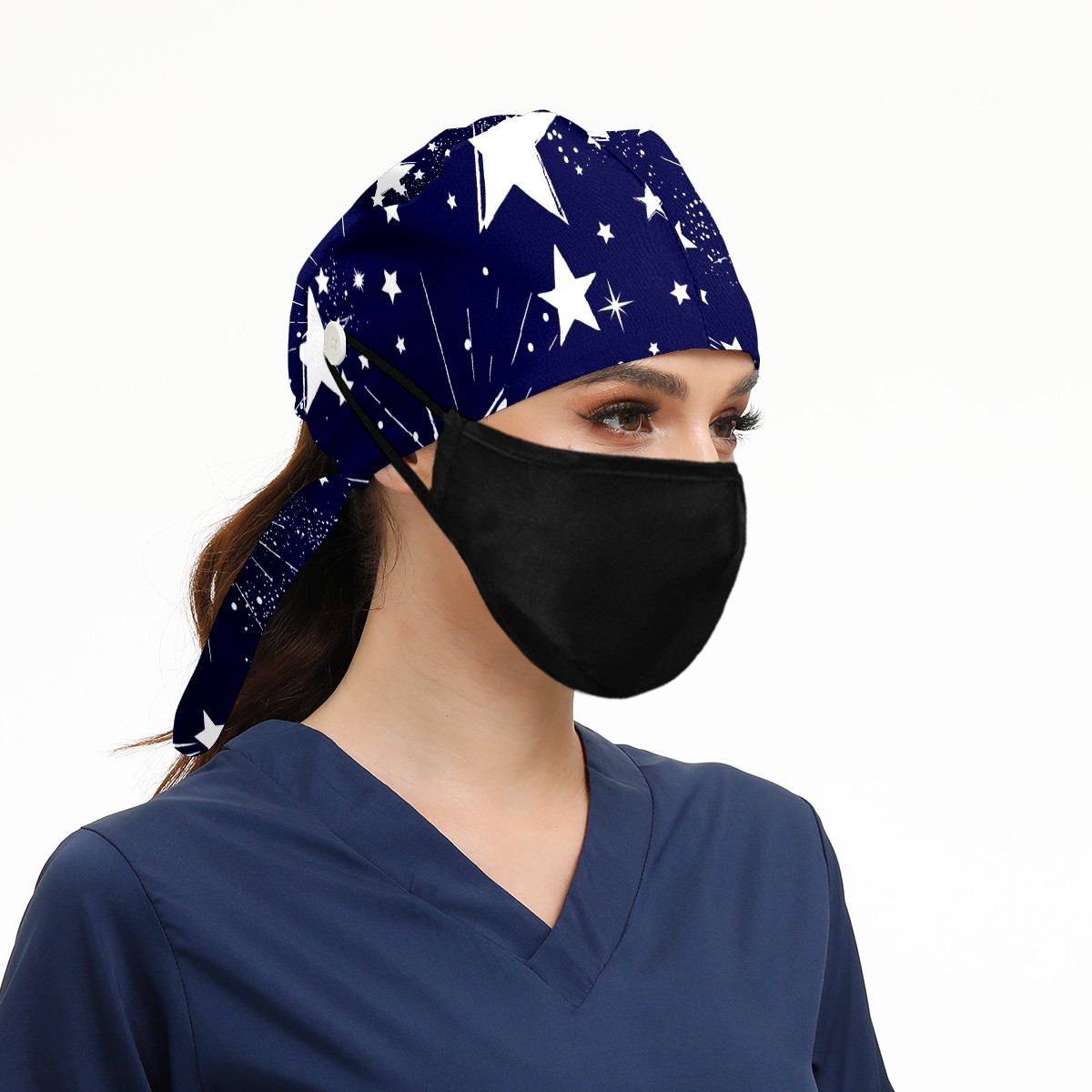 Working Caps with Button & Sweatband Satin Lined Cotton Adjustable Nurse Hats Elastic Band Scrub Cap Surgeon Hat Space Galaxy Constellation