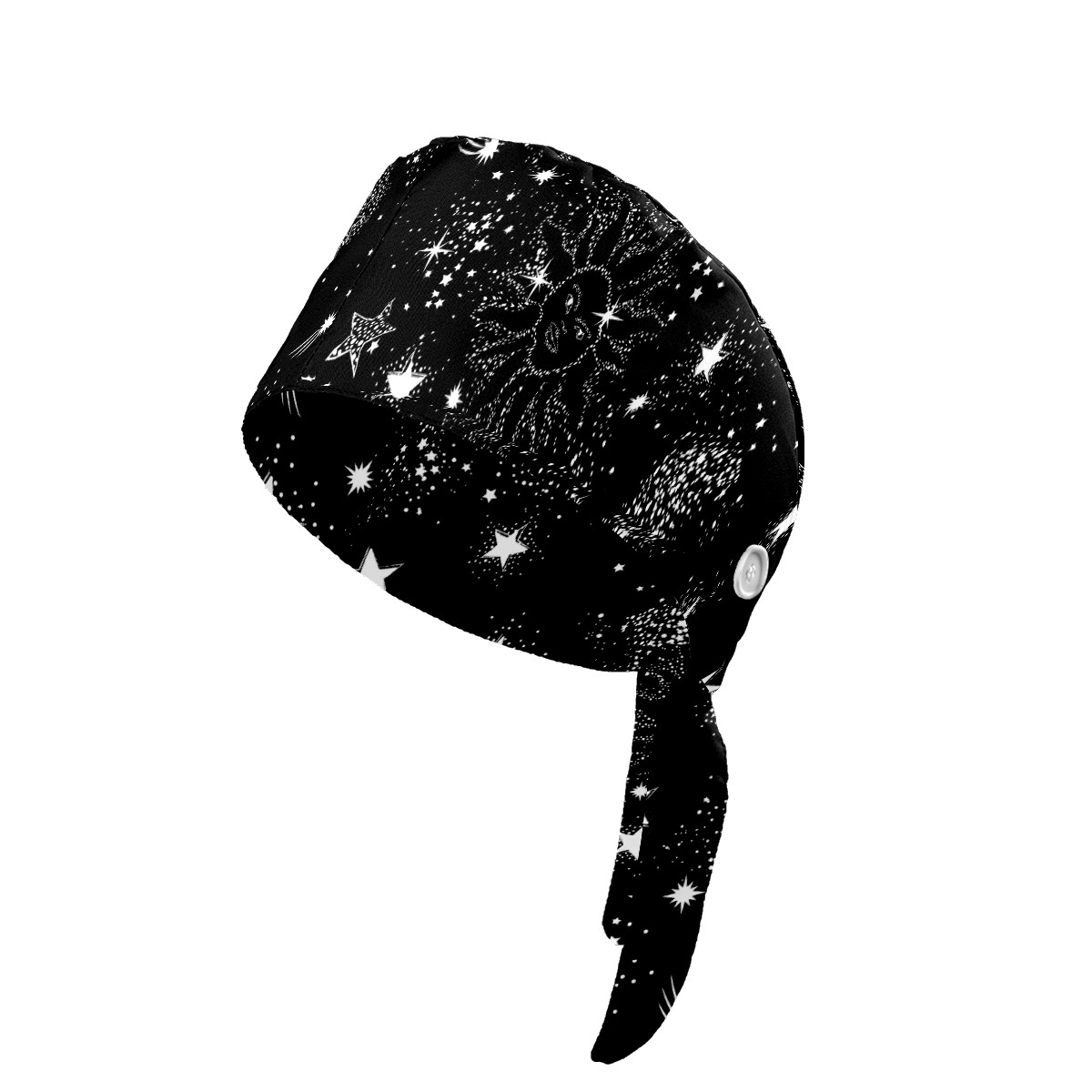Working Caps with Button & Sweatband Satin Lined Cotton Adjustable Nurse Hats Elastic Band Scrub Cap Surgeon Hat Soleil Cosmos Astrology Star