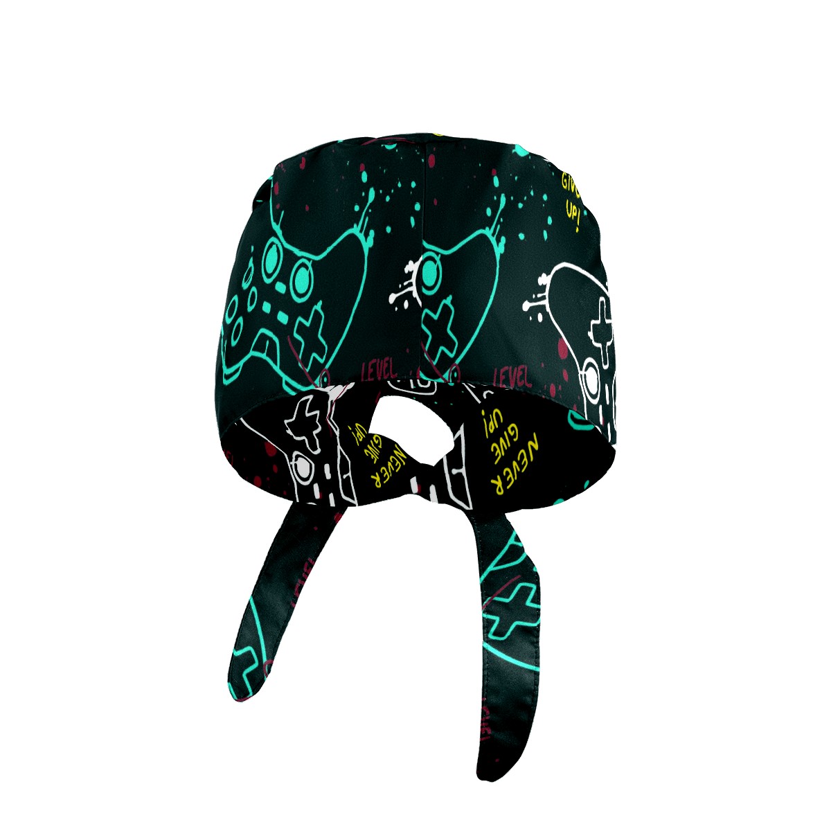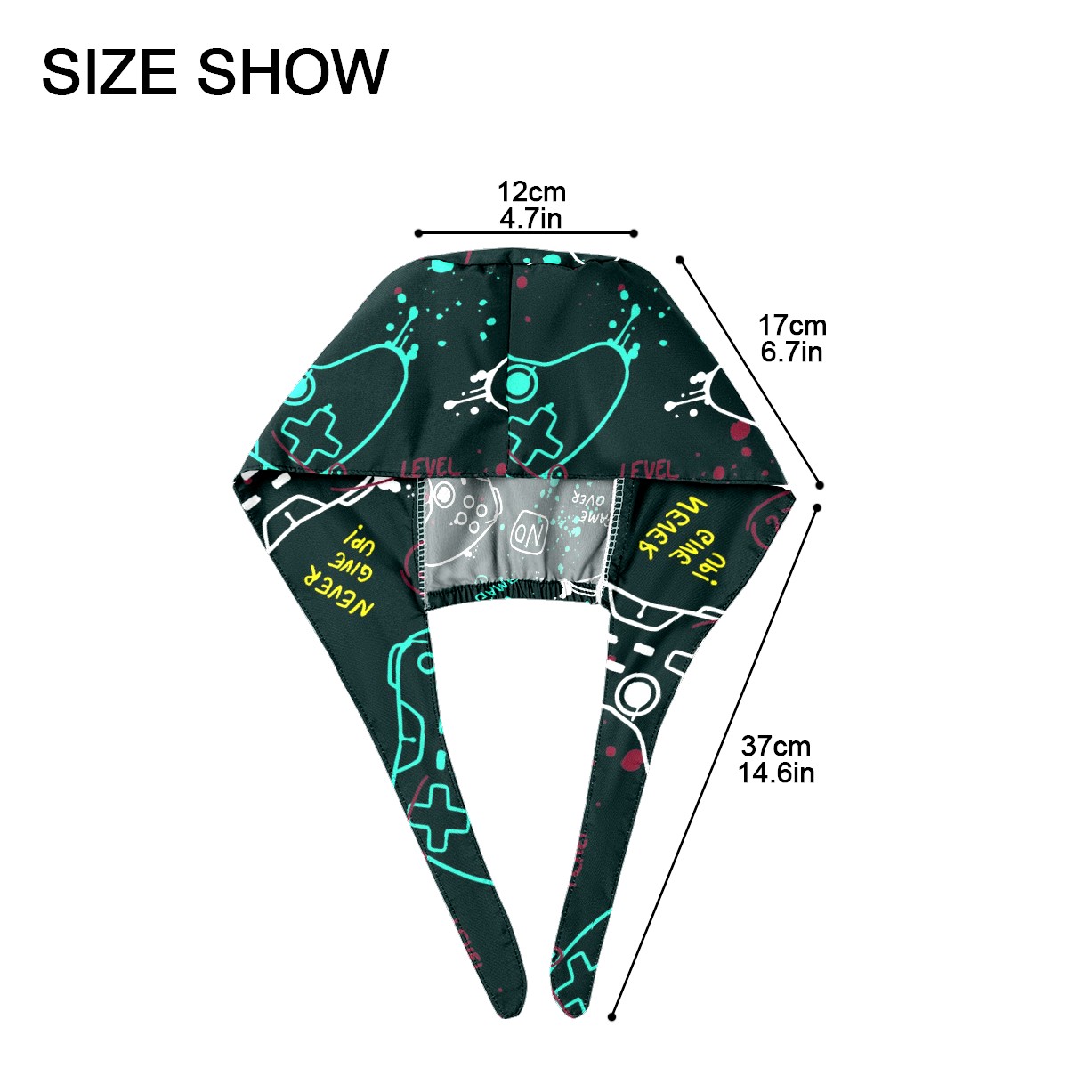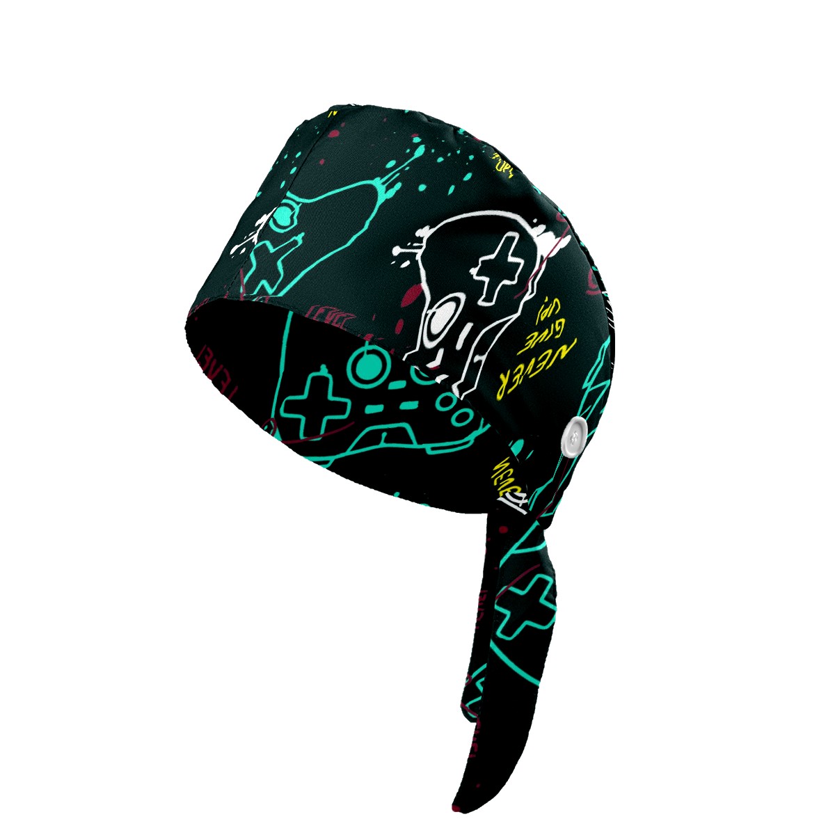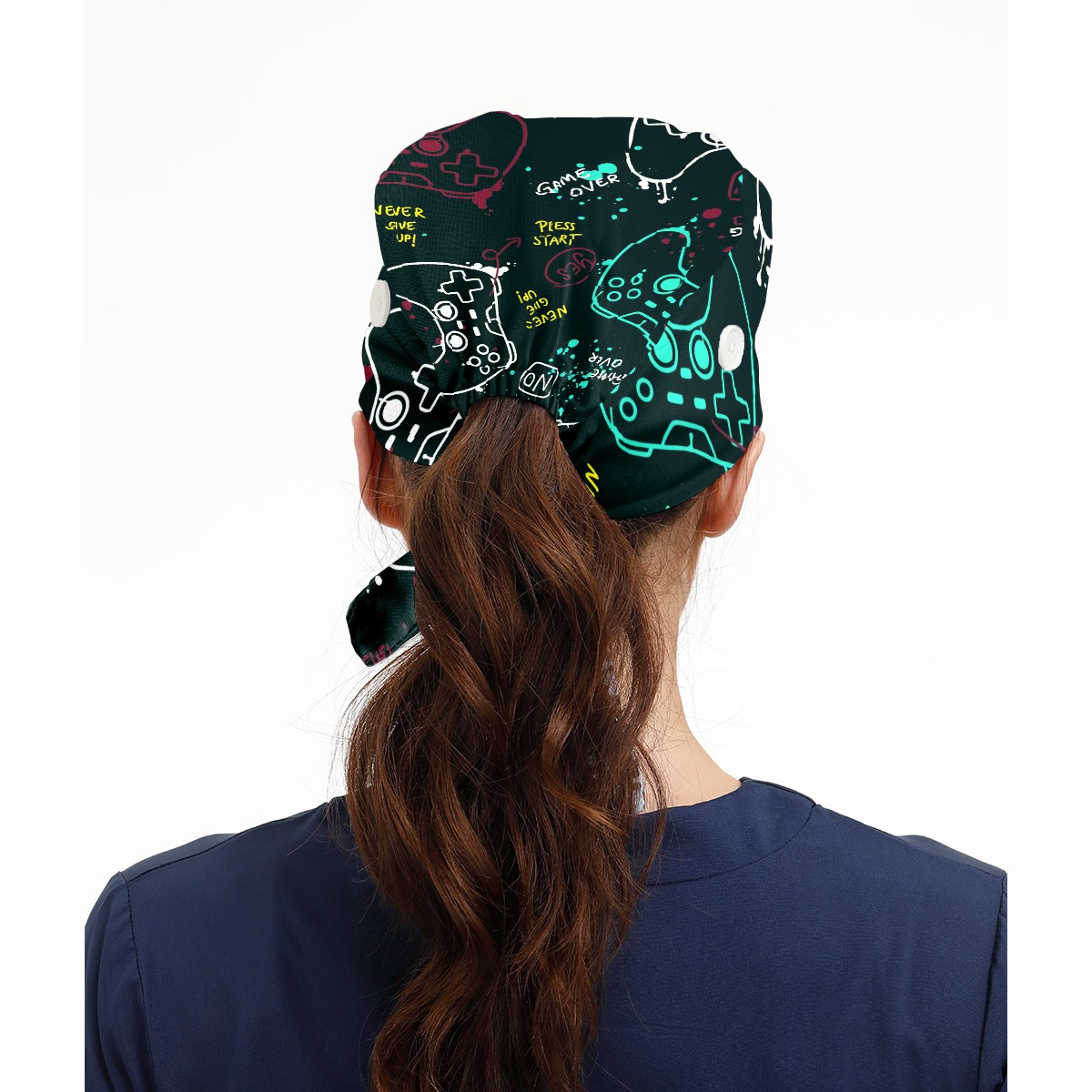 Working Caps with Button & Sweatband Satin Lined Cotton Adjustable Nurse Hats Elastic Band Scrub Cap Surgeon Hat Gamepad Video Game Joystick