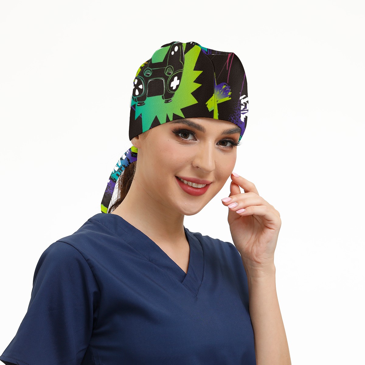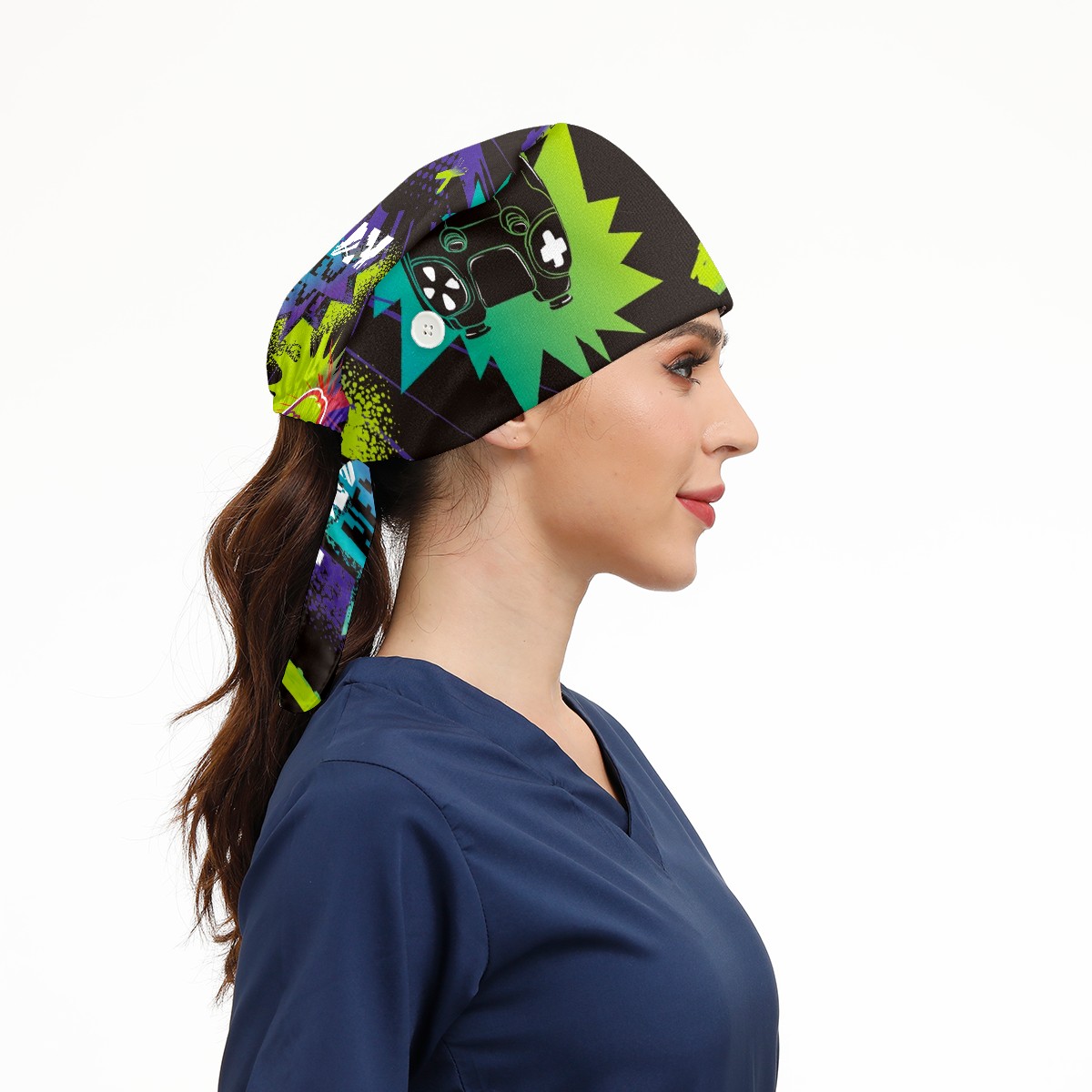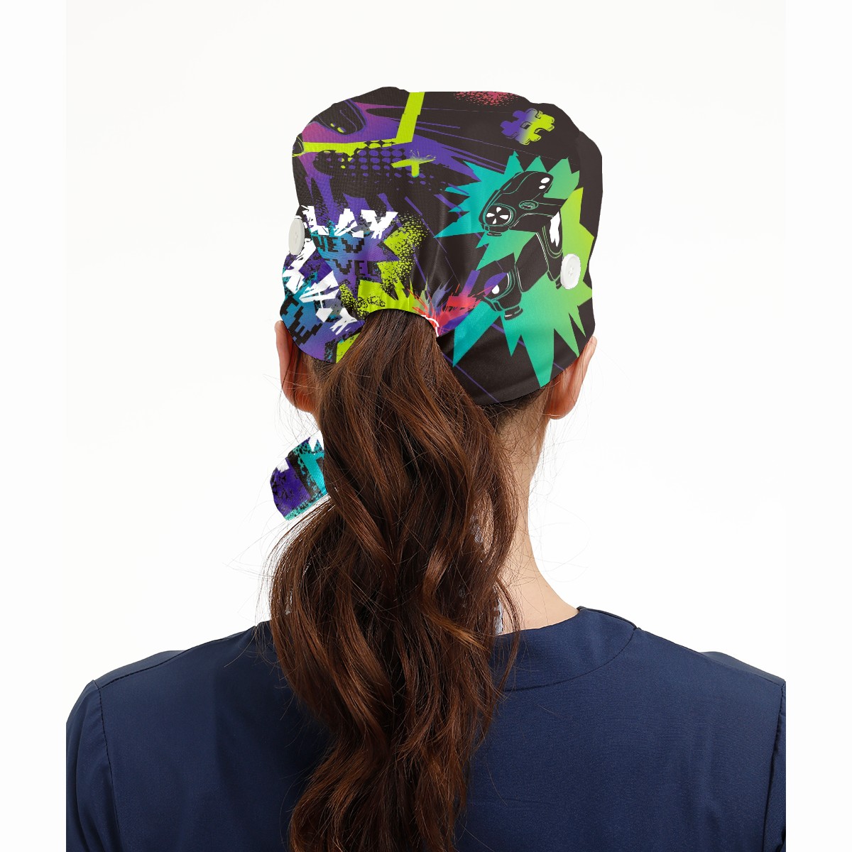 Working Caps with Button & Sweatband Satin Lined Cotton Adjustable Nurse Hats Elastic Band Scrub Cap Surgeon Hat Gamepad Game Joystick