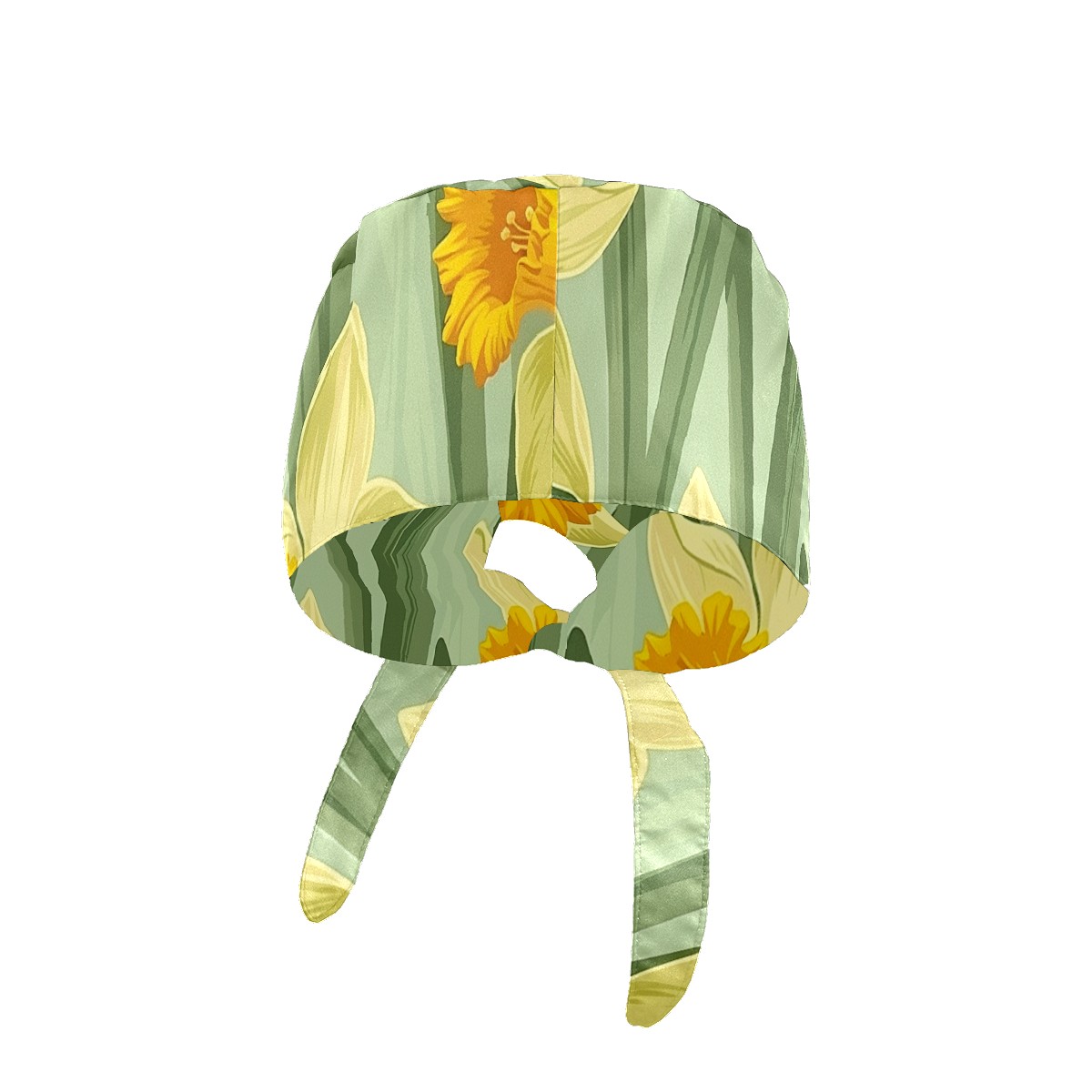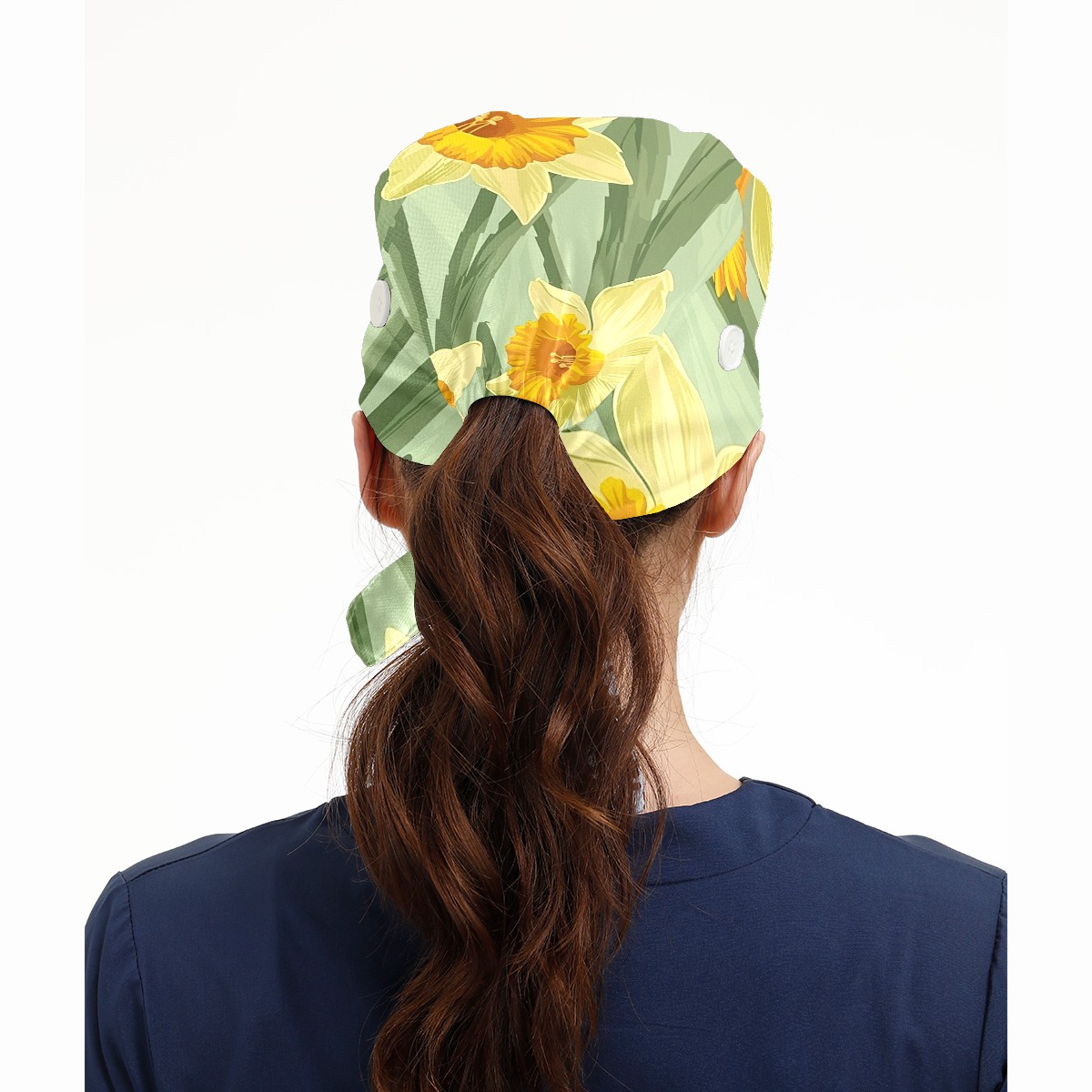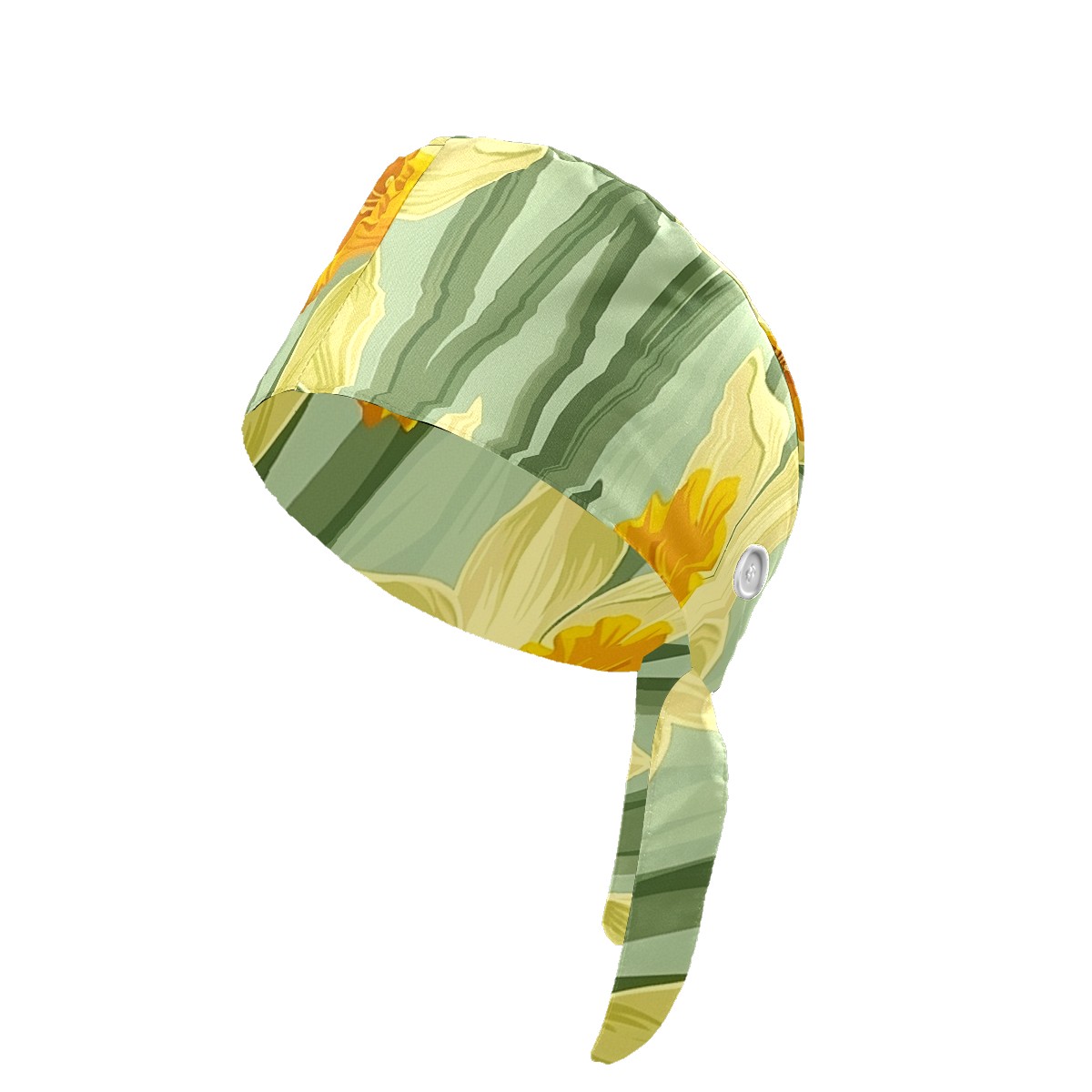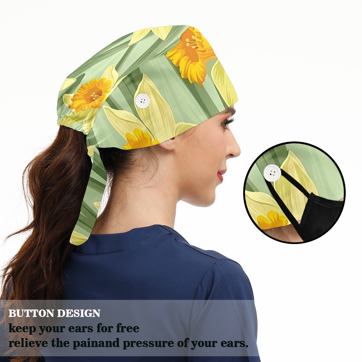 Working Caps with Button & Sweatband Satin Lined Cotton Adjustable Nurse Hats Elastic Band Scrub Cap Surgeon Hat Flower