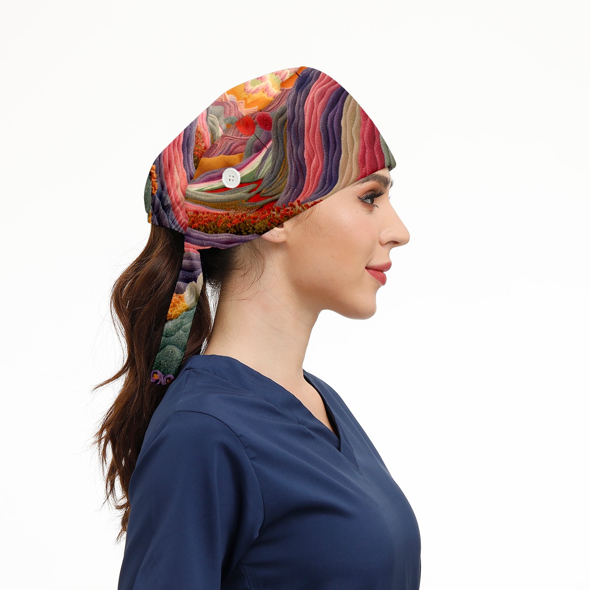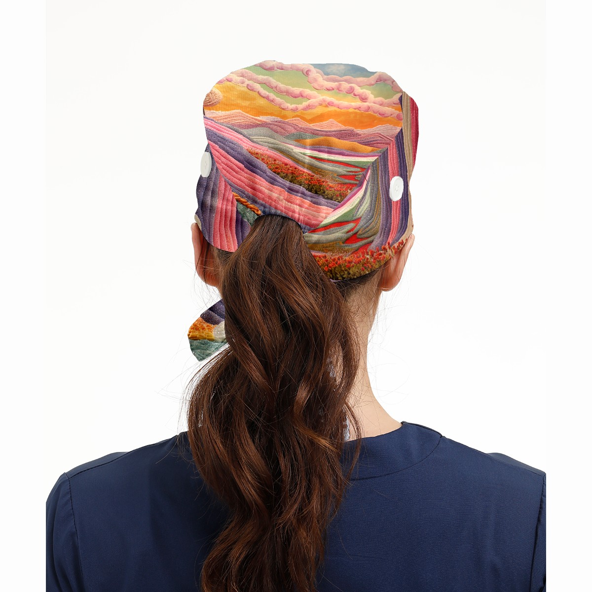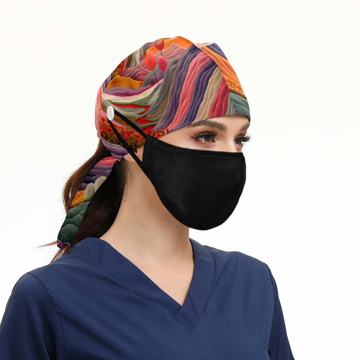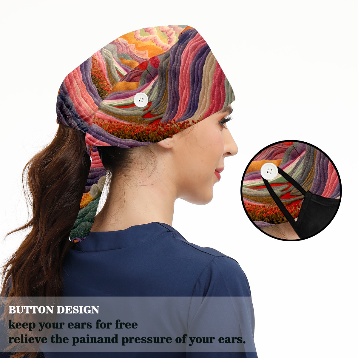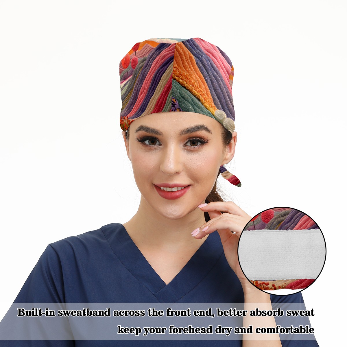 Working Caps with Button & Sweatband Satin Lined Cotton Adjustable Nurse Hats Elastic Band Scrub Cap Surgeon Hat Colour