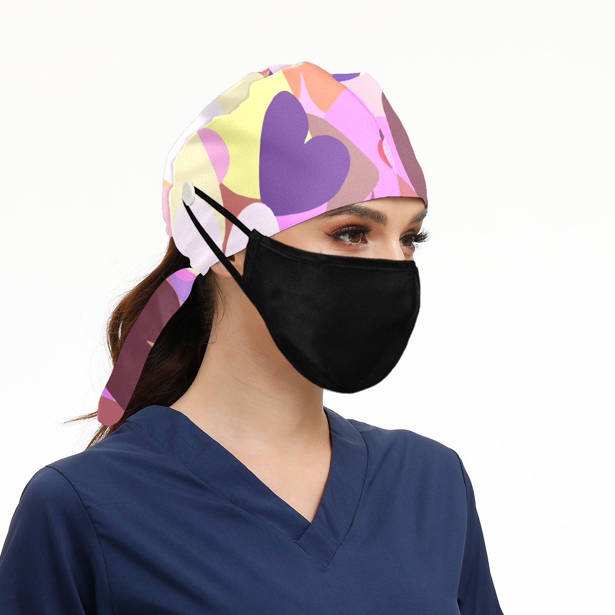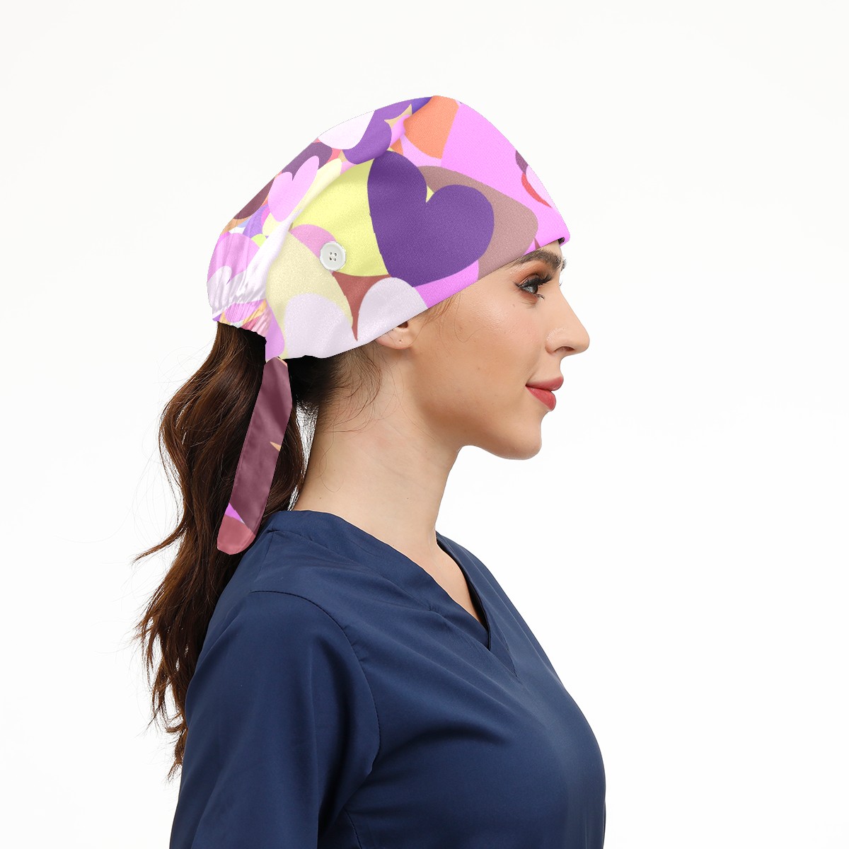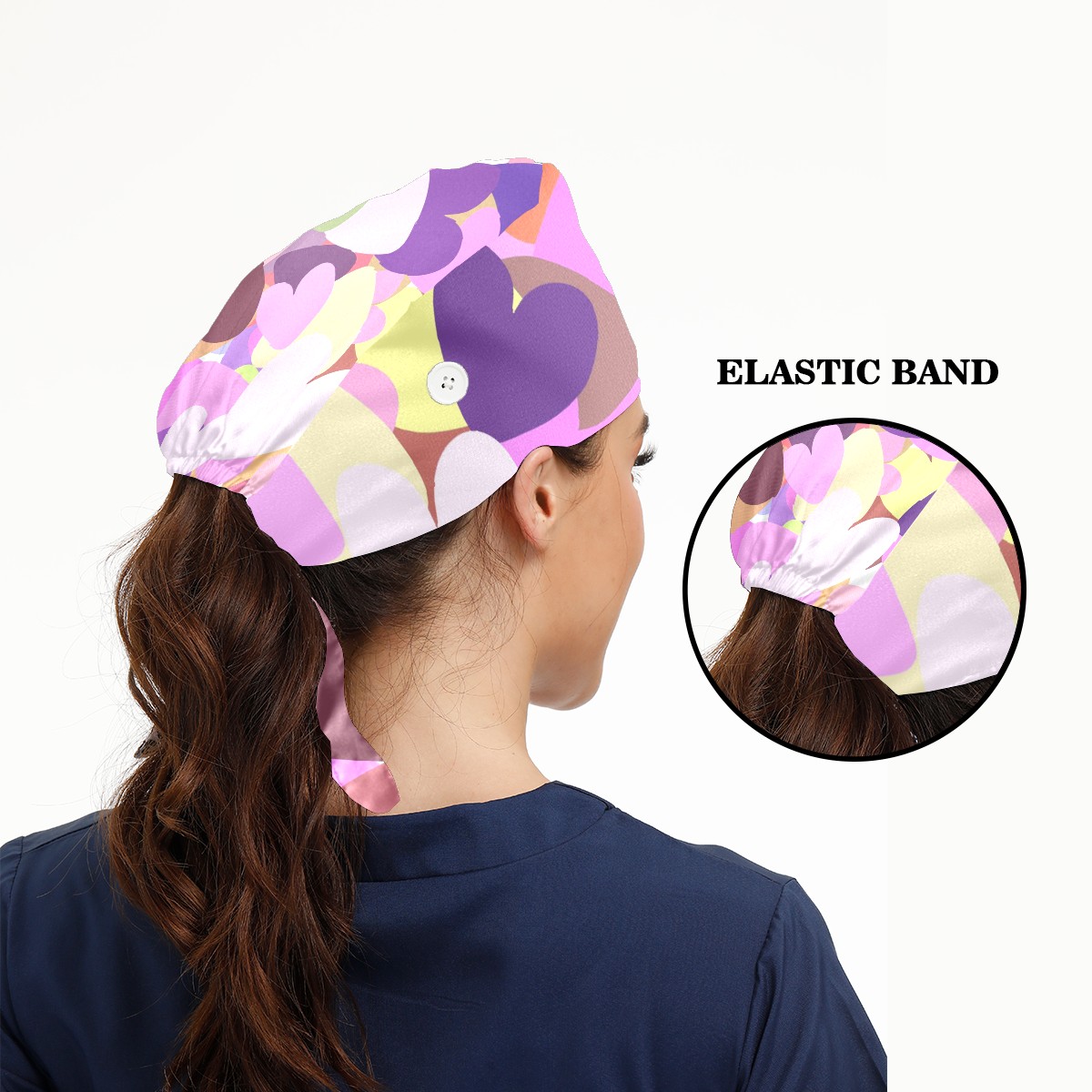 Working Caps with Button & Sweatband Satin Lined Cotton Adjustable Nurse Hats Elastic Band Scrub Cap Surgeon Hat Heart 2