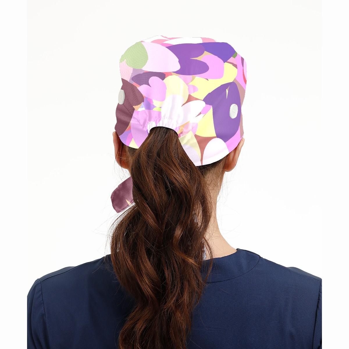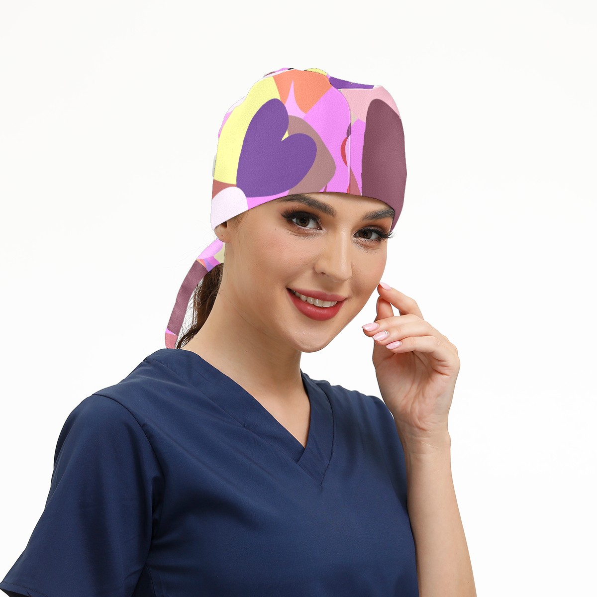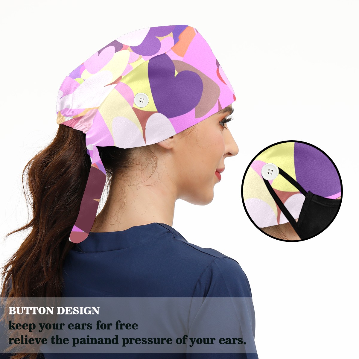 Working Caps with Button & Sweatband Satin Lined Cotton Adjustable Nurse Hats Elastic Band Scrub Cap Surgeon Hat Heart 2