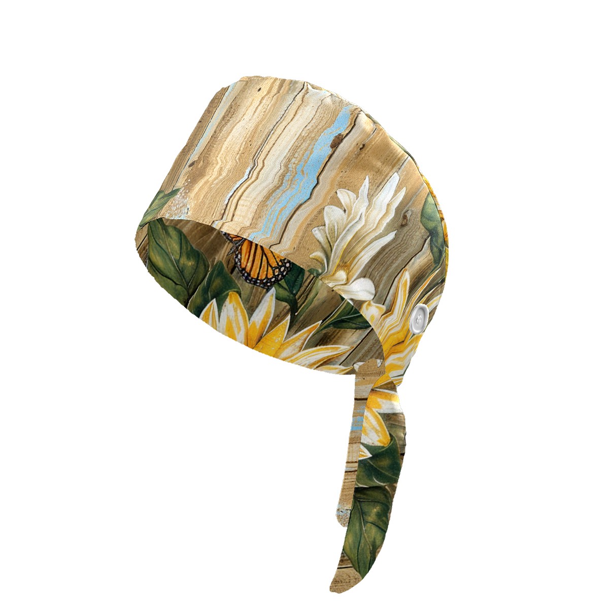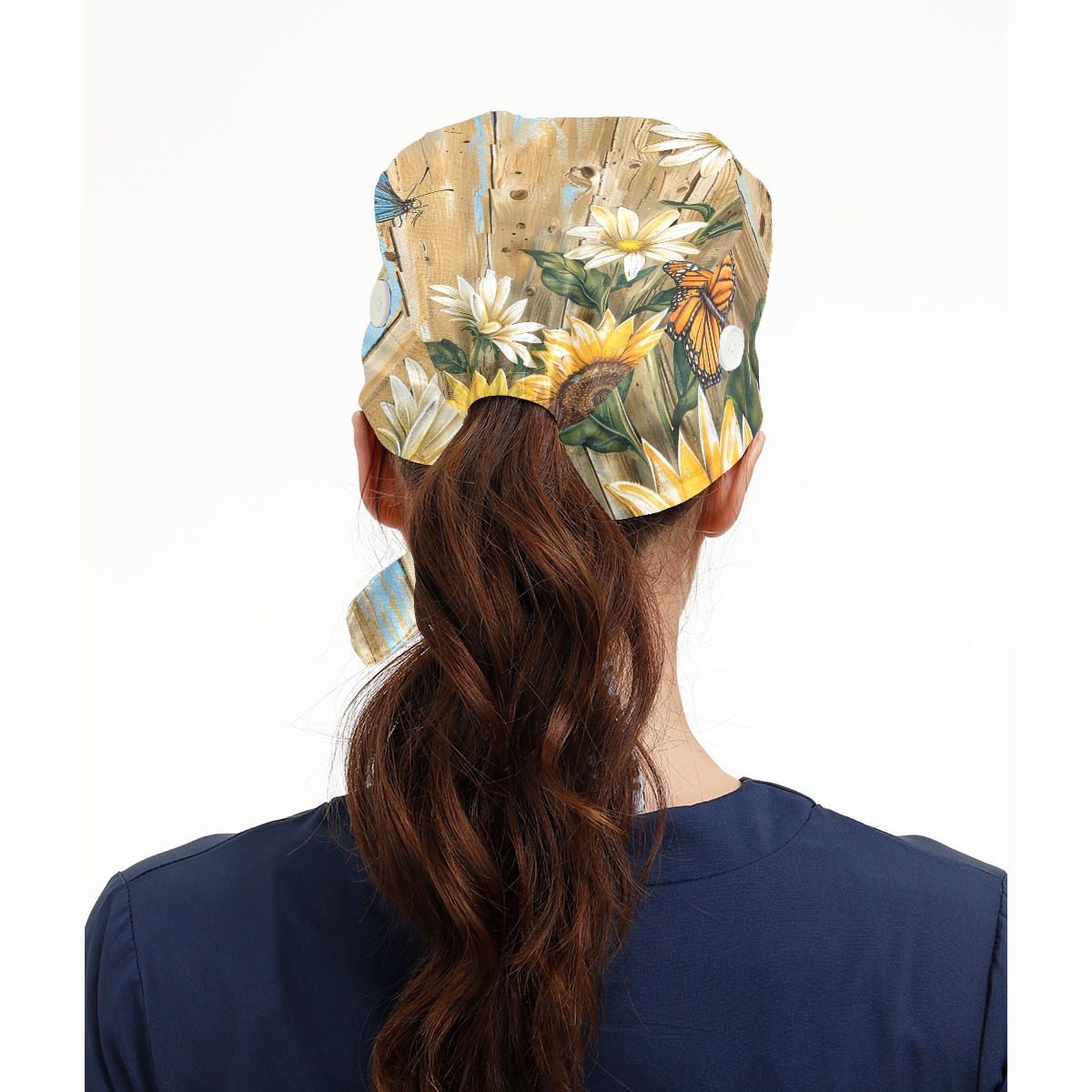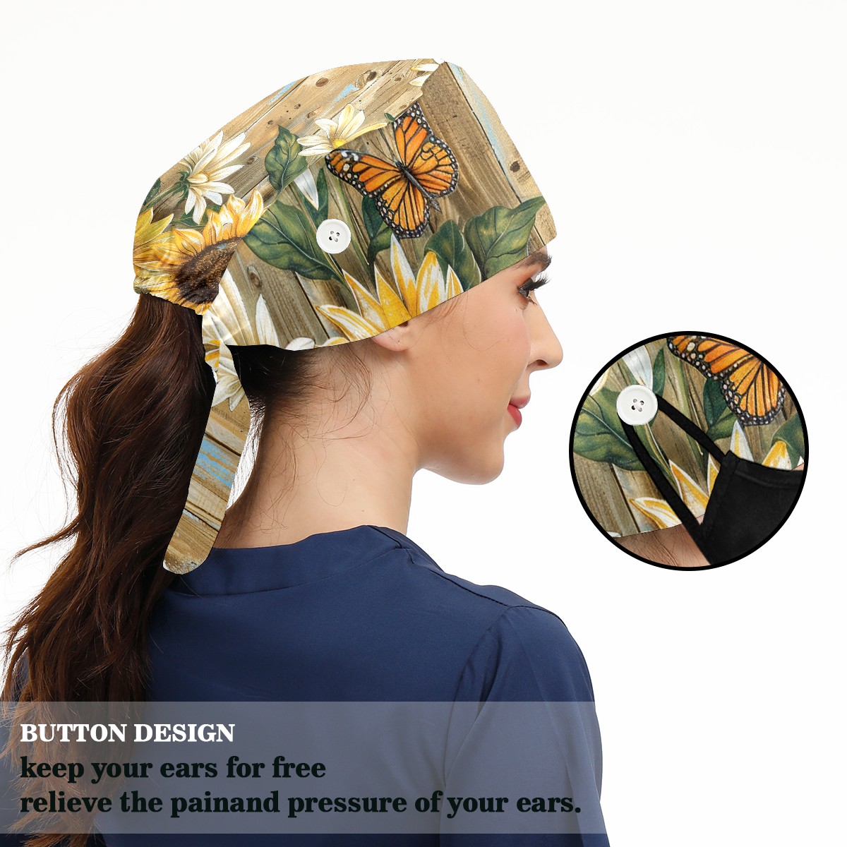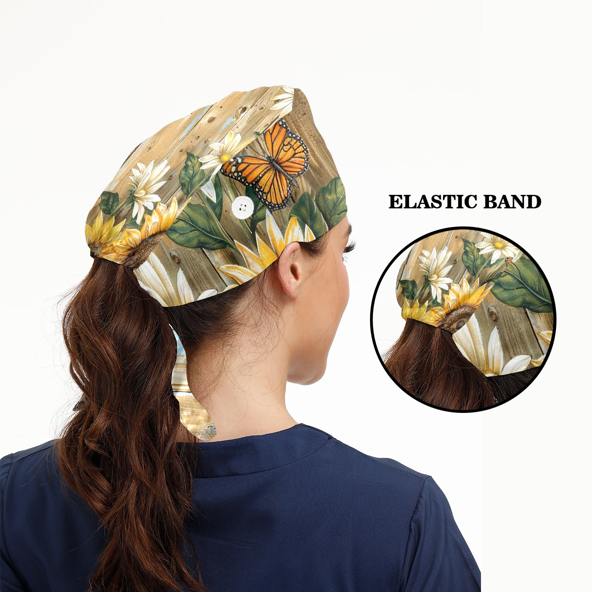 Working Caps with Button & Sweatband Satin Lined Cotton Adjustable Nurse Hats Elastic Band Scrub Cap Surgeon Hat Daisy