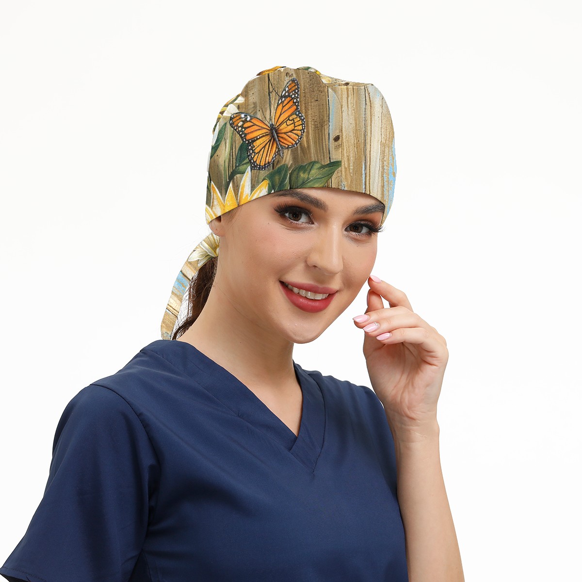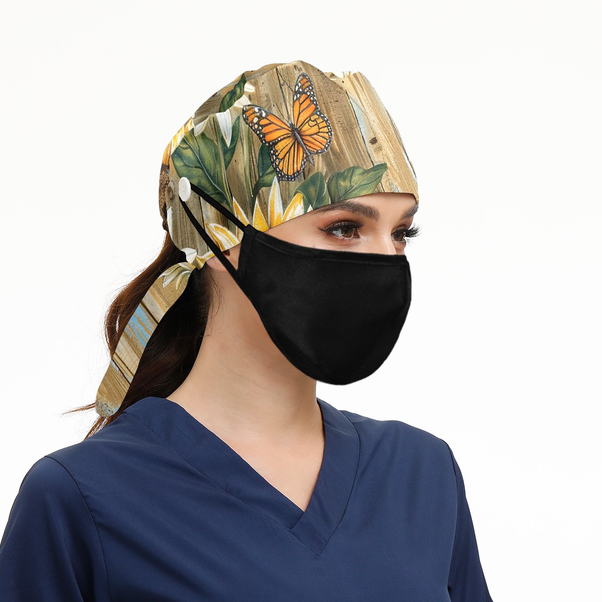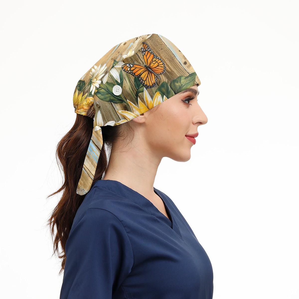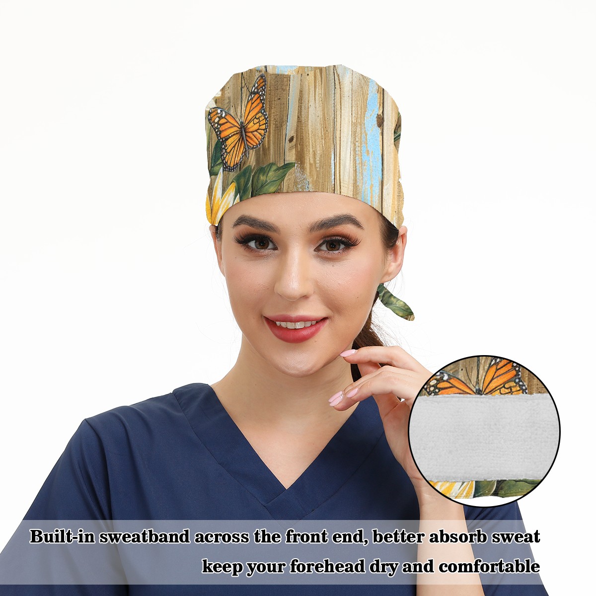 Working Caps with Button & Sweatband Satin Lined Cotton Adjustable Nurse Hats Elastic Band Scrub Cap Surgeon Hat Daisy
