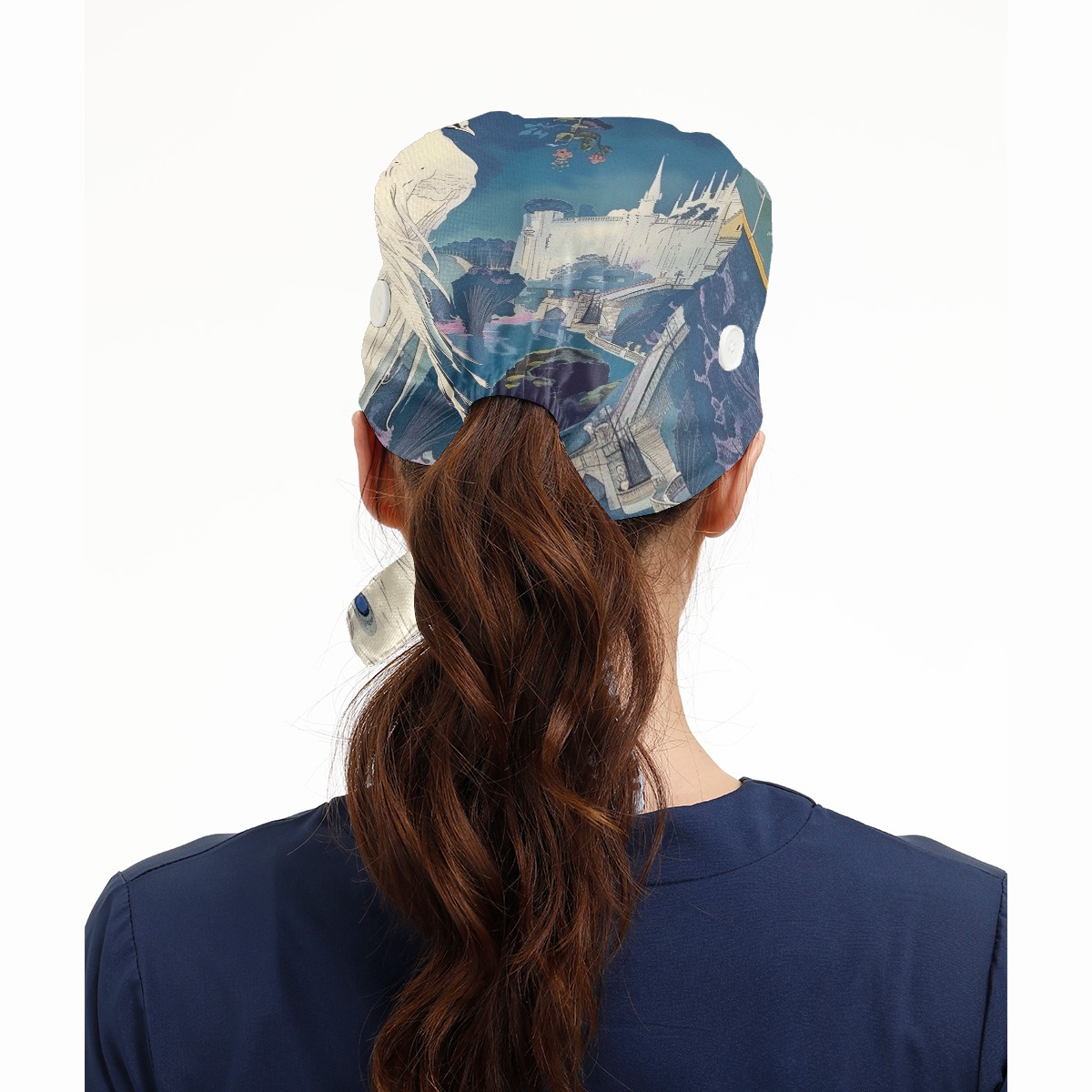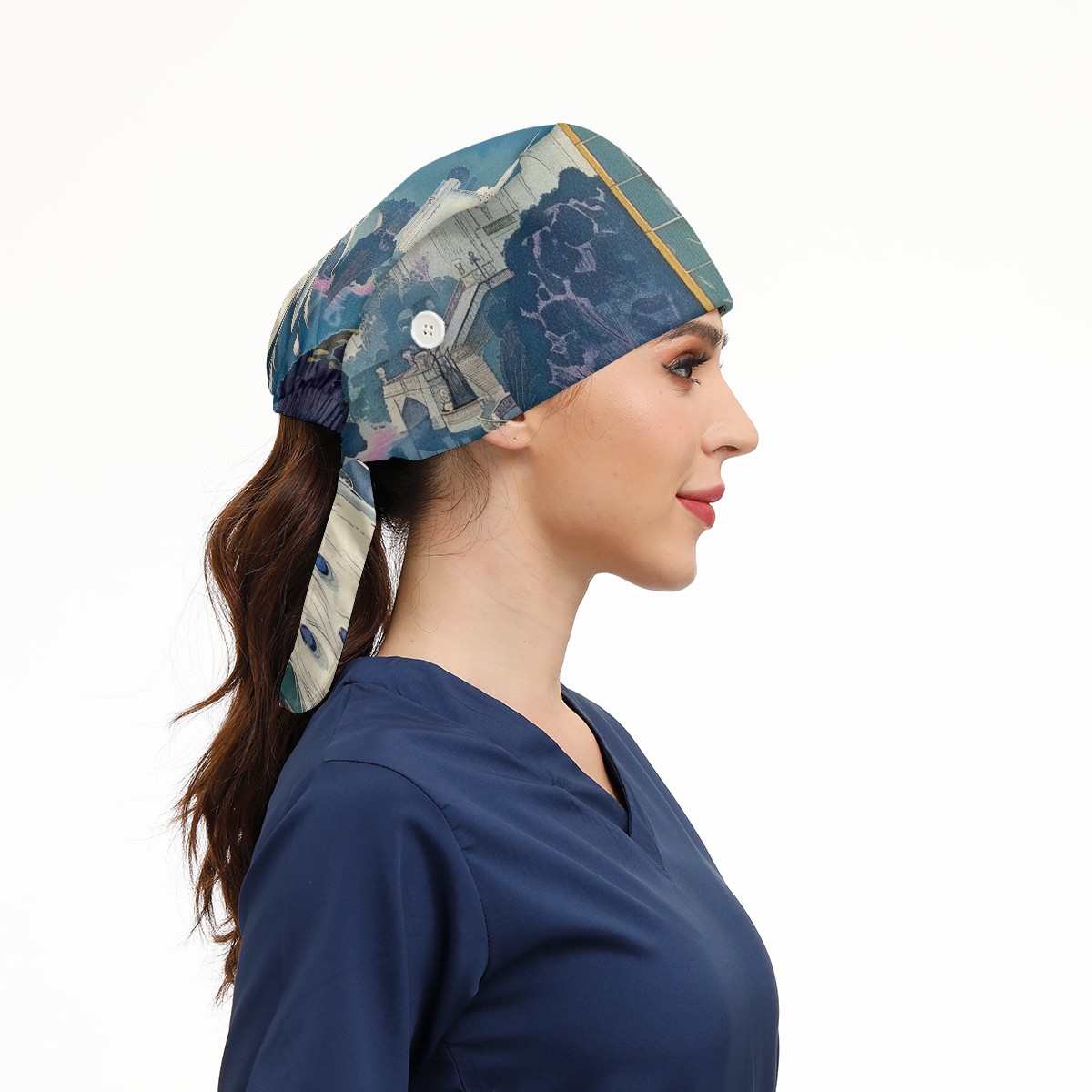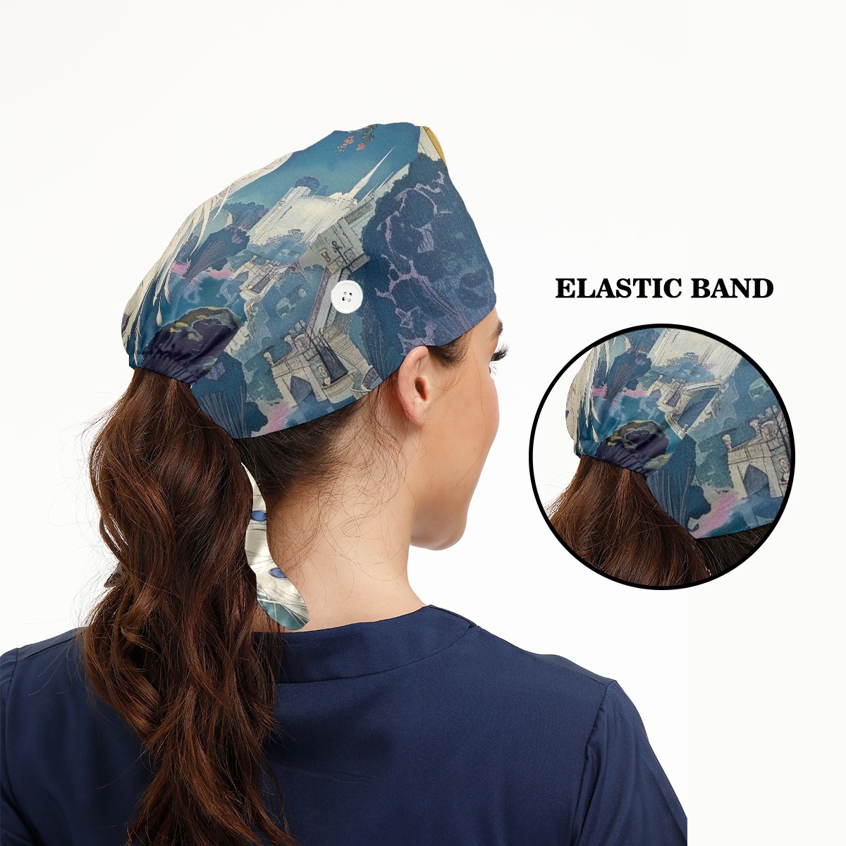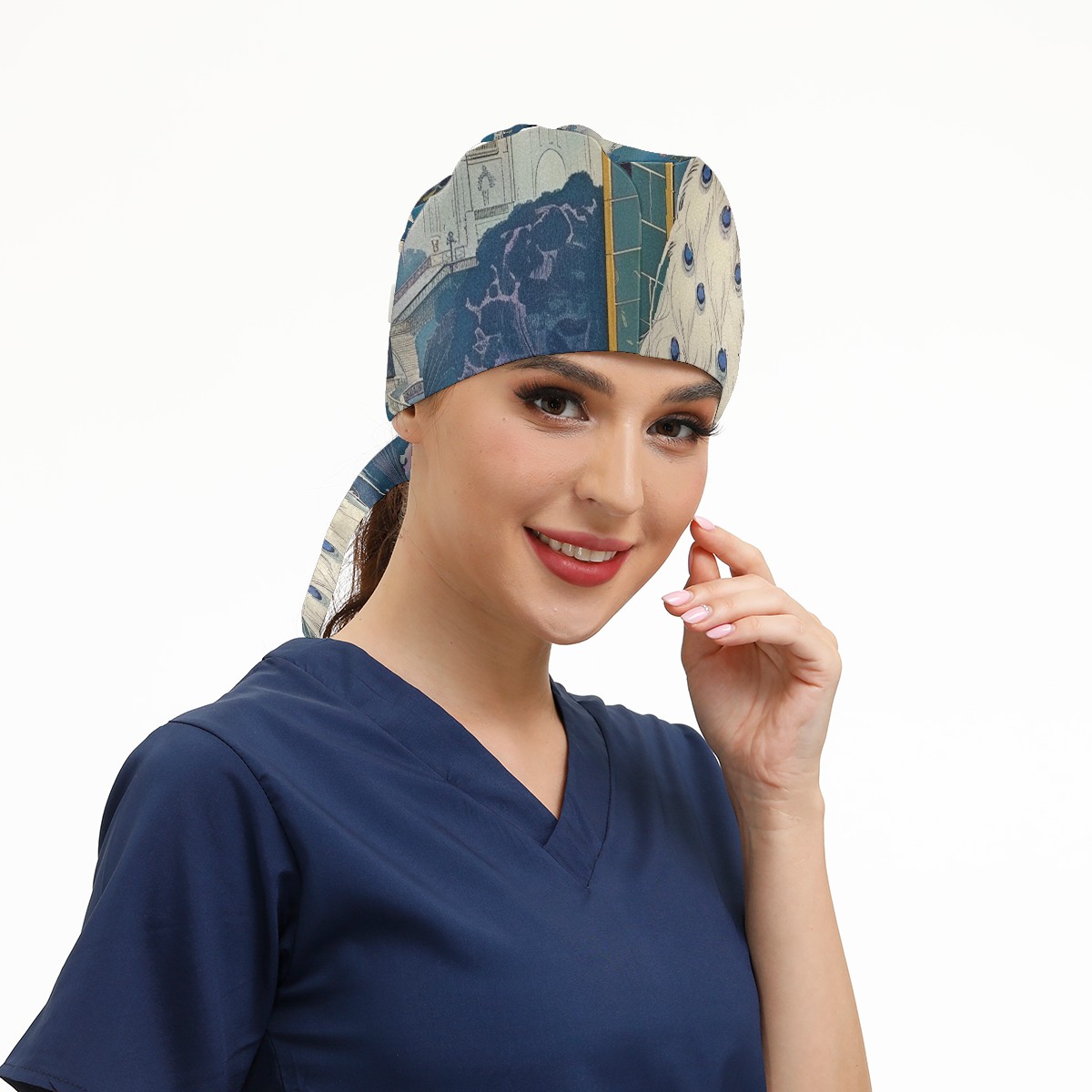 Working Caps with Button & Sweatband Satin Lined Cotton Adjustable Nurse Hats Elastic Band Scrub Cap Surgeon Hat Peacock