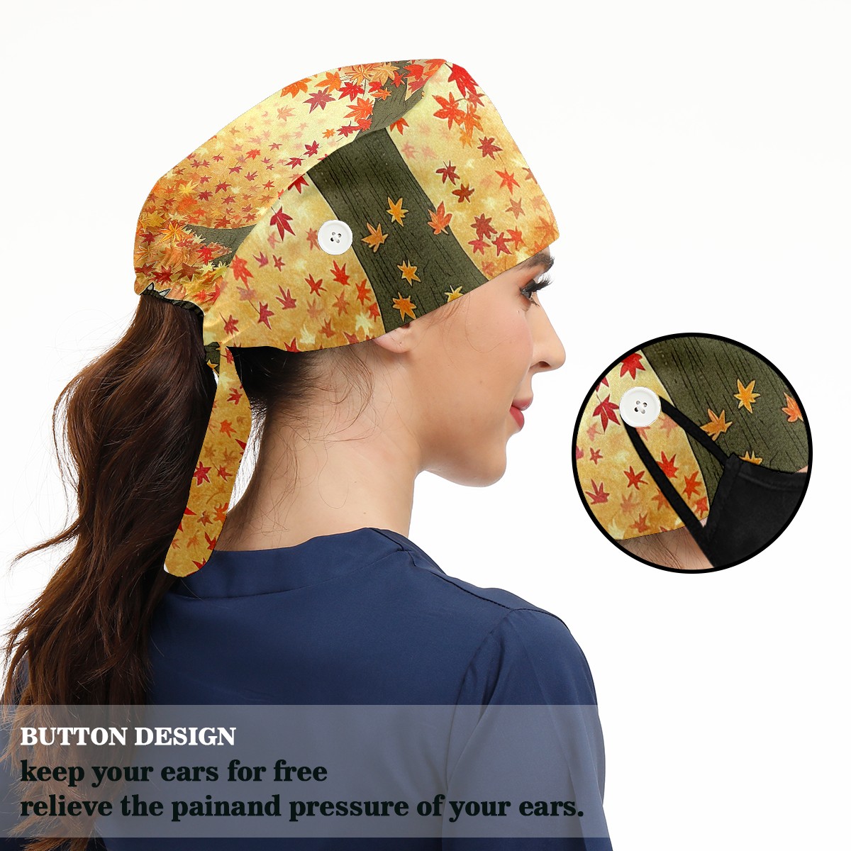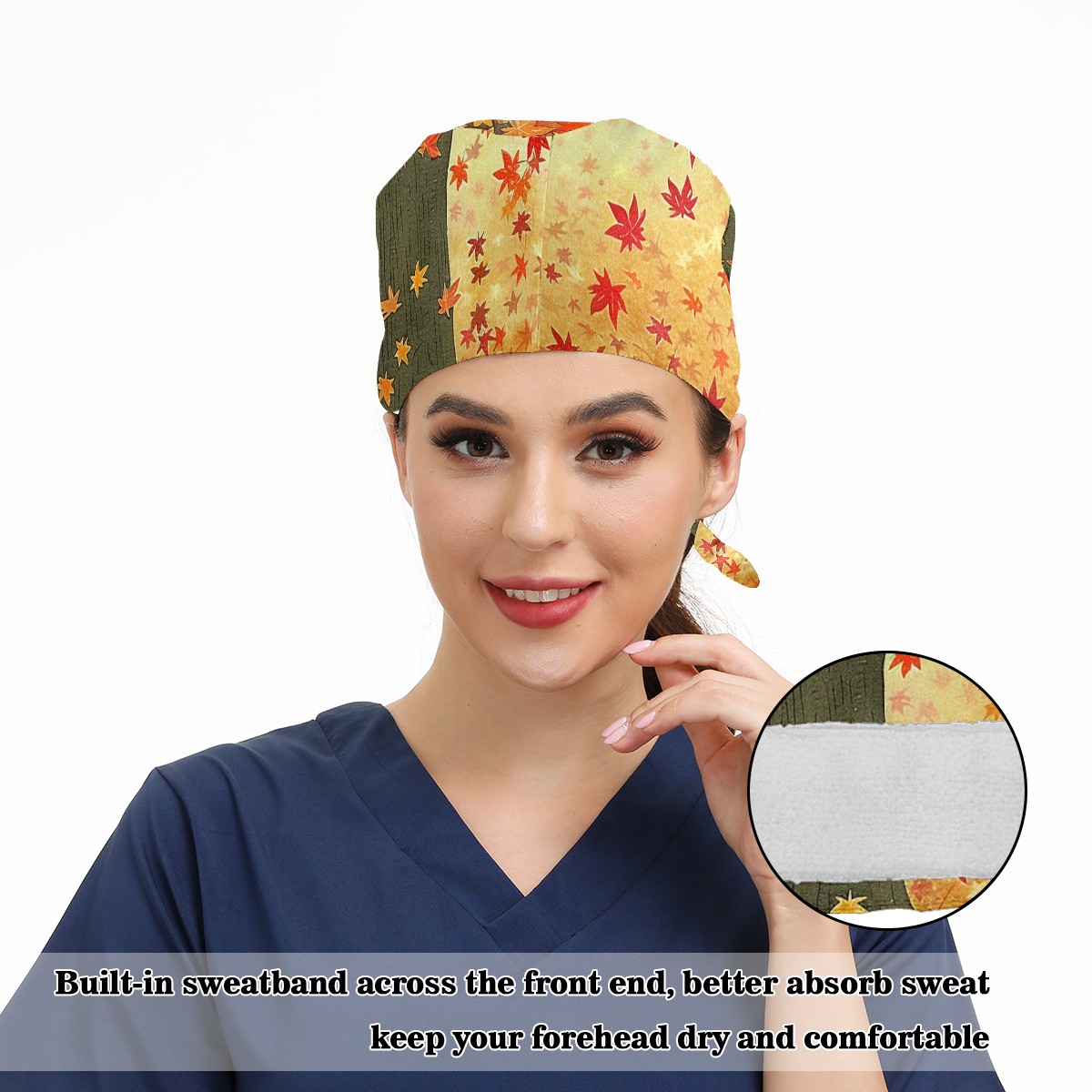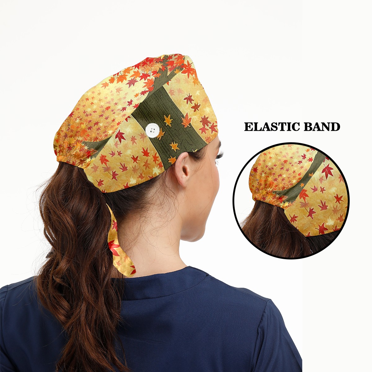 Working Caps with Button & Sweatband Satin Lined Cotton Adjustable Nurse Hats Elastic Band Scrub Cap Surgeon Hat Tree