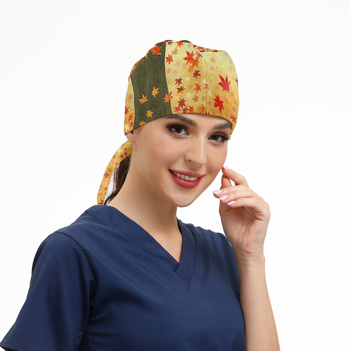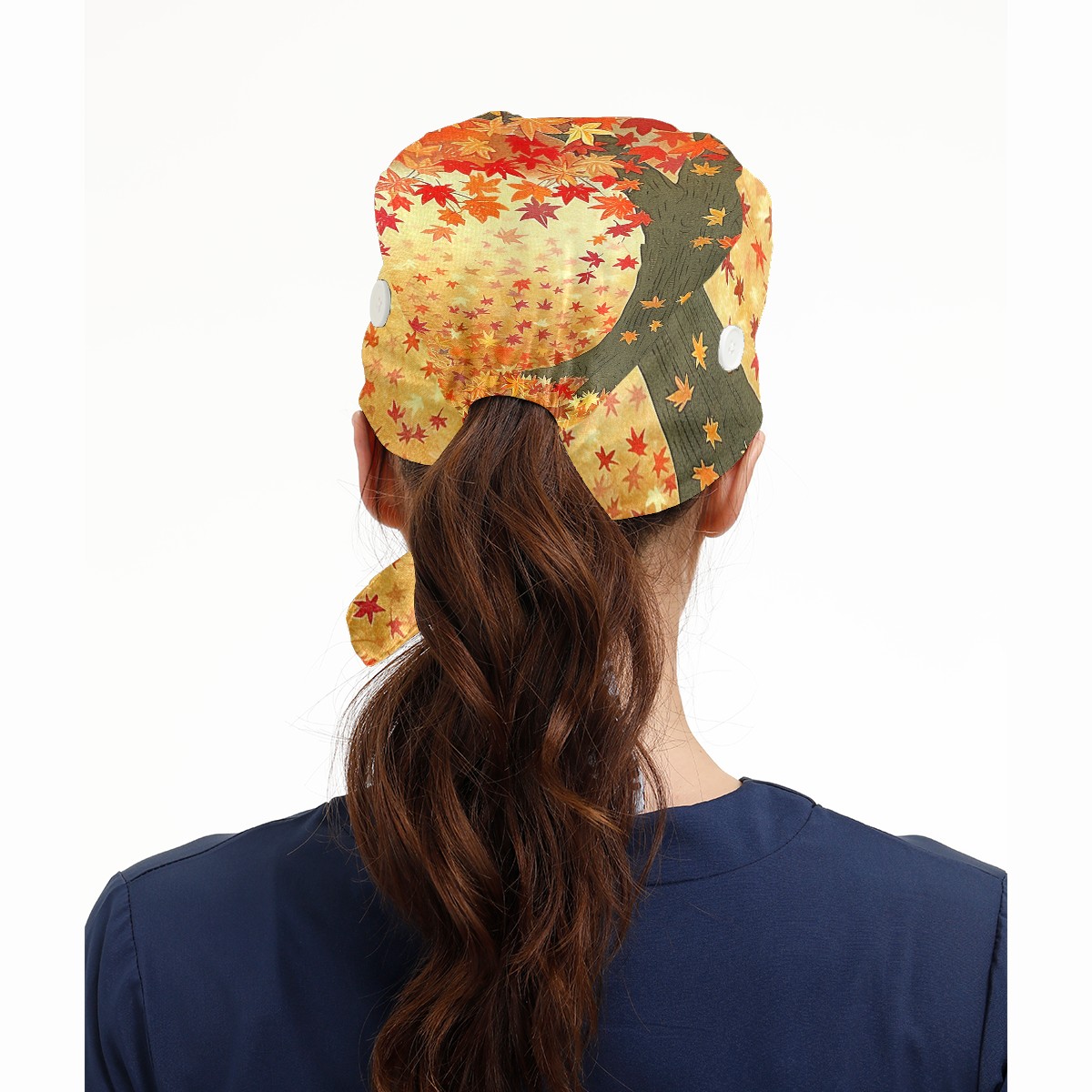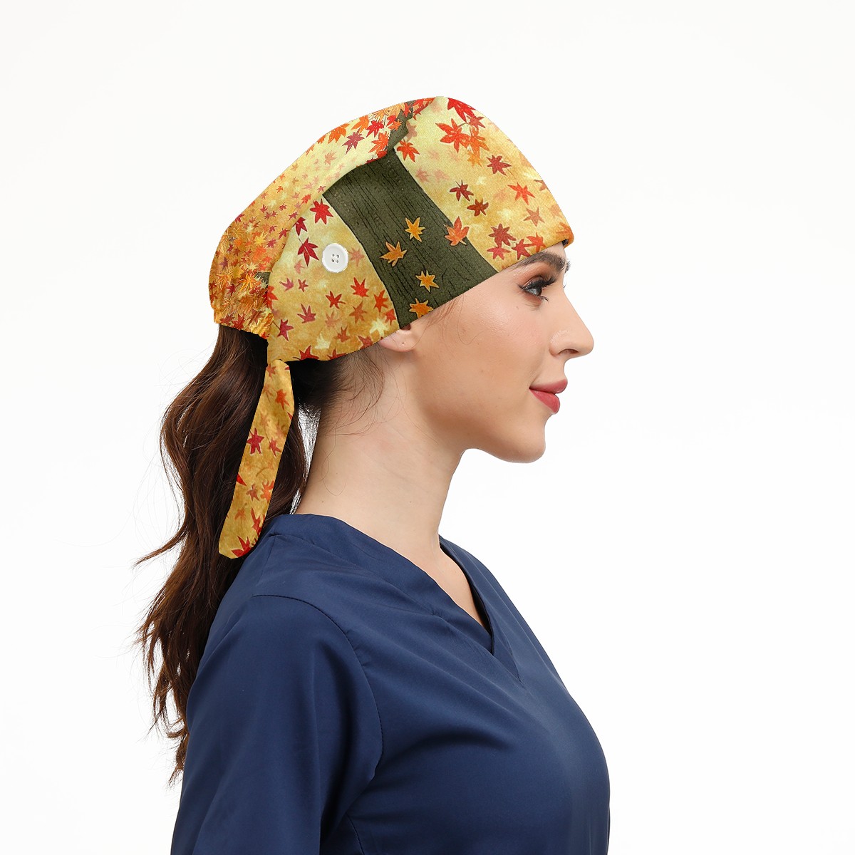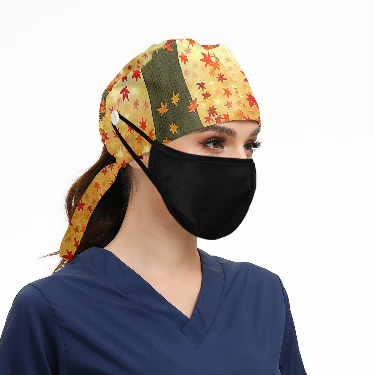Working Caps with Button & Sweatband Satin Lined Cotton Adjustable Nurse Hats Elastic Band Scrub Cap Surgeon Hat Tree