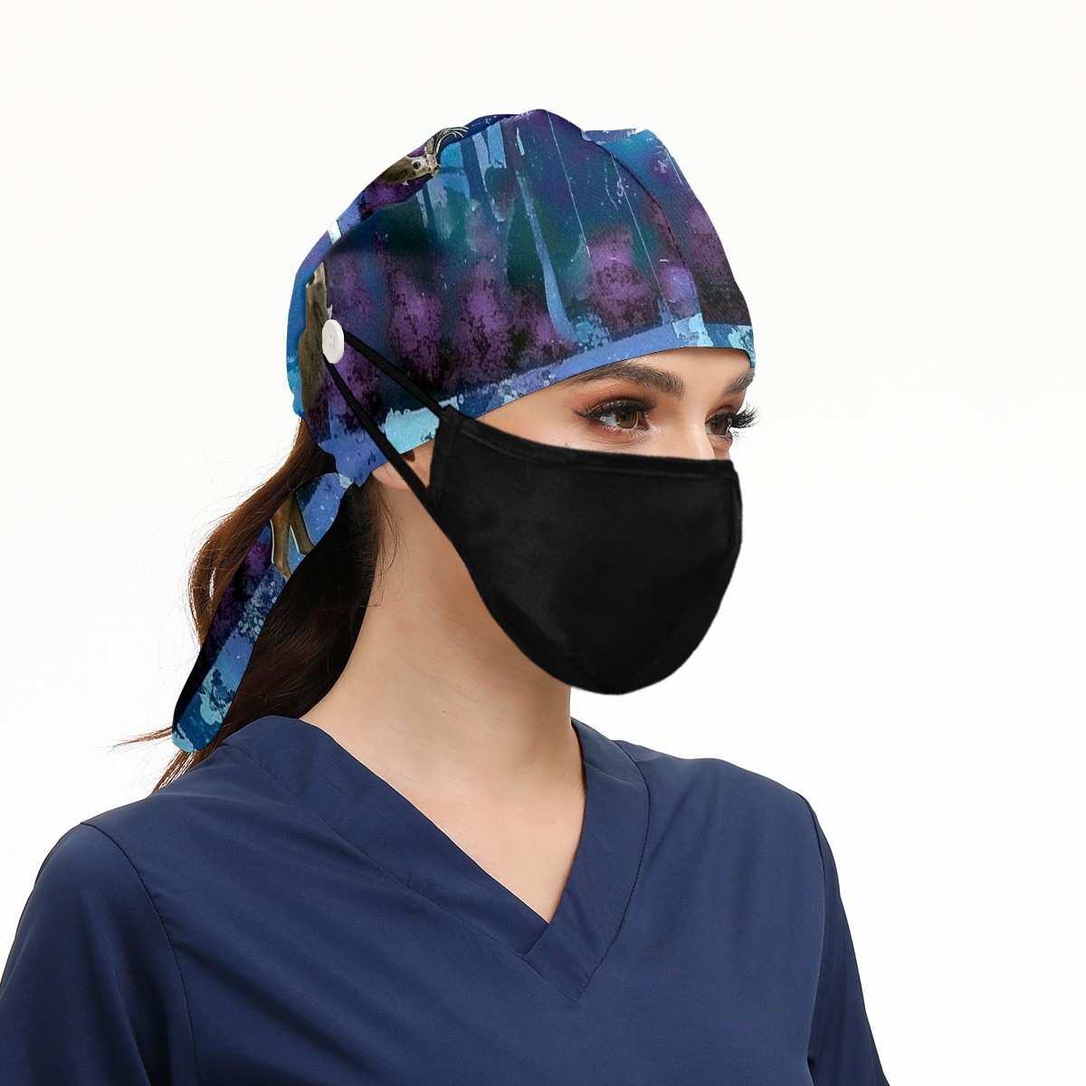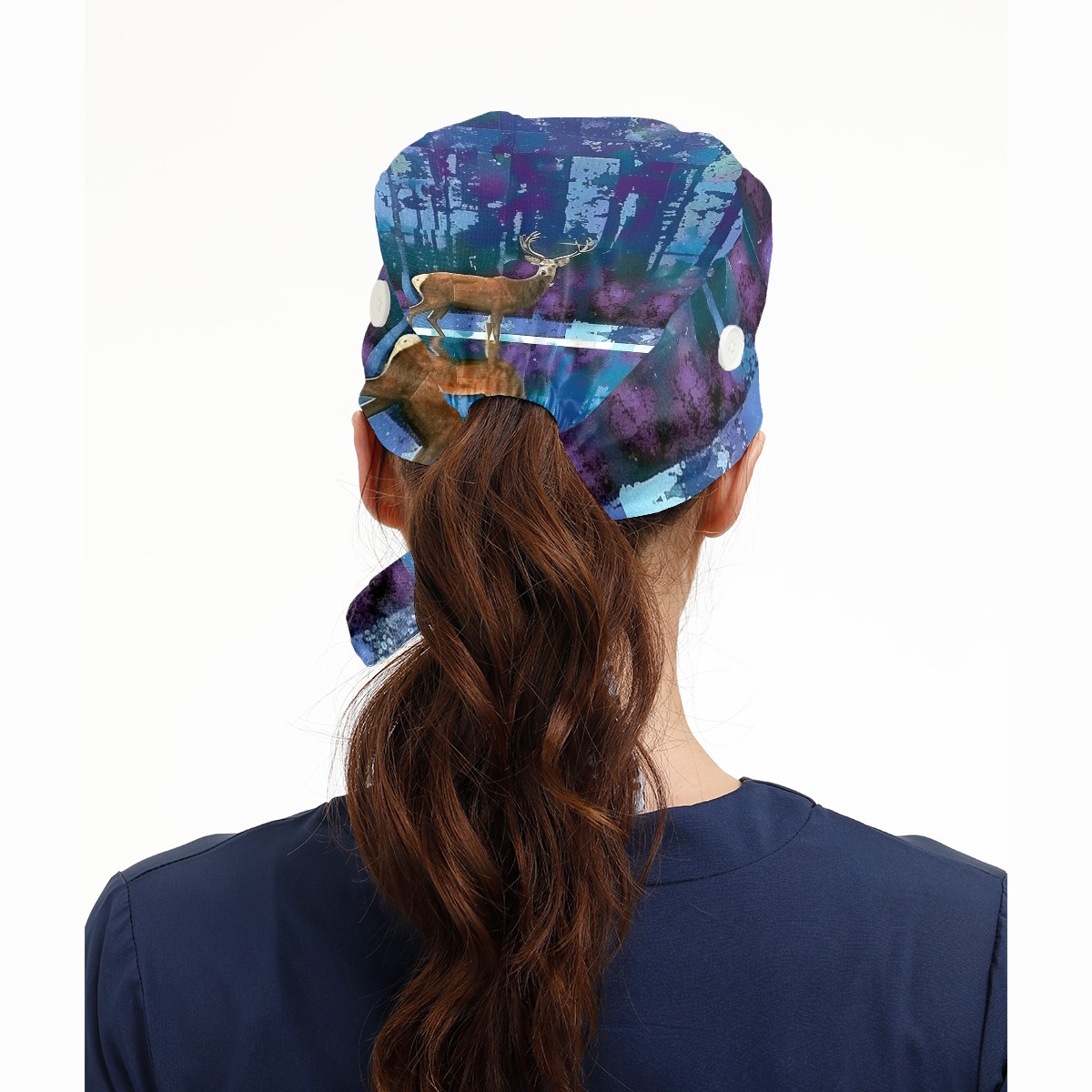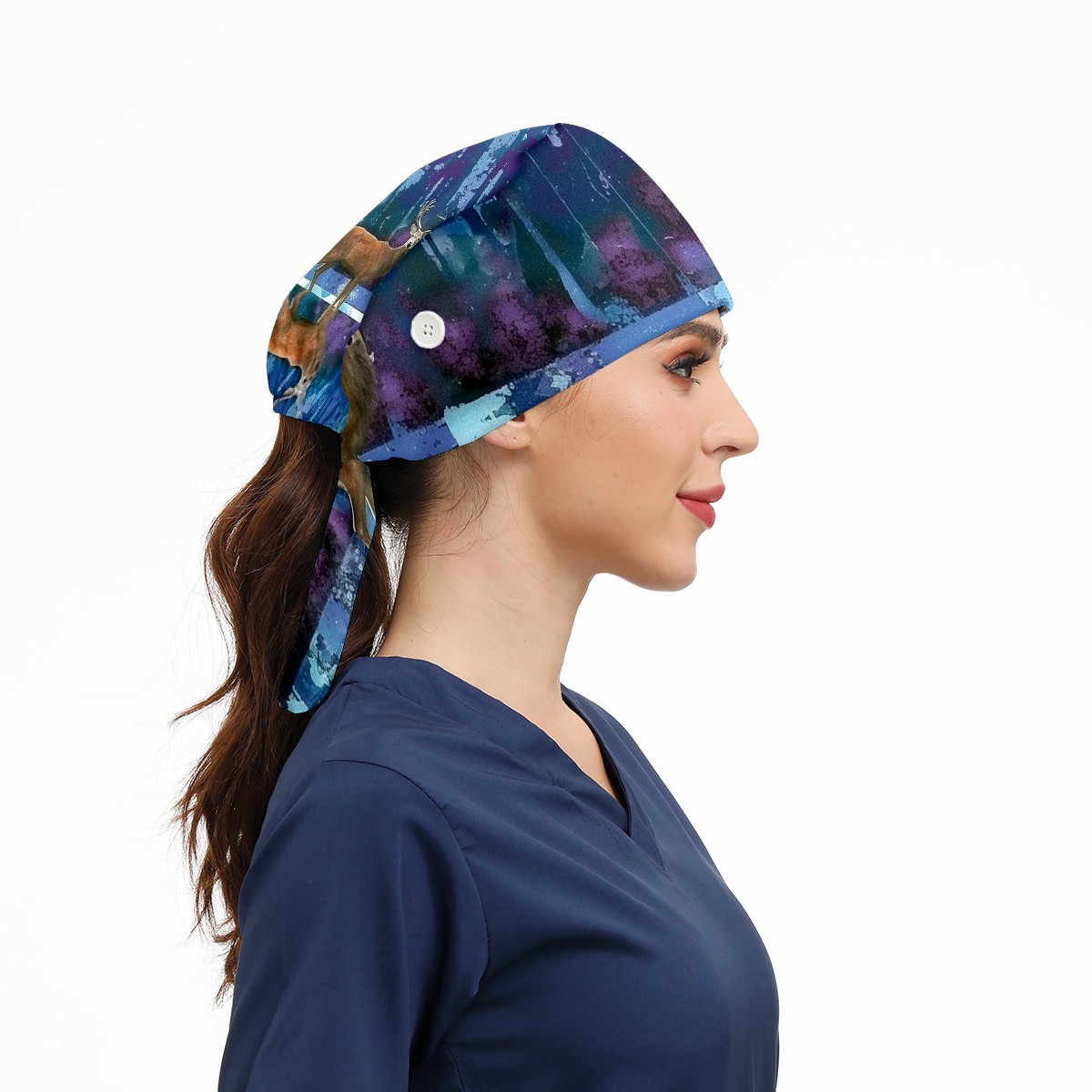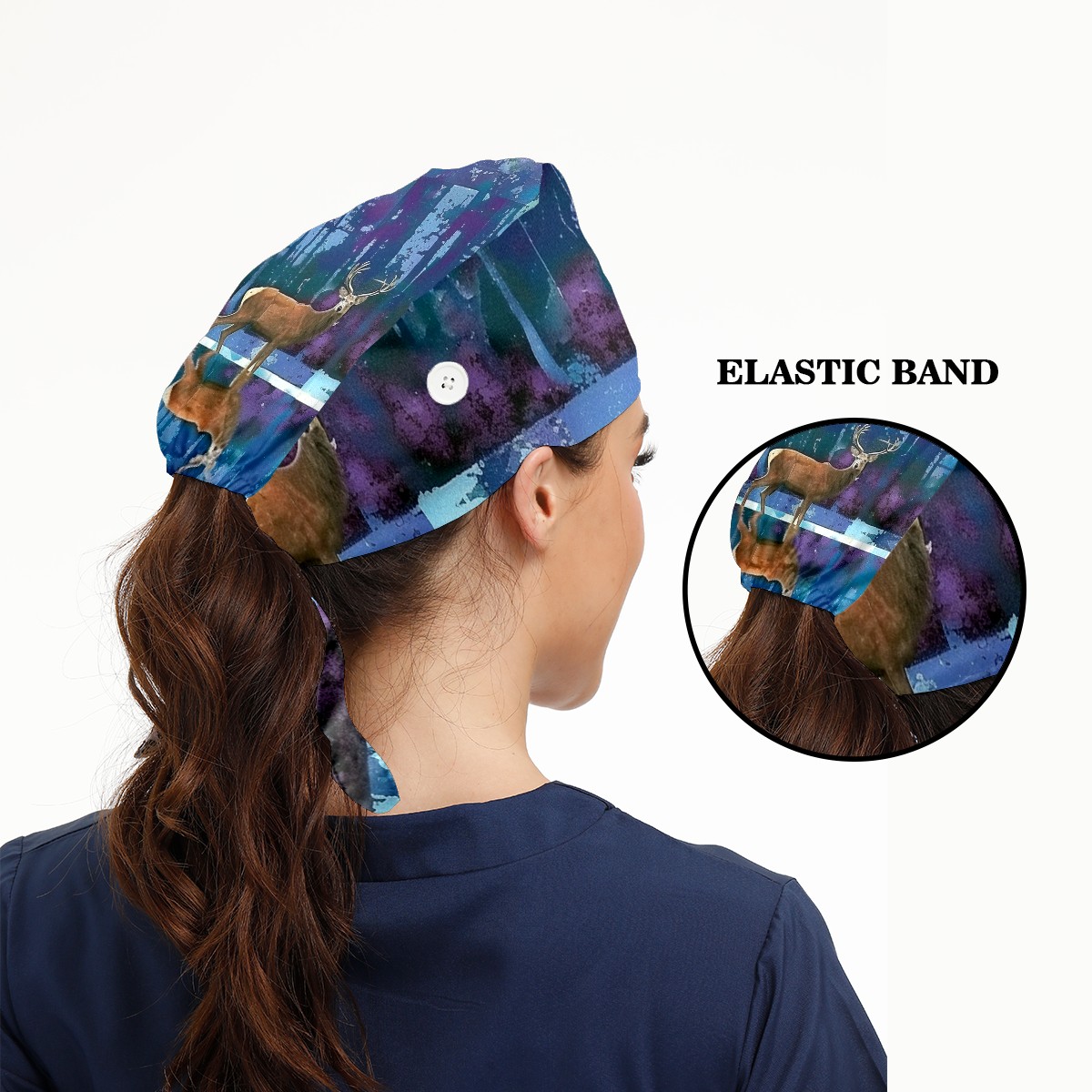 Working Caps with Button & Sweatband Satin Lined Cotton Adjustable Nurse Hats Elastic Band Scrub Cap Surgeon Hat Deer