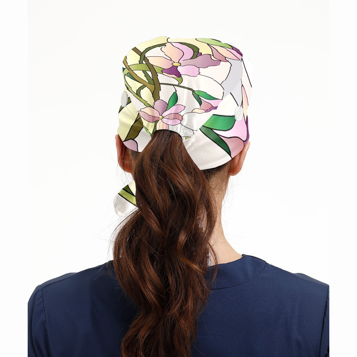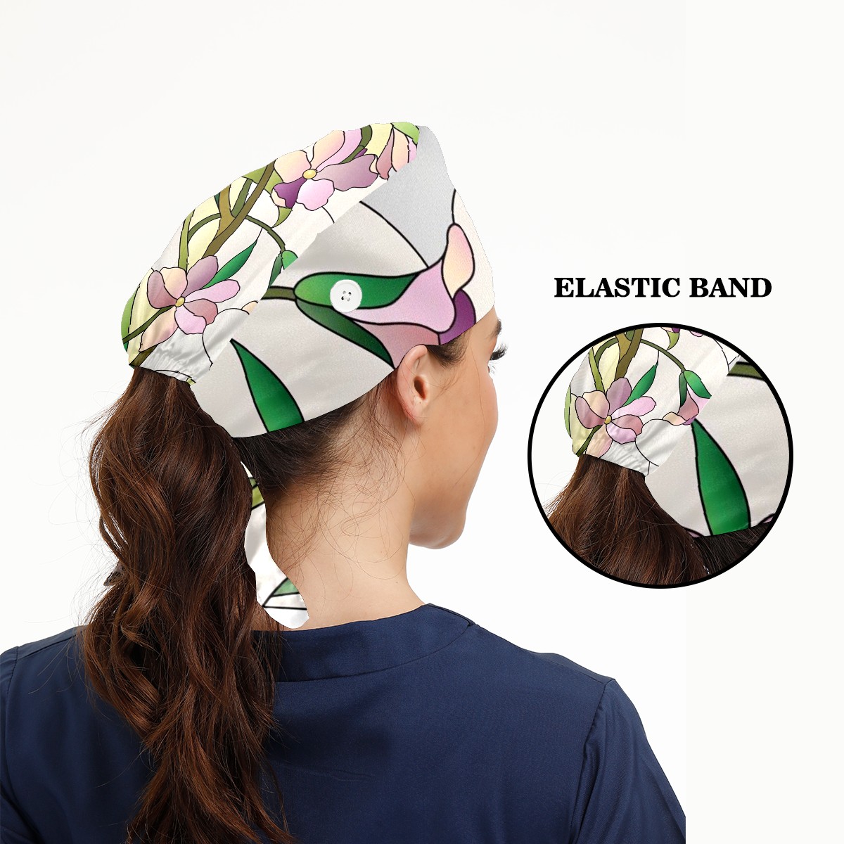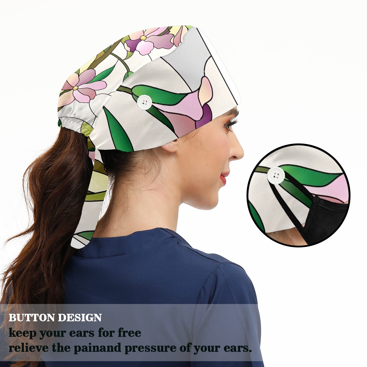 Working Caps with Button & Sweatband Satin Lined Cotton Adjustable Nurse Hats Elastic Band Scrub Cap Surgeon Hat Window Films Stained Glass