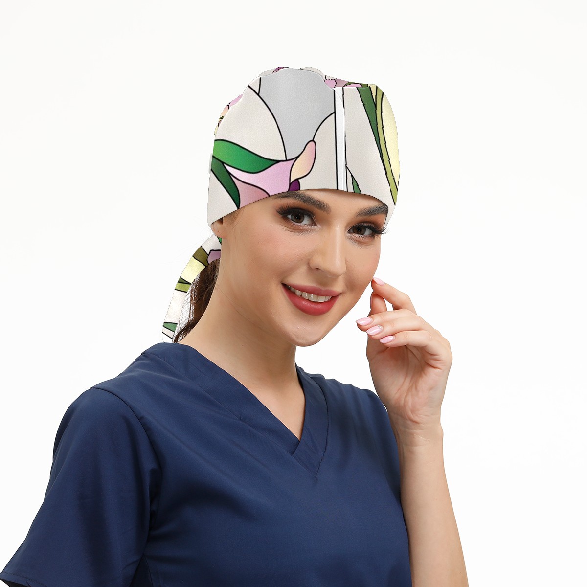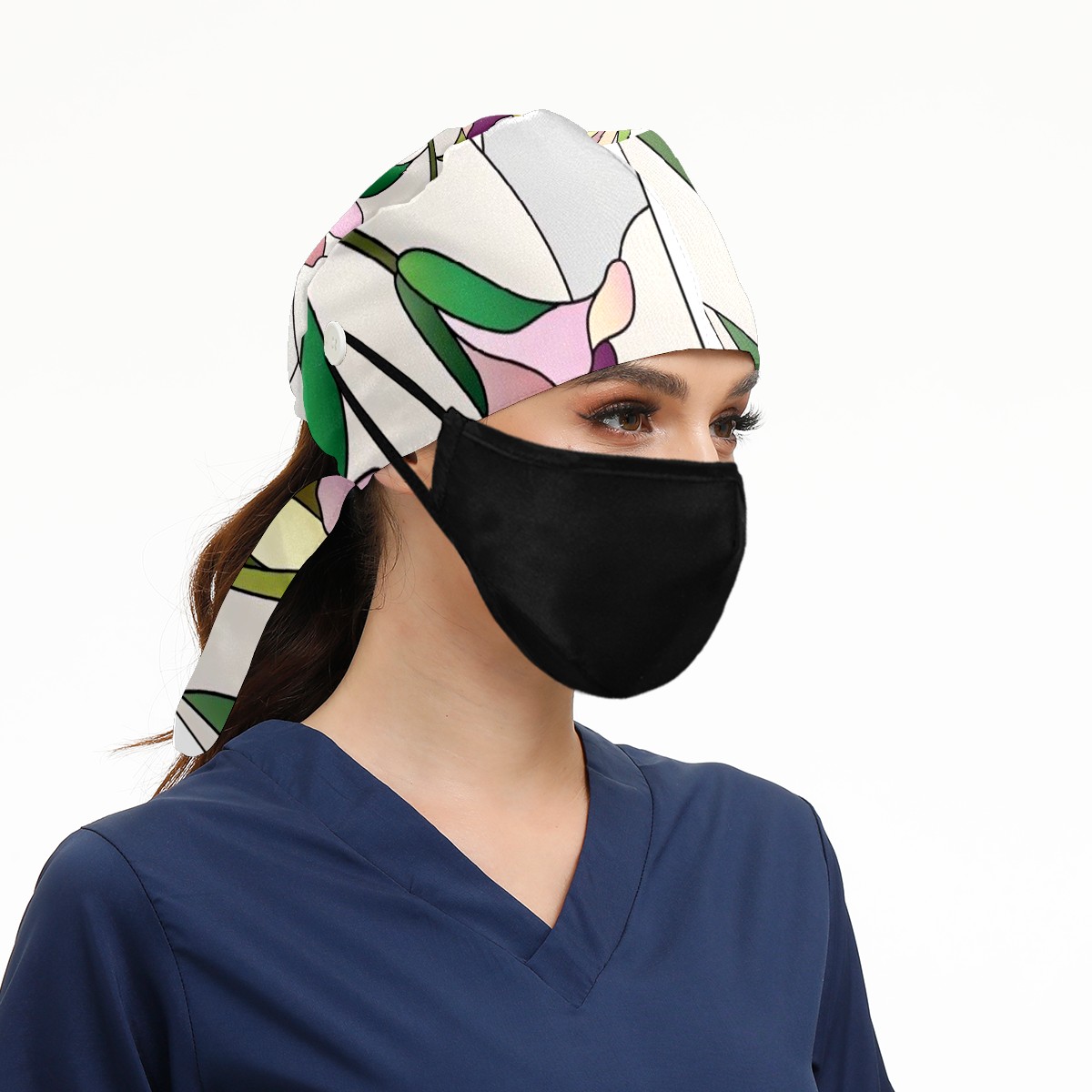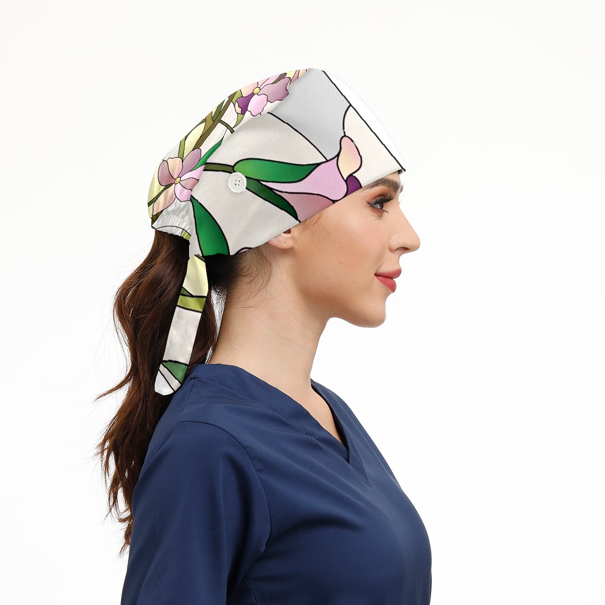 Working Caps with Button & Sweatband Satin Lined Cotton Adjustable Nurse Hats Elastic Band Scrub Cap Surgeon Hat Window Films Stained Glass