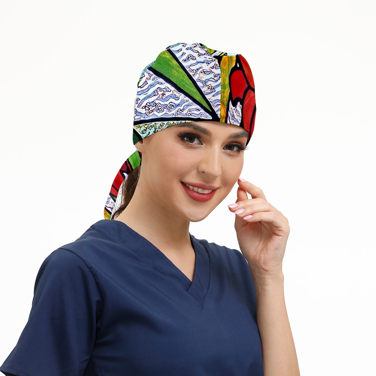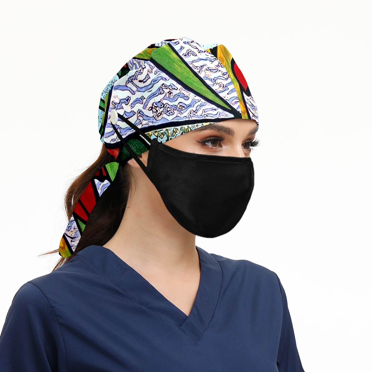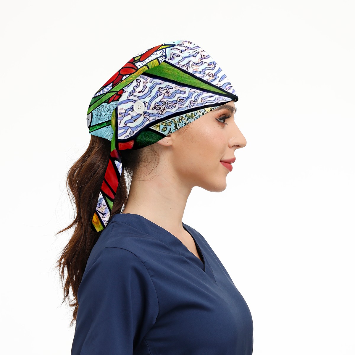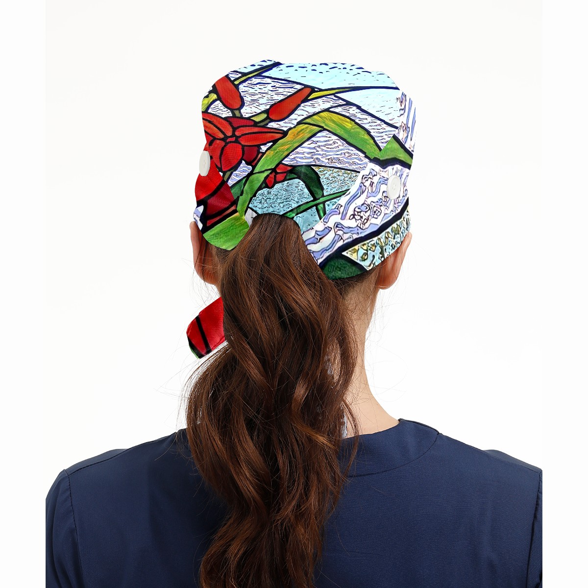 Working Caps with Button & Sweatband Satin Lined Cotton Adjustable Nurse Hats Elastic Band Scrub Cap Surgeon Hat Stained Glass