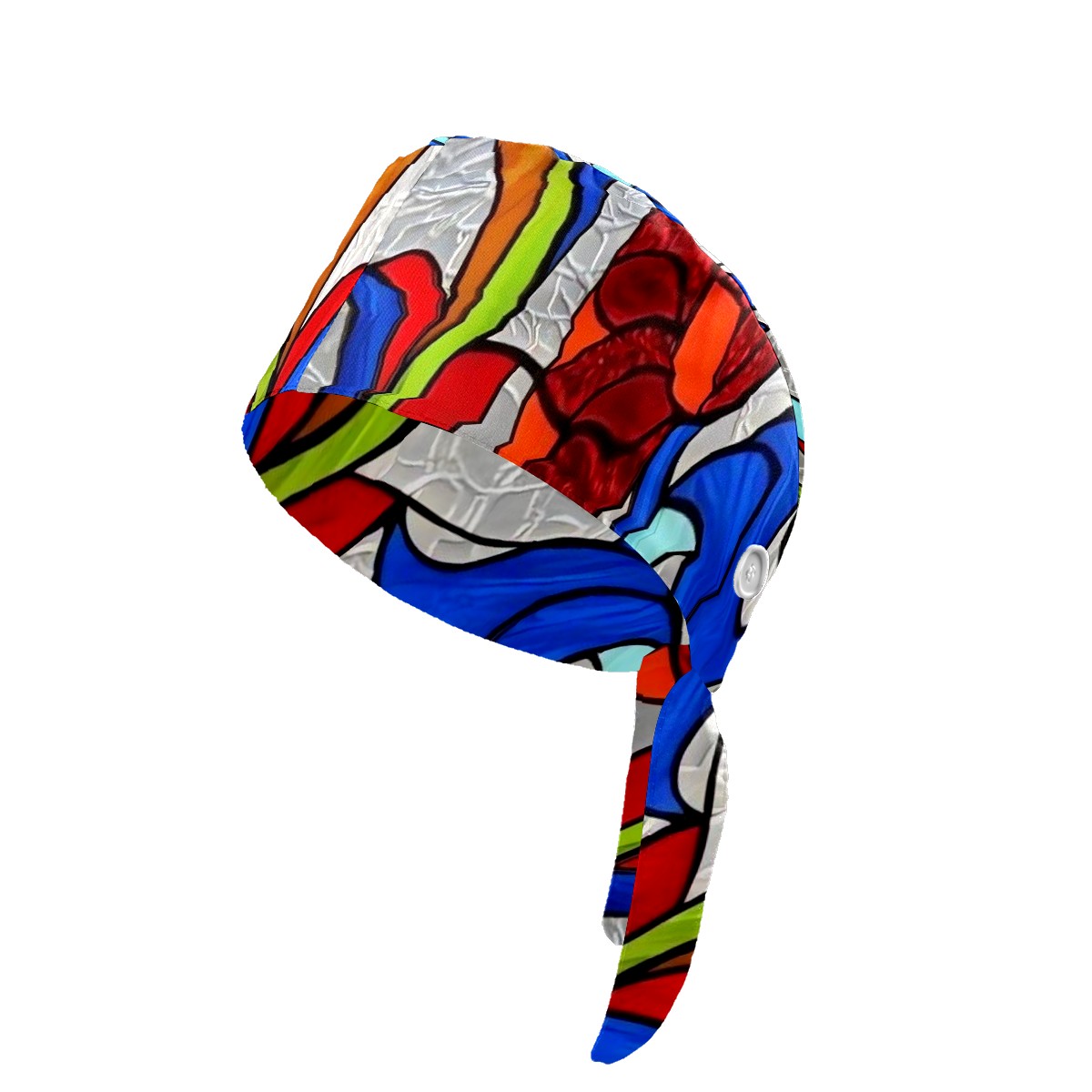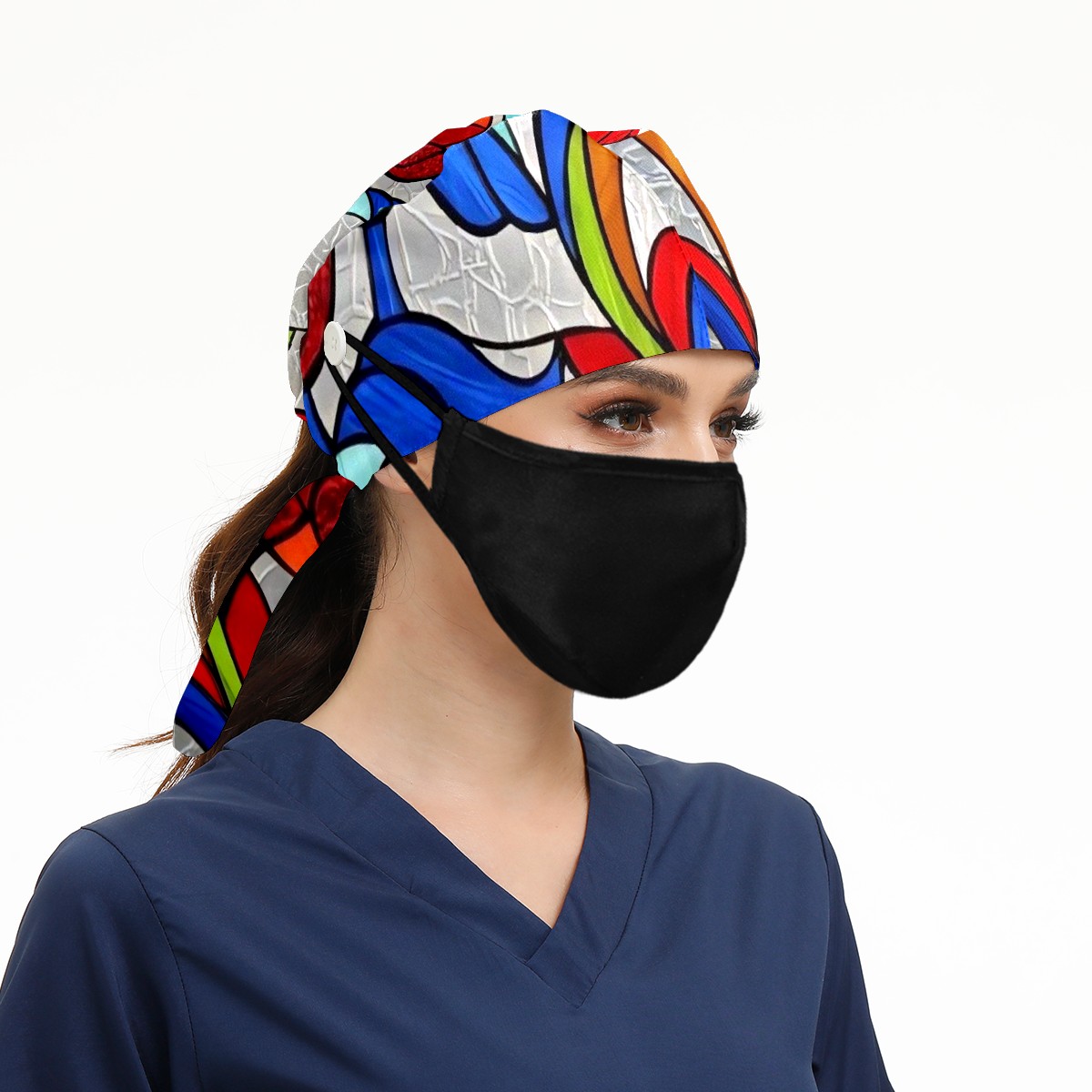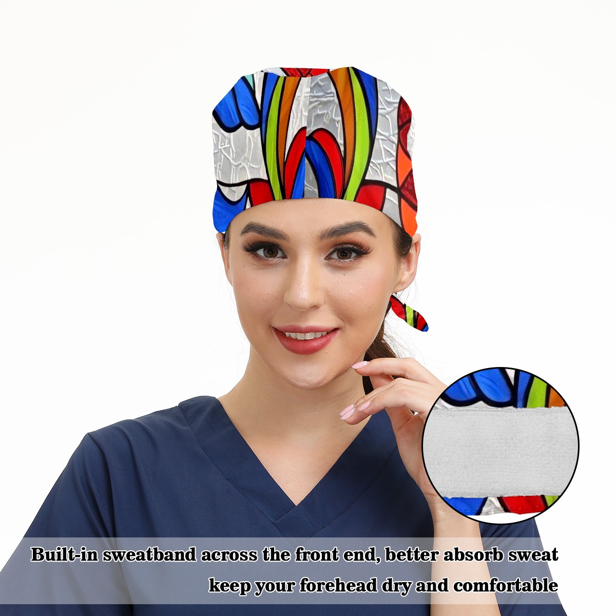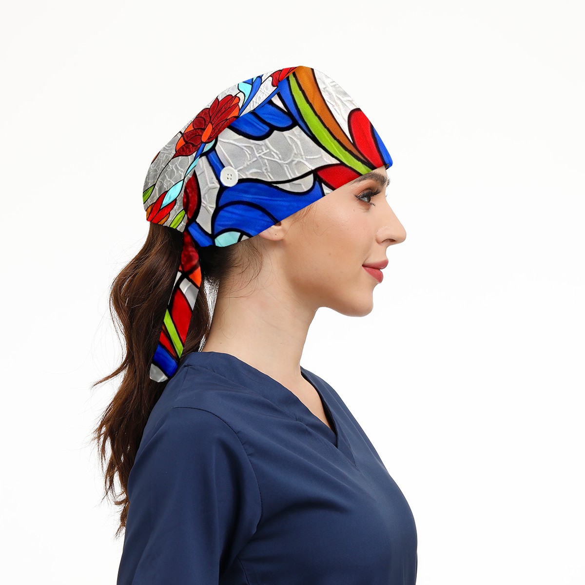 Working Caps with Button & Sweatband Satin Lined Cotton Adjustable Nurse Hats Elastic Band Scrub Cap Surgeon Hat Window Stained Glass