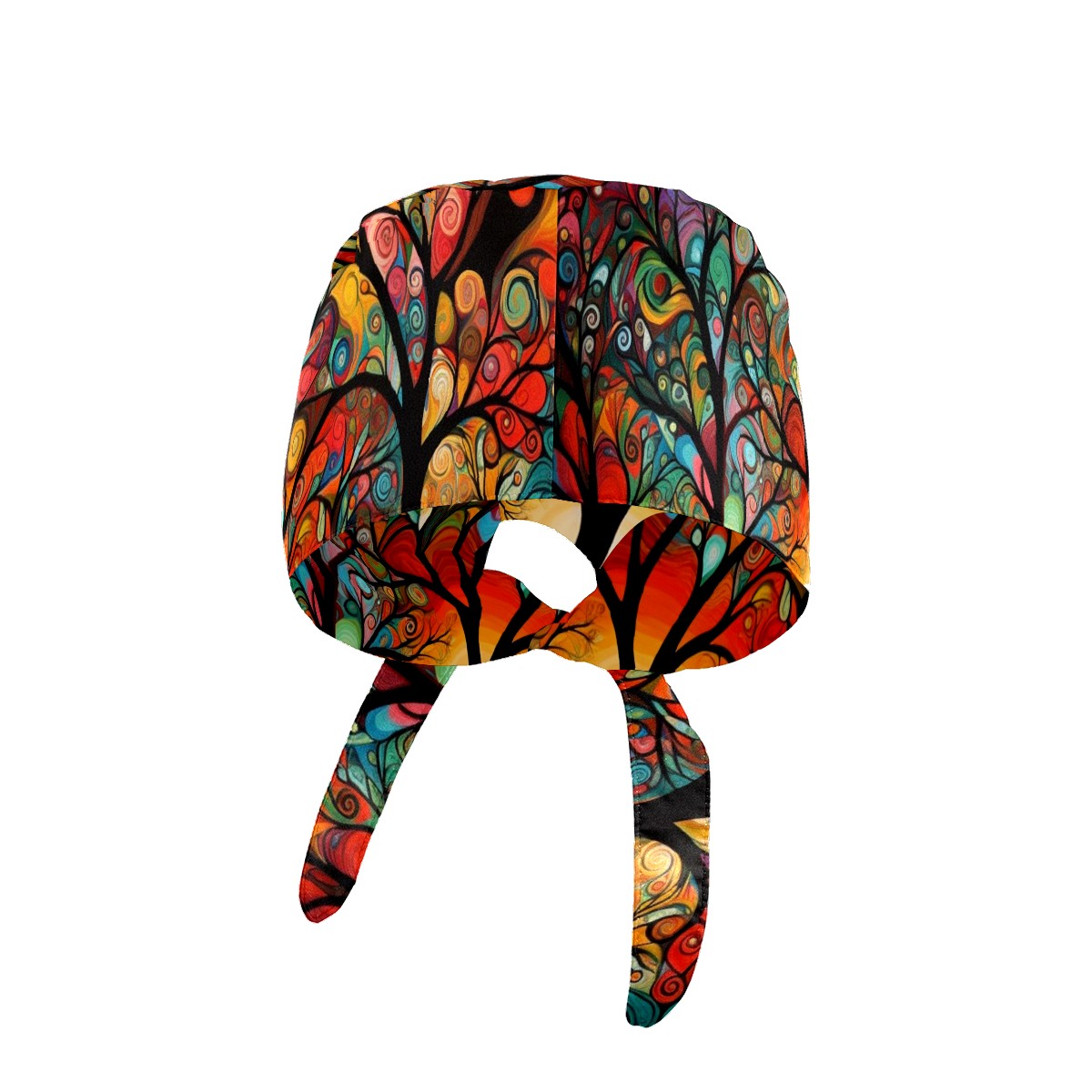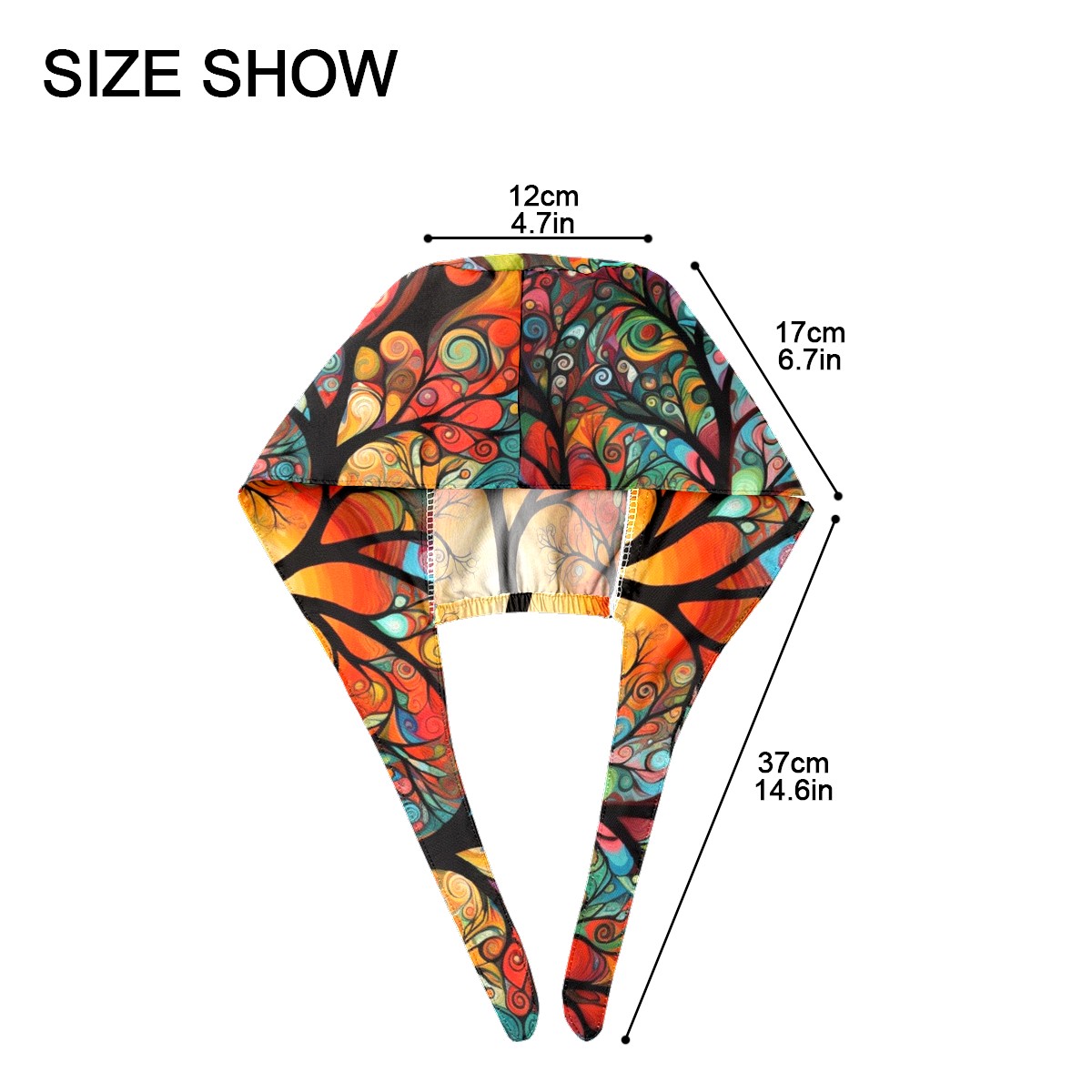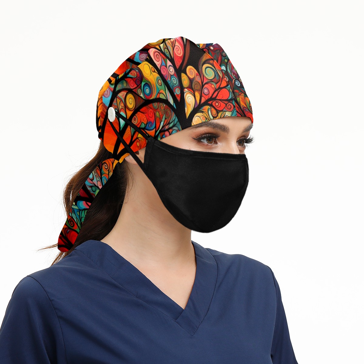 Working Caps with Button & Sweatband Satin Lined Cotton Adjustable Nurse Hats Elastic Band Scrub Cap Surgeon Hat Colorful Sunset With Trees