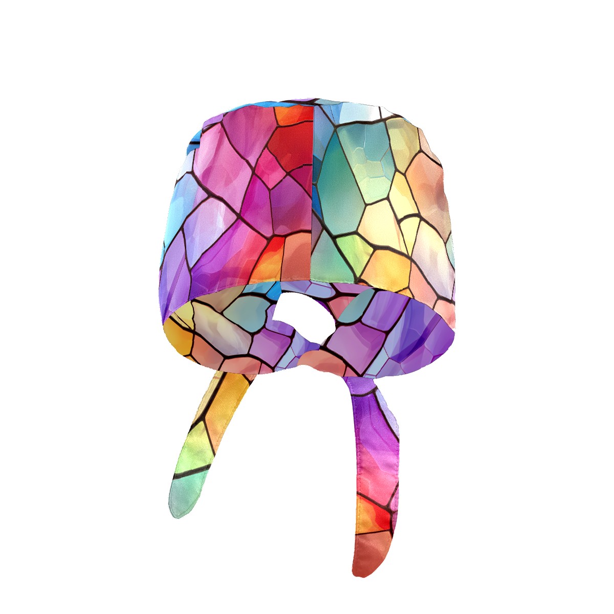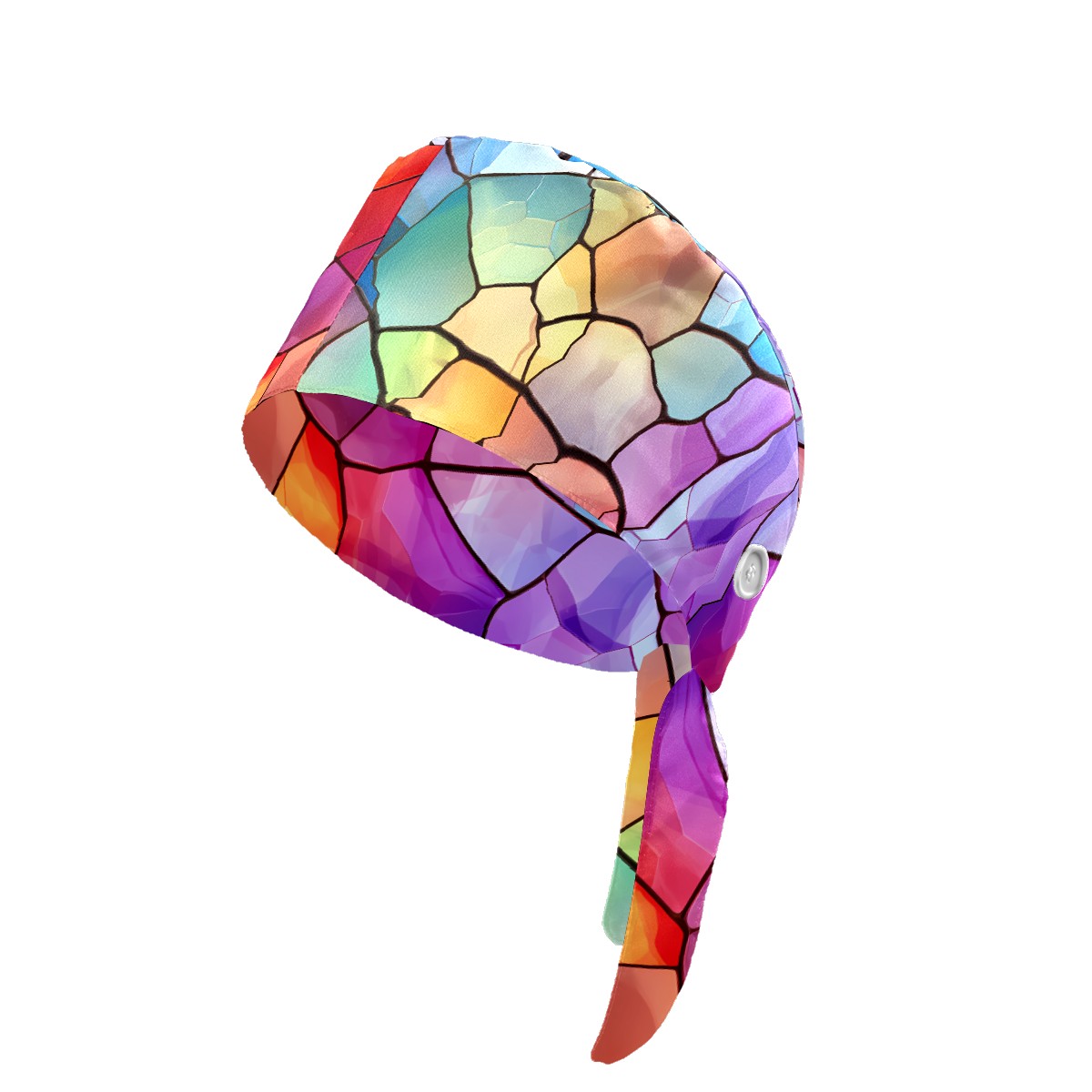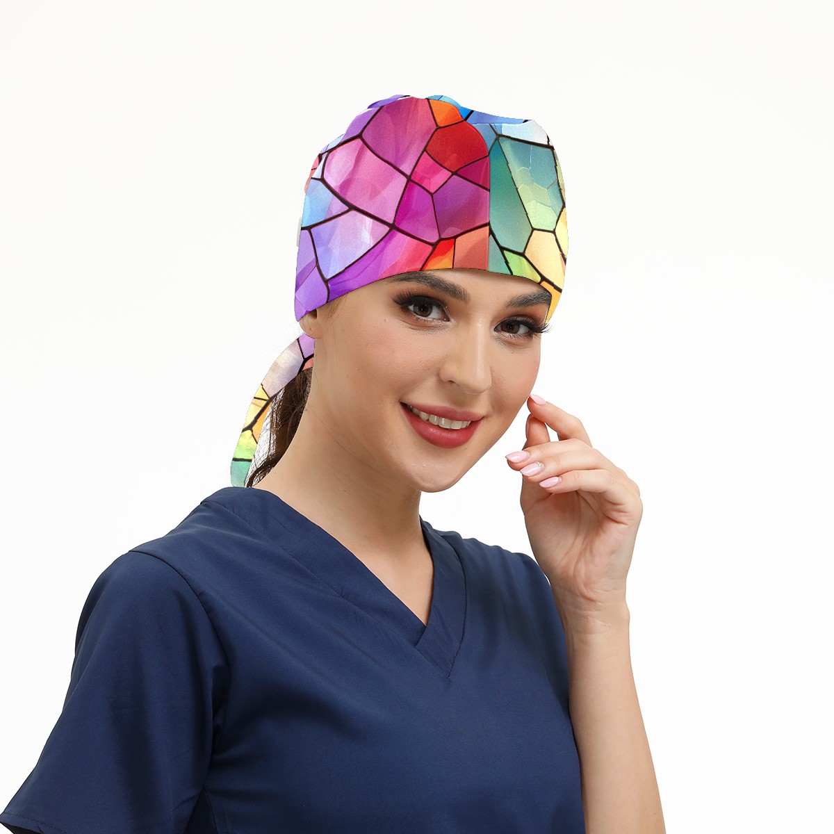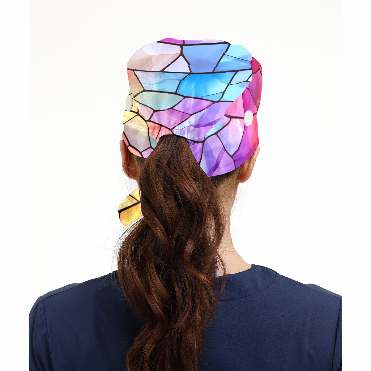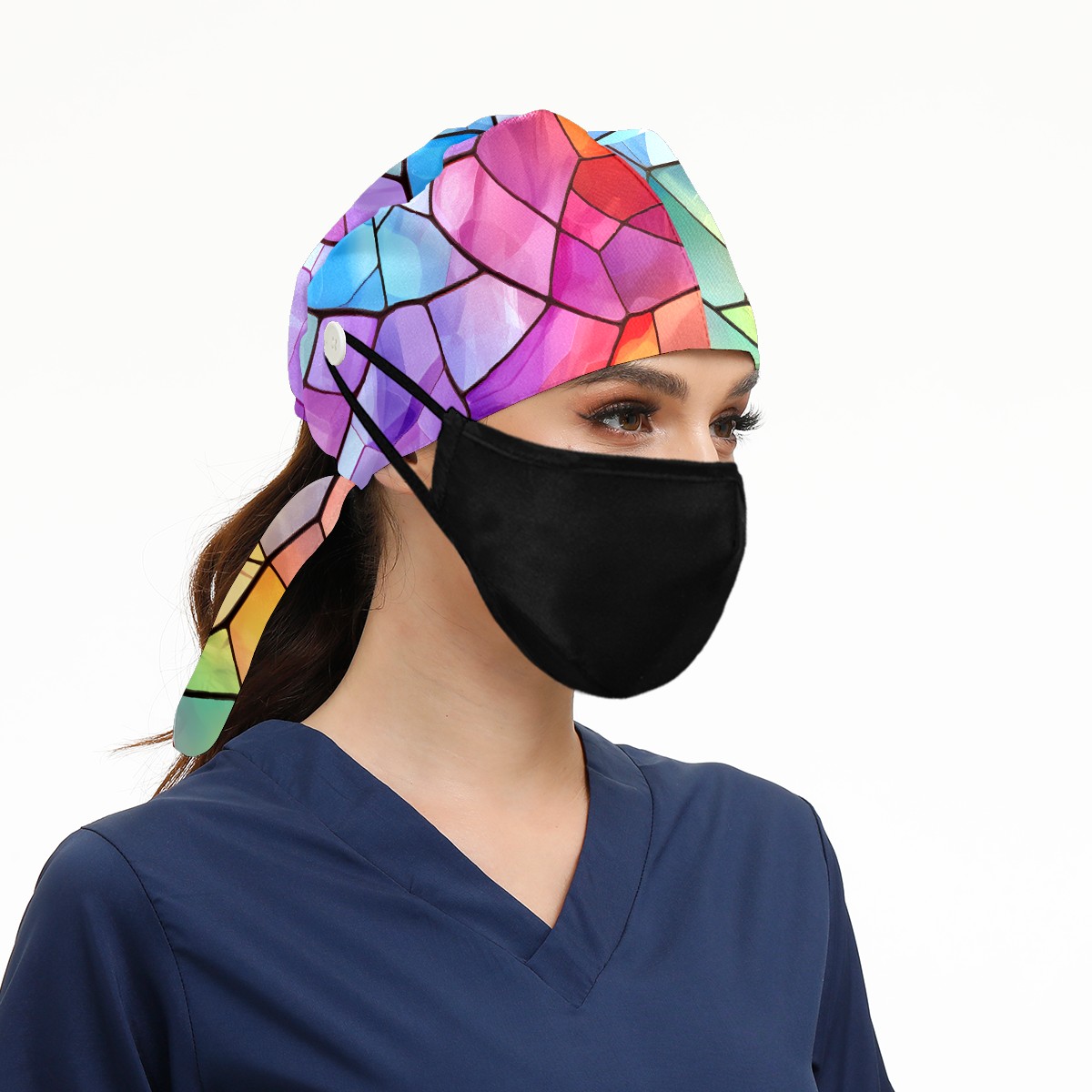 Working Caps with Button & Sweatband Satin Lined Cotton Adjustable Nurse Hats Elastic Band Scrub Cap Surgeon Hat Stained Glass Pattern (1)