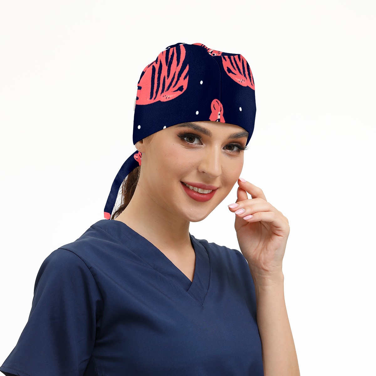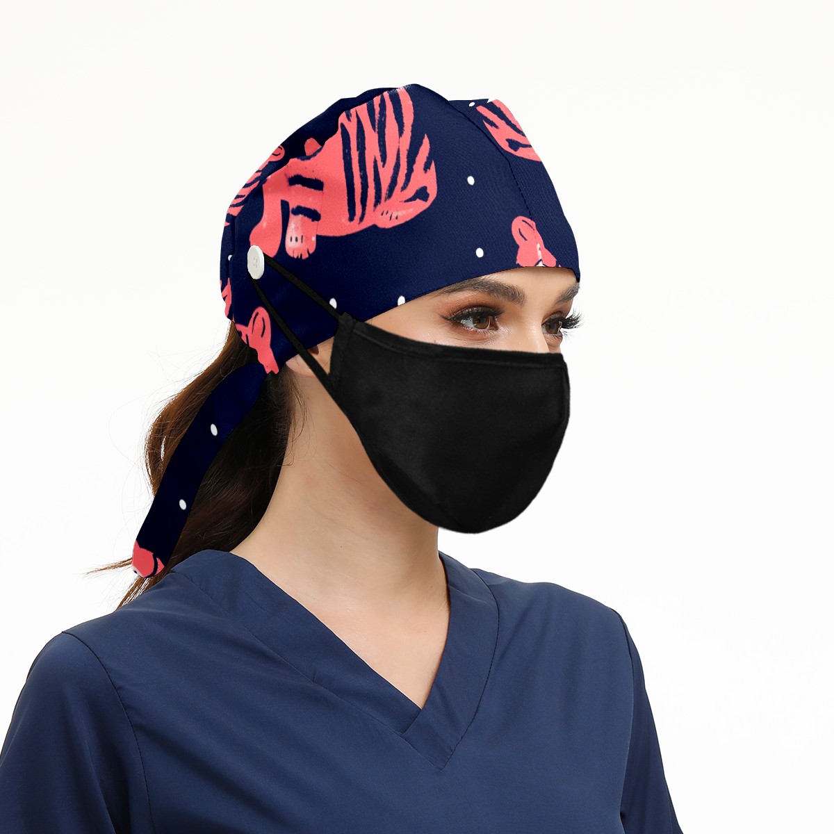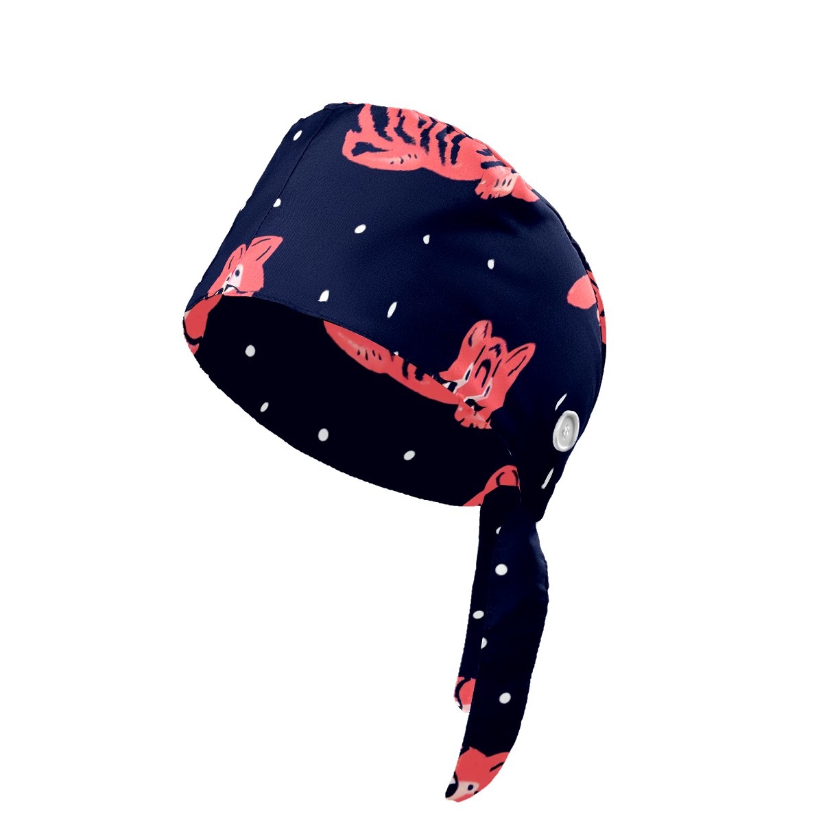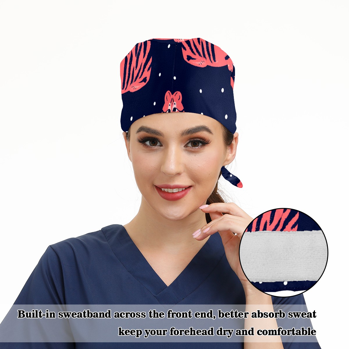 Working Caps with Button & Sweatband Satin Lined Cotton Adjustable Nurse Hats Elastic Band Scrub Cap Surgeon Hat Tiger