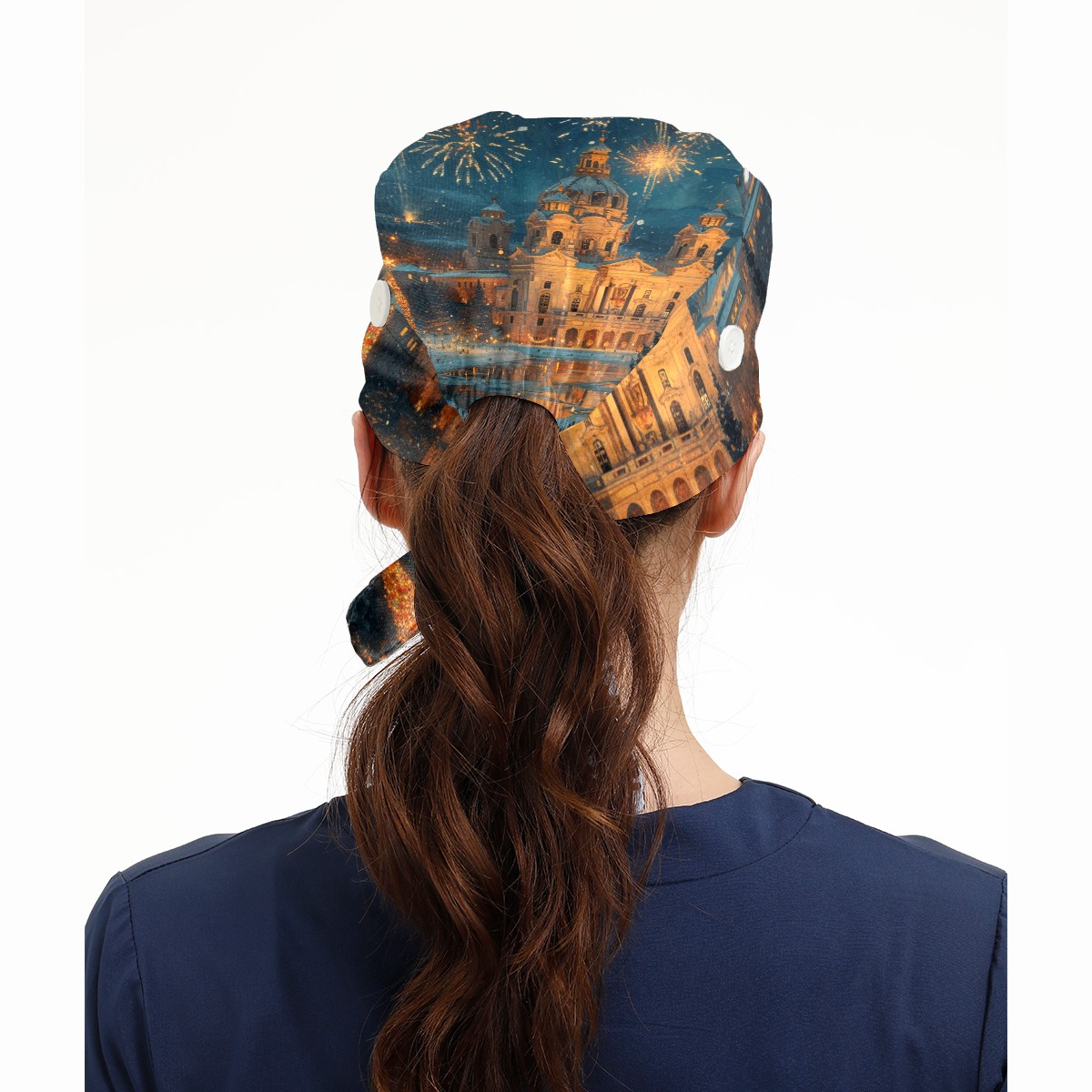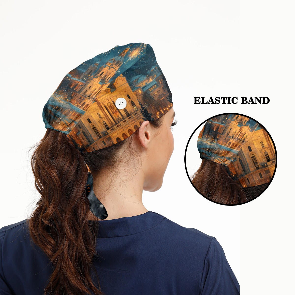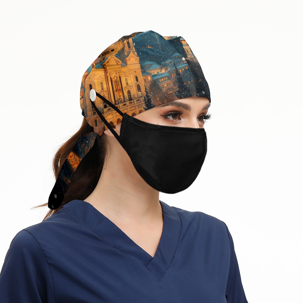 Working Caps with Button & Sweatband Satin Lined Cotton Adjustable Nurse Hats Elastic Band Scrub Cap Surgeon Hat Fairy Tale