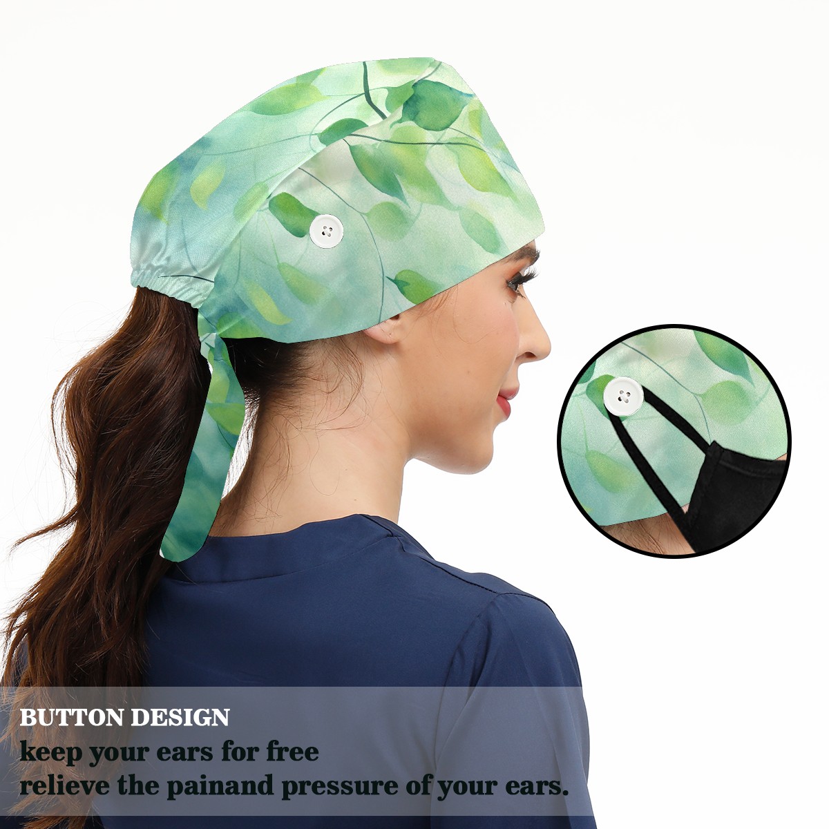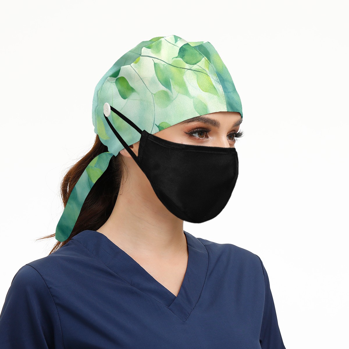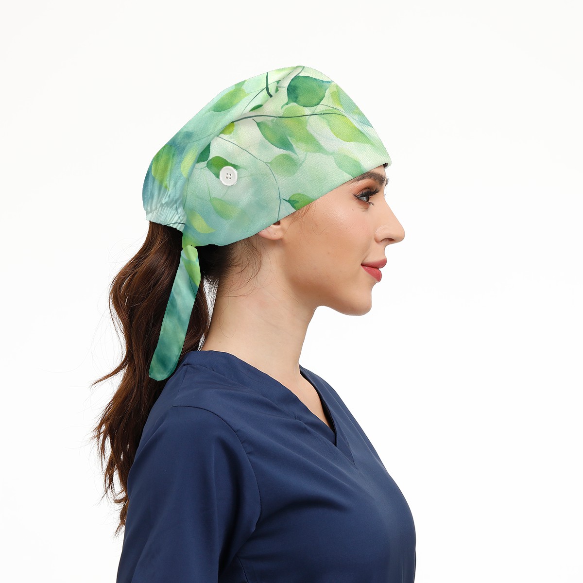 Working Caps with Button & Sweatband Satin Lined Cotton Adjustable Nurse Hats Elastic Band Scrub Cap Surgeon Hat Flower (611)