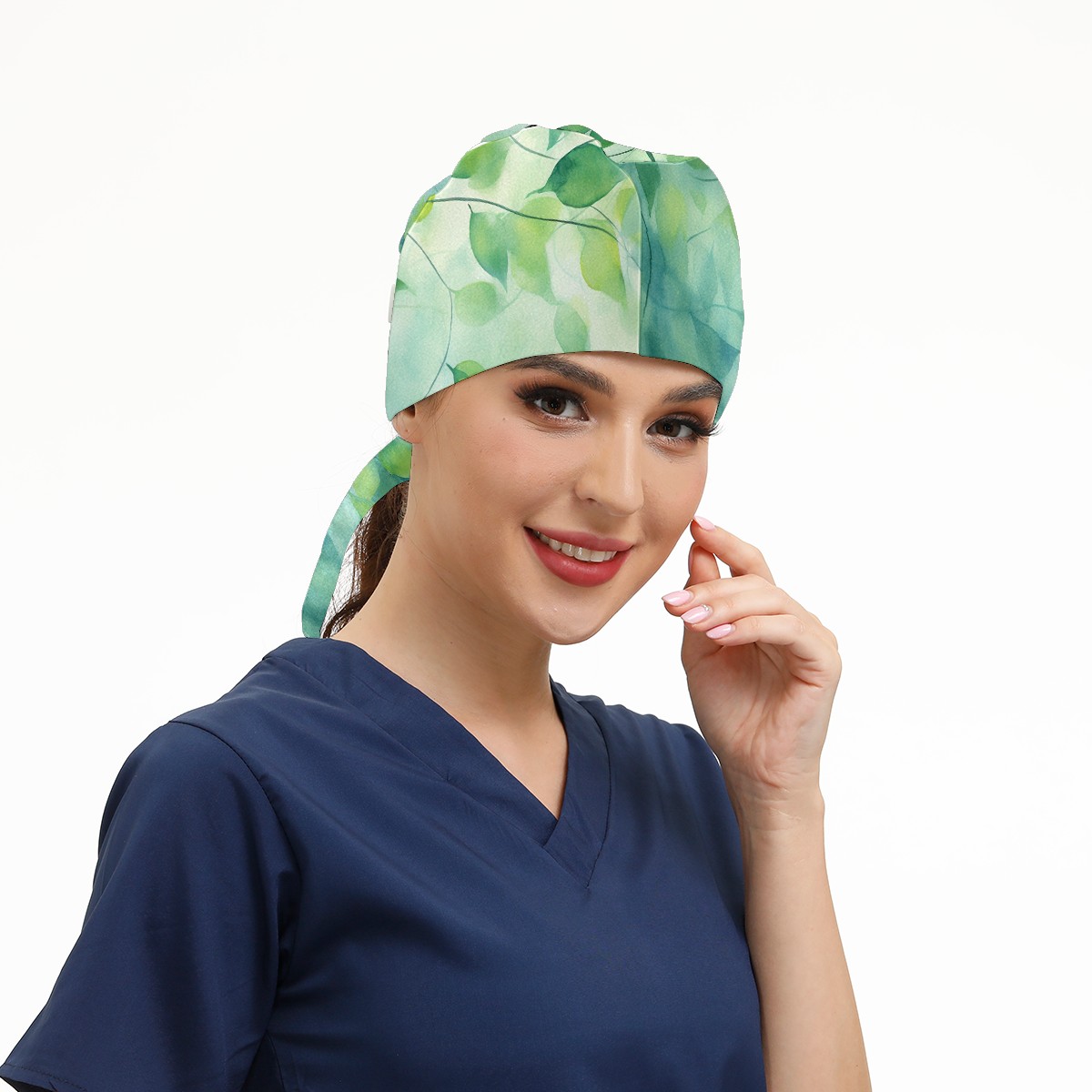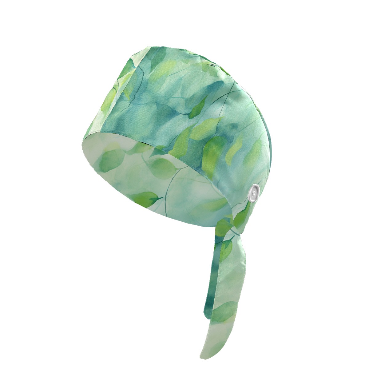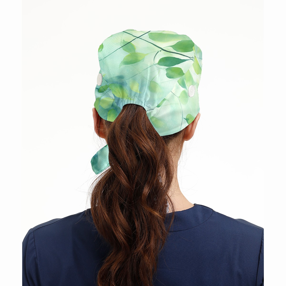 Working Caps with Button & Sweatband Satin Lined Cotton Adjustable Nurse Hats Elastic Band Scrub Cap Surgeon Hat Flower (611)