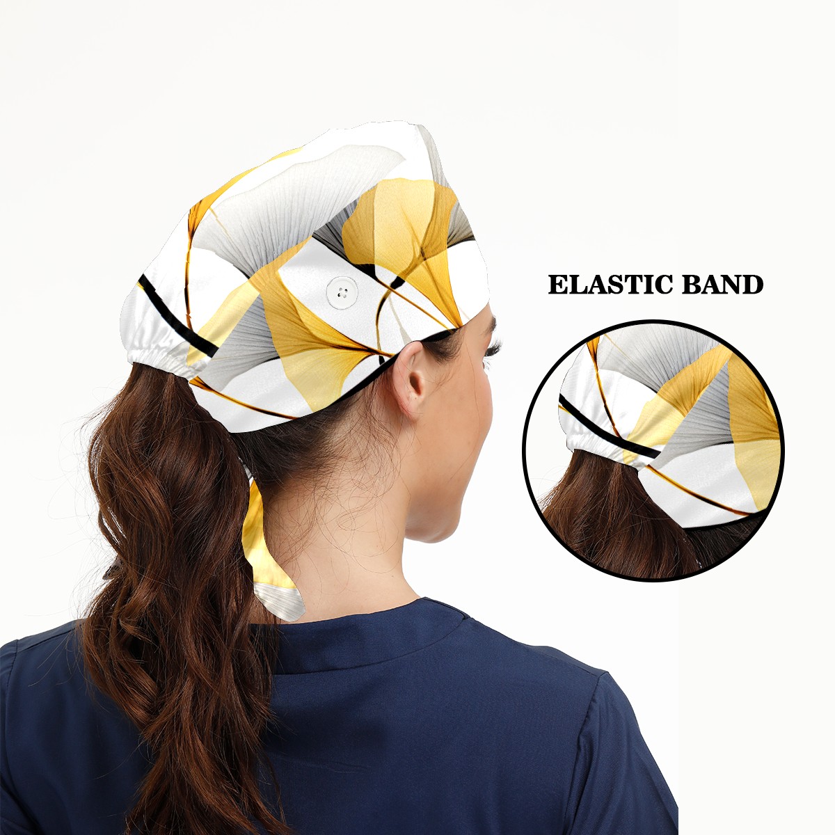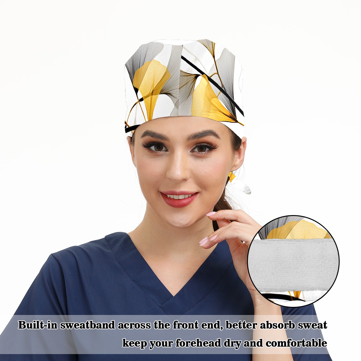 Working Caps with Button & Sweatband Satin Lined Cotton Adjustable Nurse Hats Elastic Band Scrub Cap Surgeon Hat Flower (624)