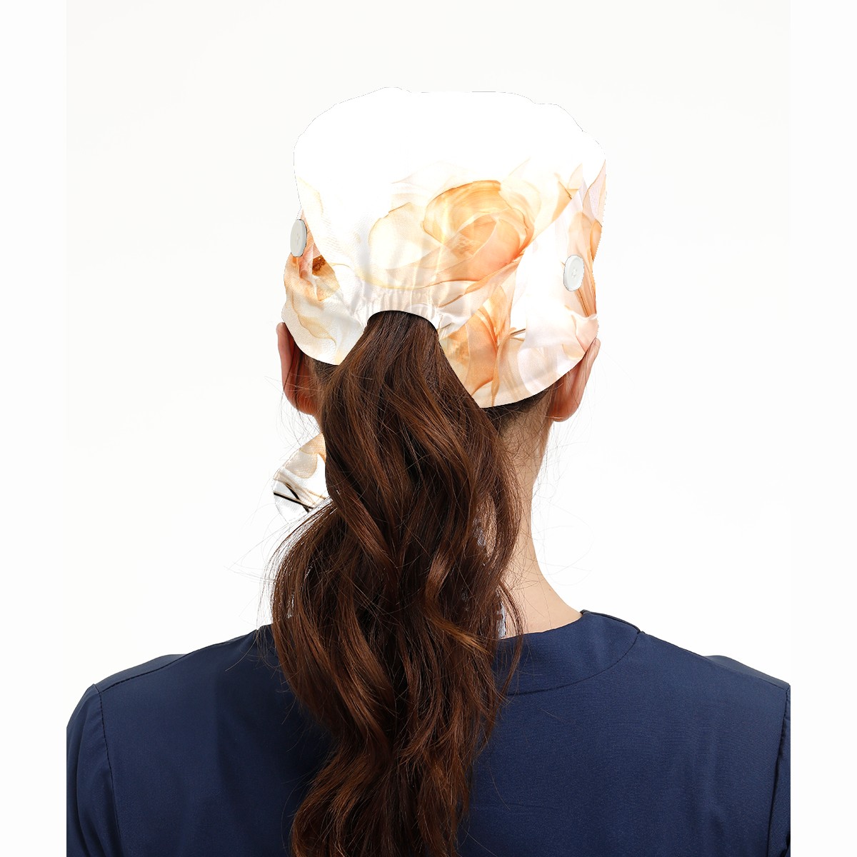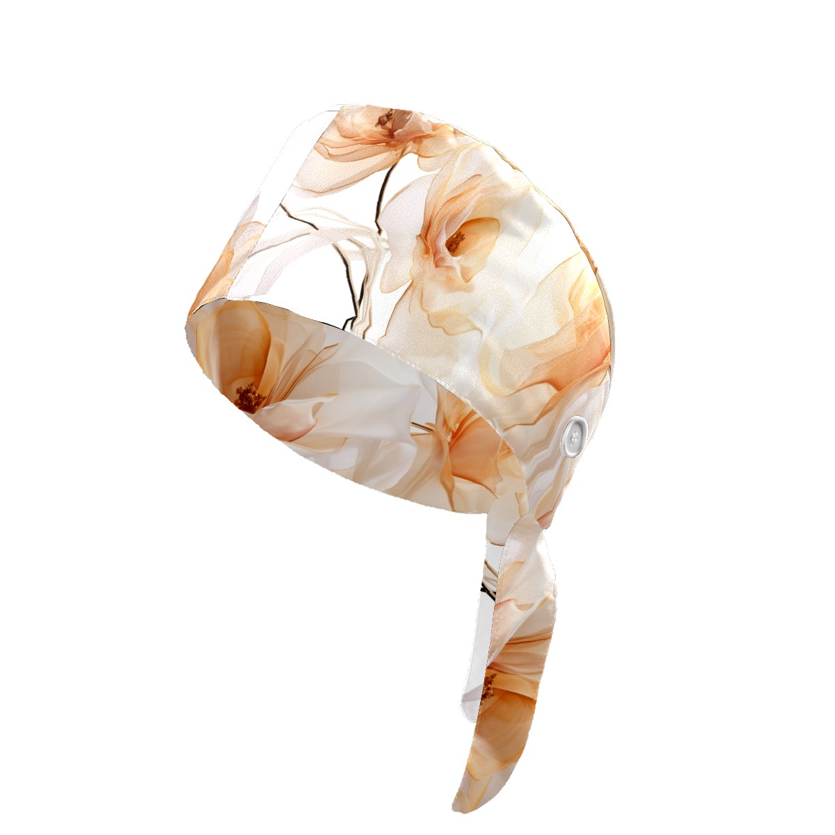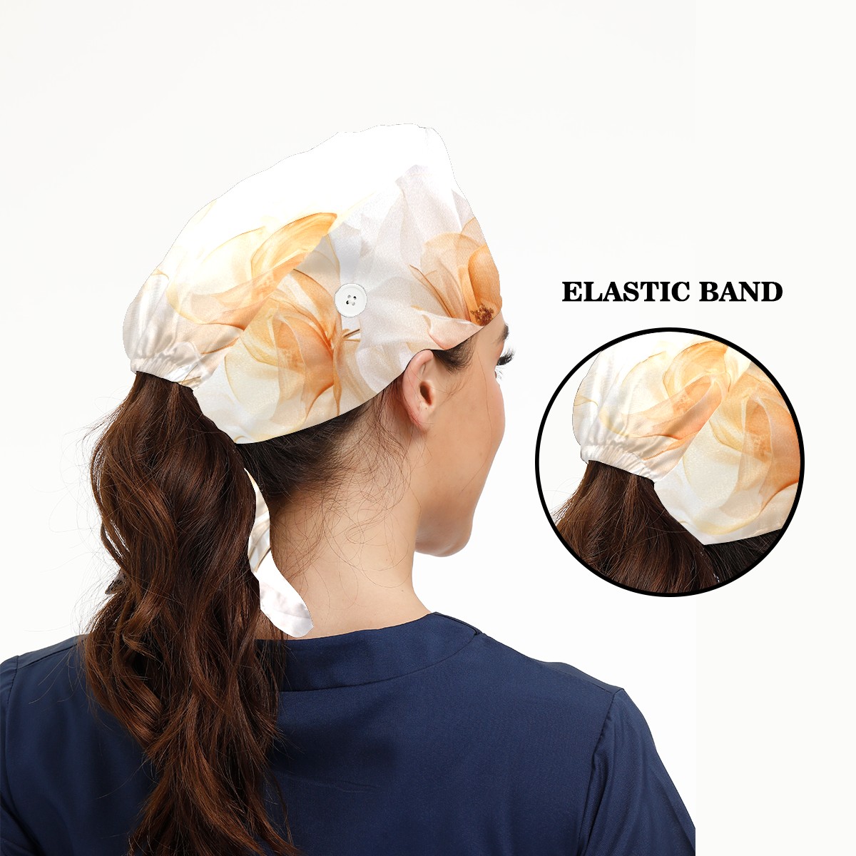 Working Caps with Button & Sweatband Satin Lined Cotton Adjustable Nurse Hats Elastic Band Scrub Cap Surgeon Hat Flower (2)